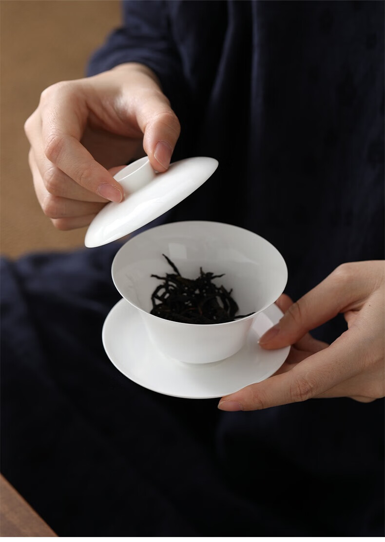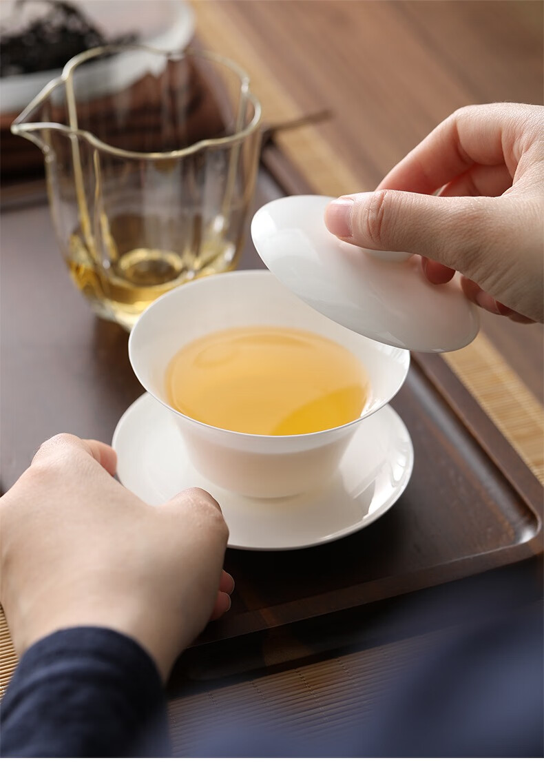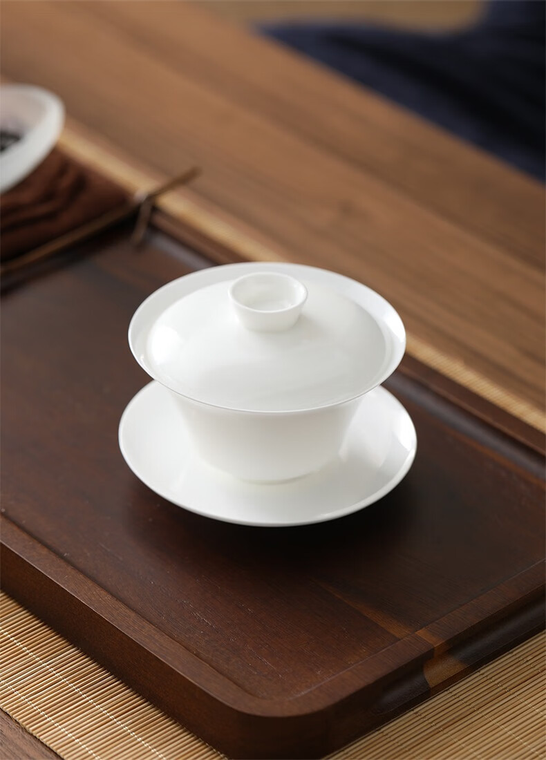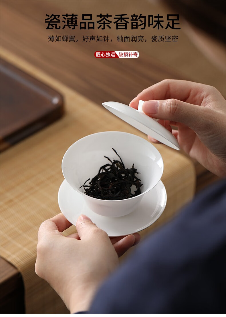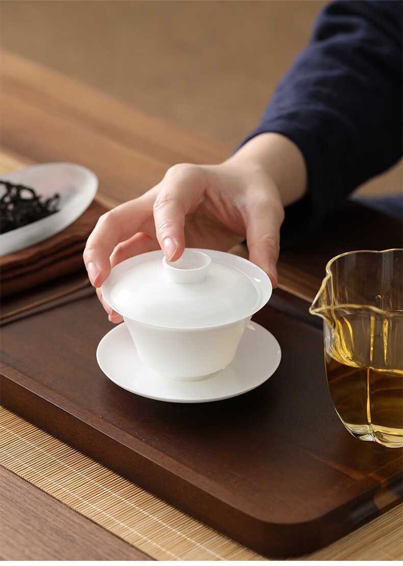 Yipin Workshop Chaozhou Bone China Thin Body Sancai Covered Bowl Small Tea Cup Kung Fu Tea Set High-end Tea Bowl with Lid Elegant High Bone China Thin Body Covered Bowl + 3 Bone China Taste Cups