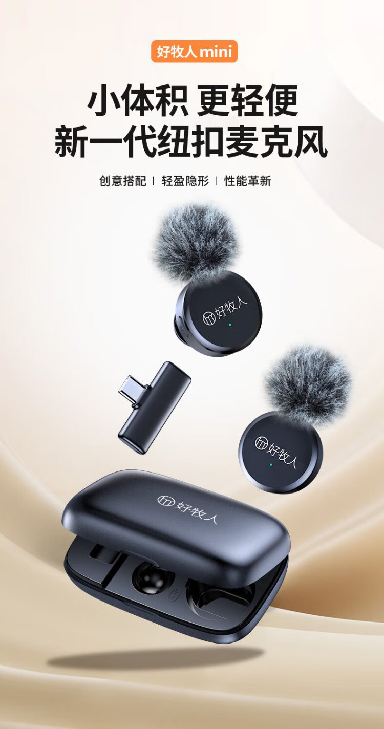Good Shepherd Wireless Lavalier Microphone Mobile Live Broadcast Professional Radio Microphone Recording Equipment Douyin Short Video Outdoor Interview Shooting Micro Button Noise Reduction Portable Radio Apple Version Button Microphone One to Two with Storage