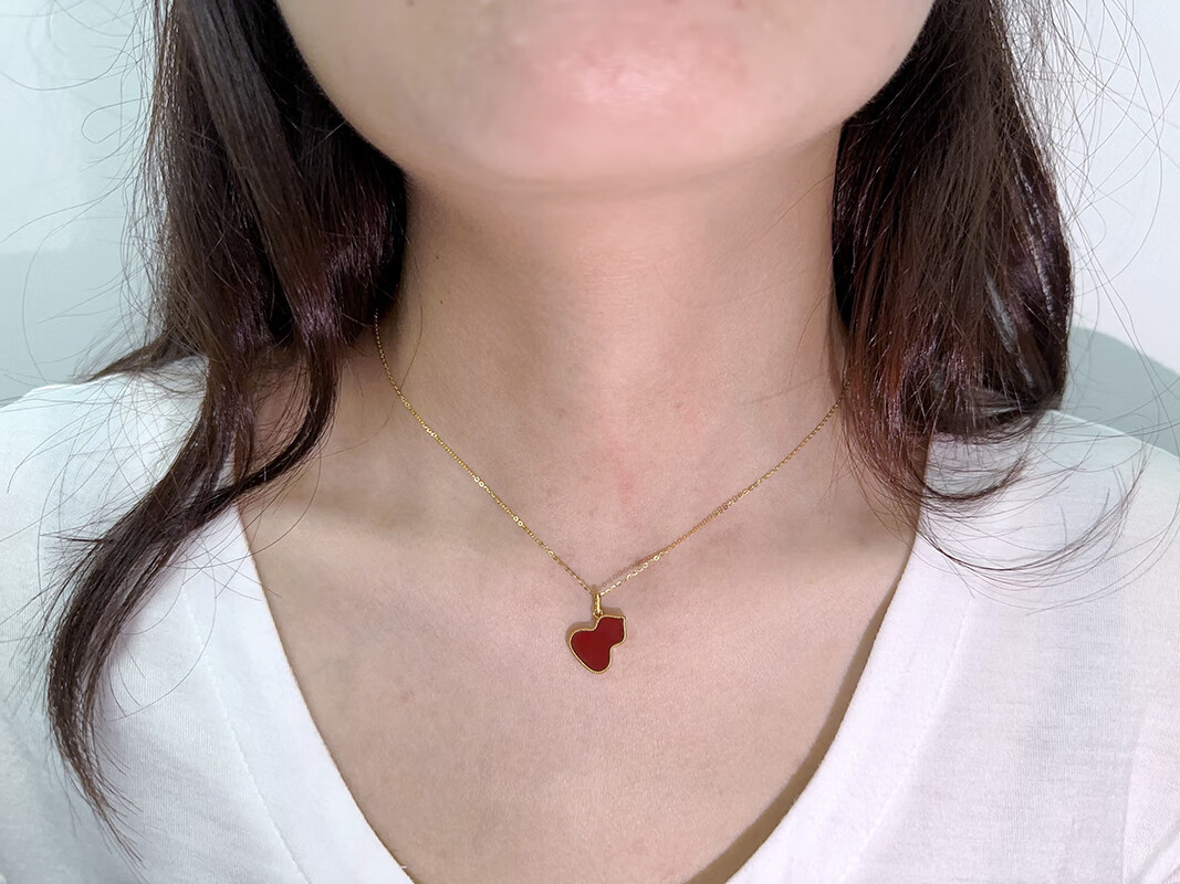Amisha 18K gold au750 gourd pendant necklace for women gold rose gold color gold red agate clavicle chain does not come off the mold 18K gold rose gold + red agate (single pendant)