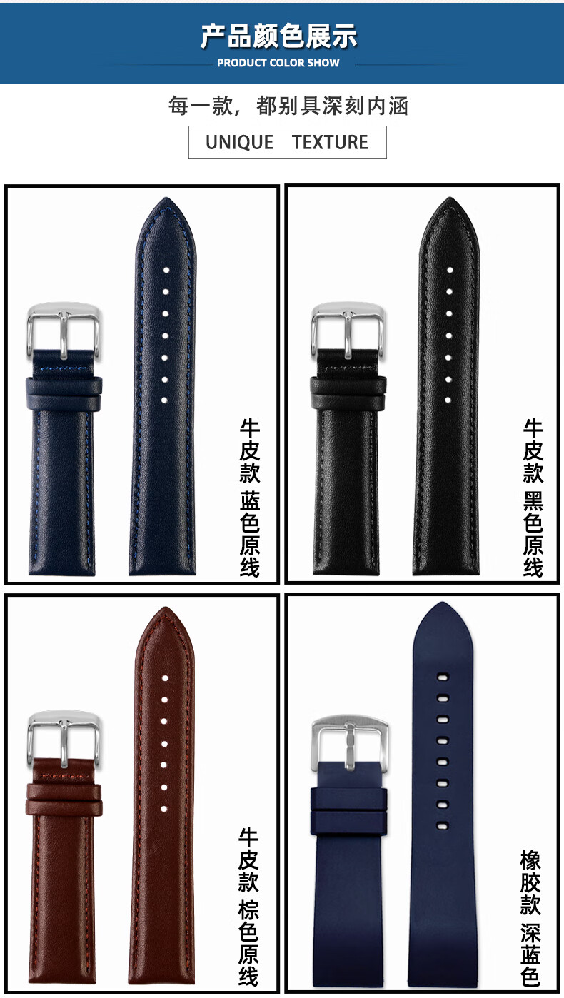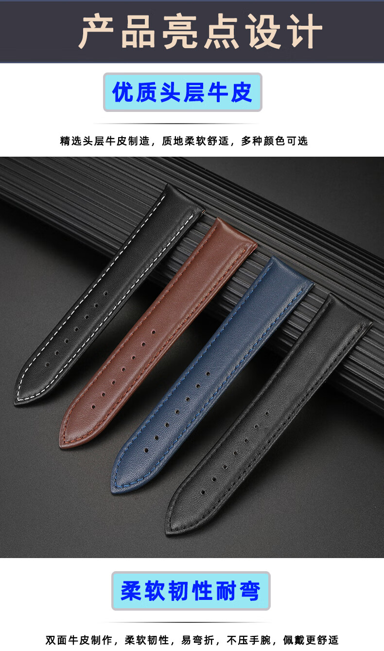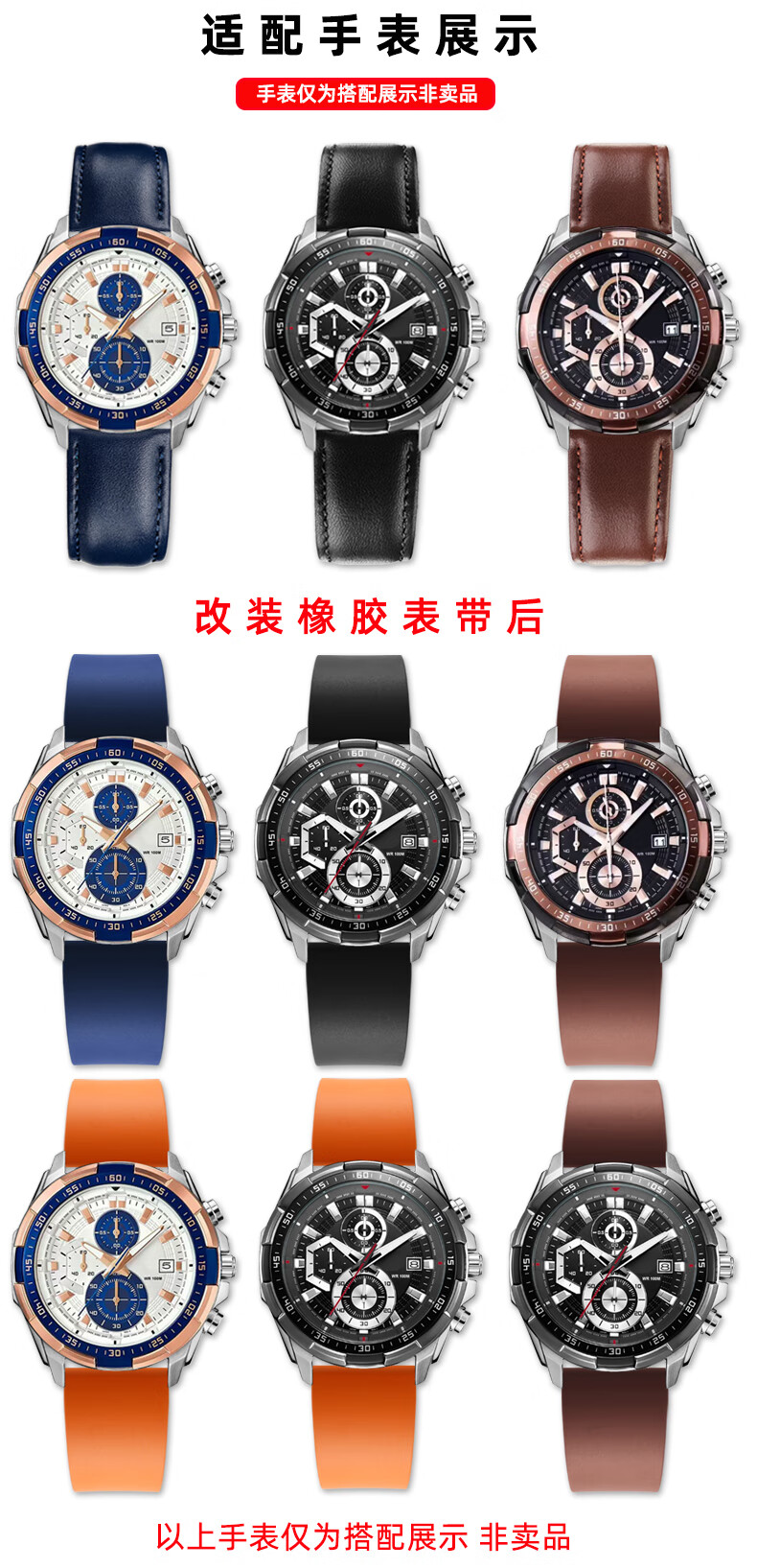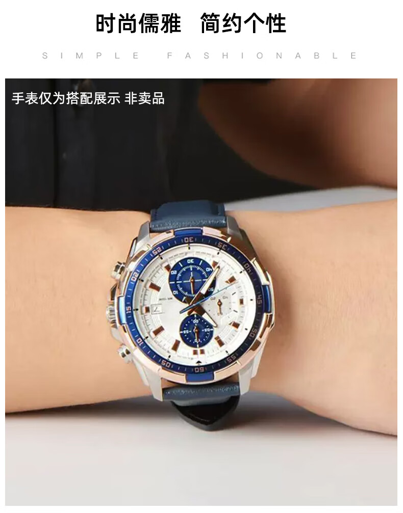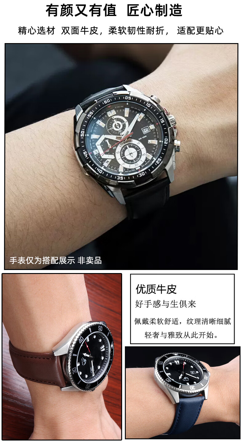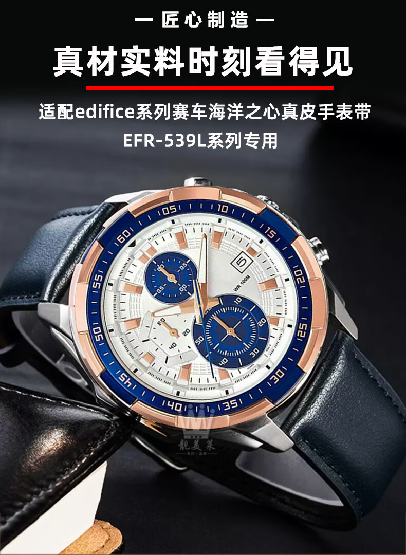 Beautiful My Lai suitable for Casio edifice Heart of the Ocean EFR-539L-7C/1A racing leather watch strap accessories for men, cowhide model, blue original thread, silver pin buckle, 23mm strap width