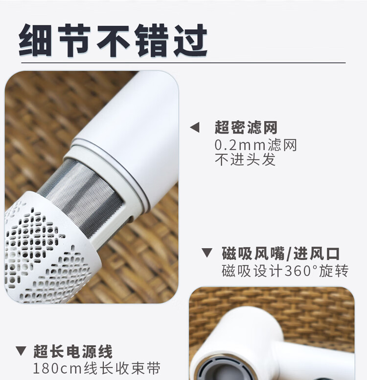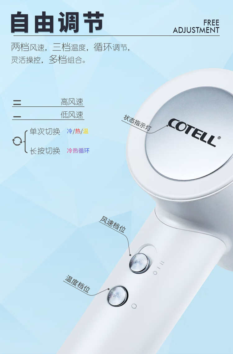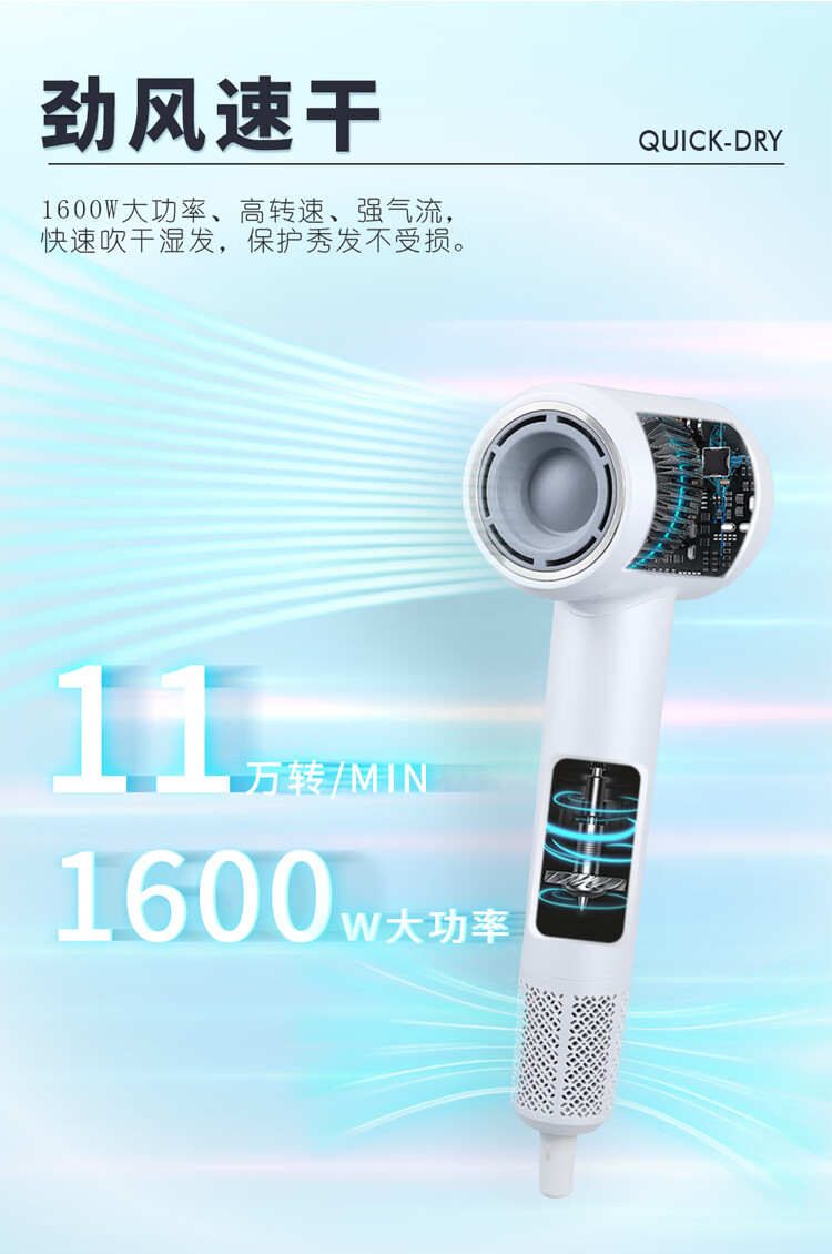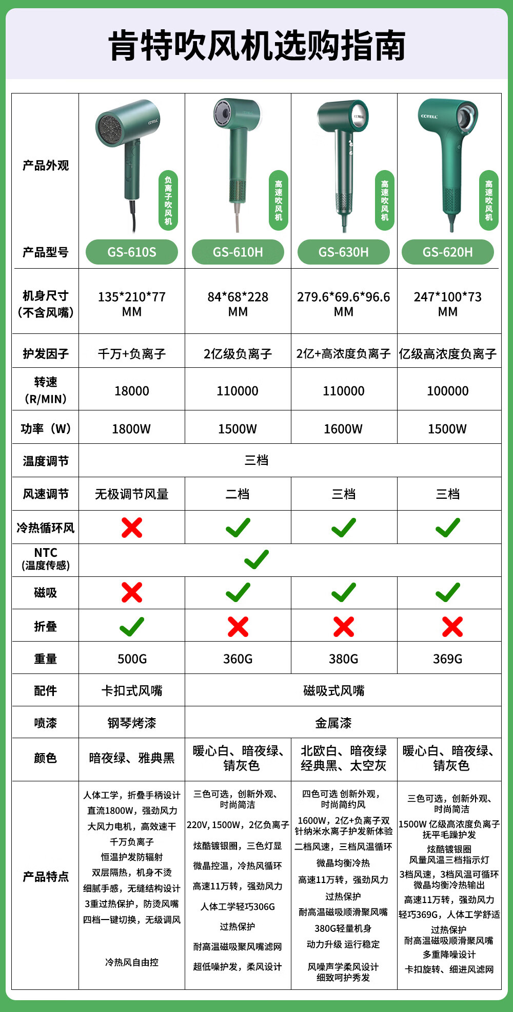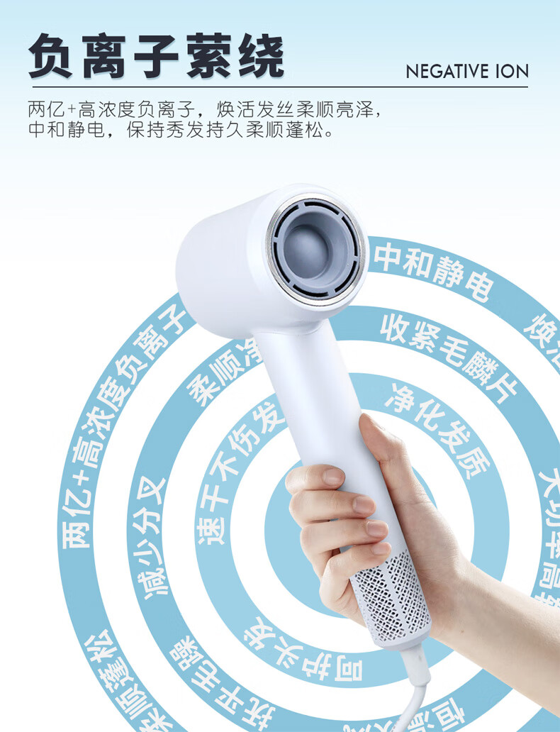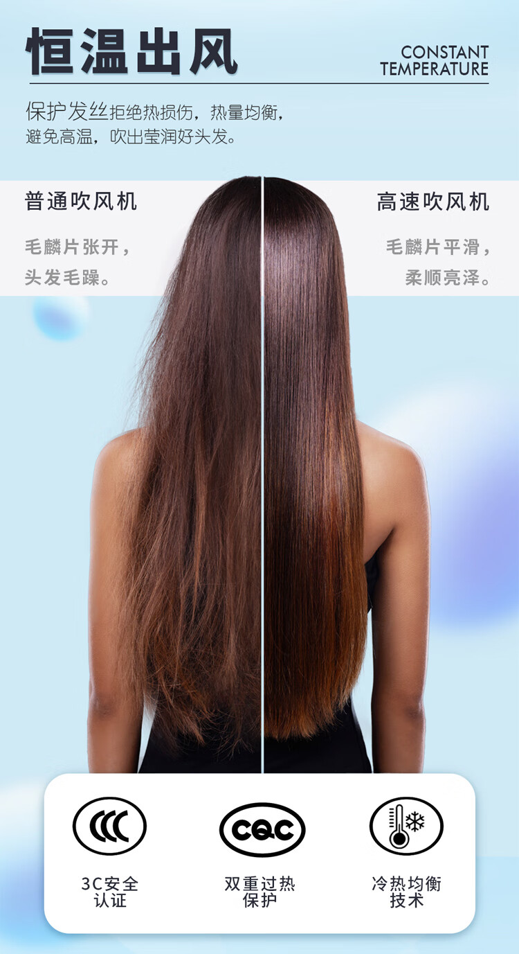 COTELL Kent high-speed hair dryer household high wind negative ion hair care low noise fast drying high power low radiation does not damage the hair hair dryer New Year gift recommendation GS-630H GS-630H classic black