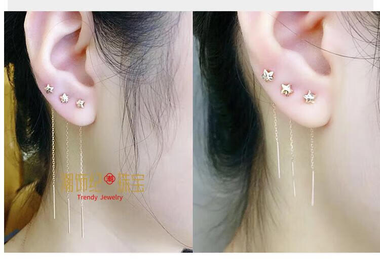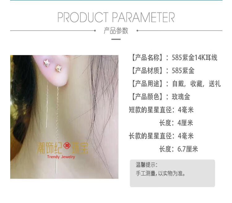 DL 1998 Fat Donglai same ear wire color gold 18k gold gold unicorn jewelry Russian 585 purple gold women's model rose gold 14 long pair