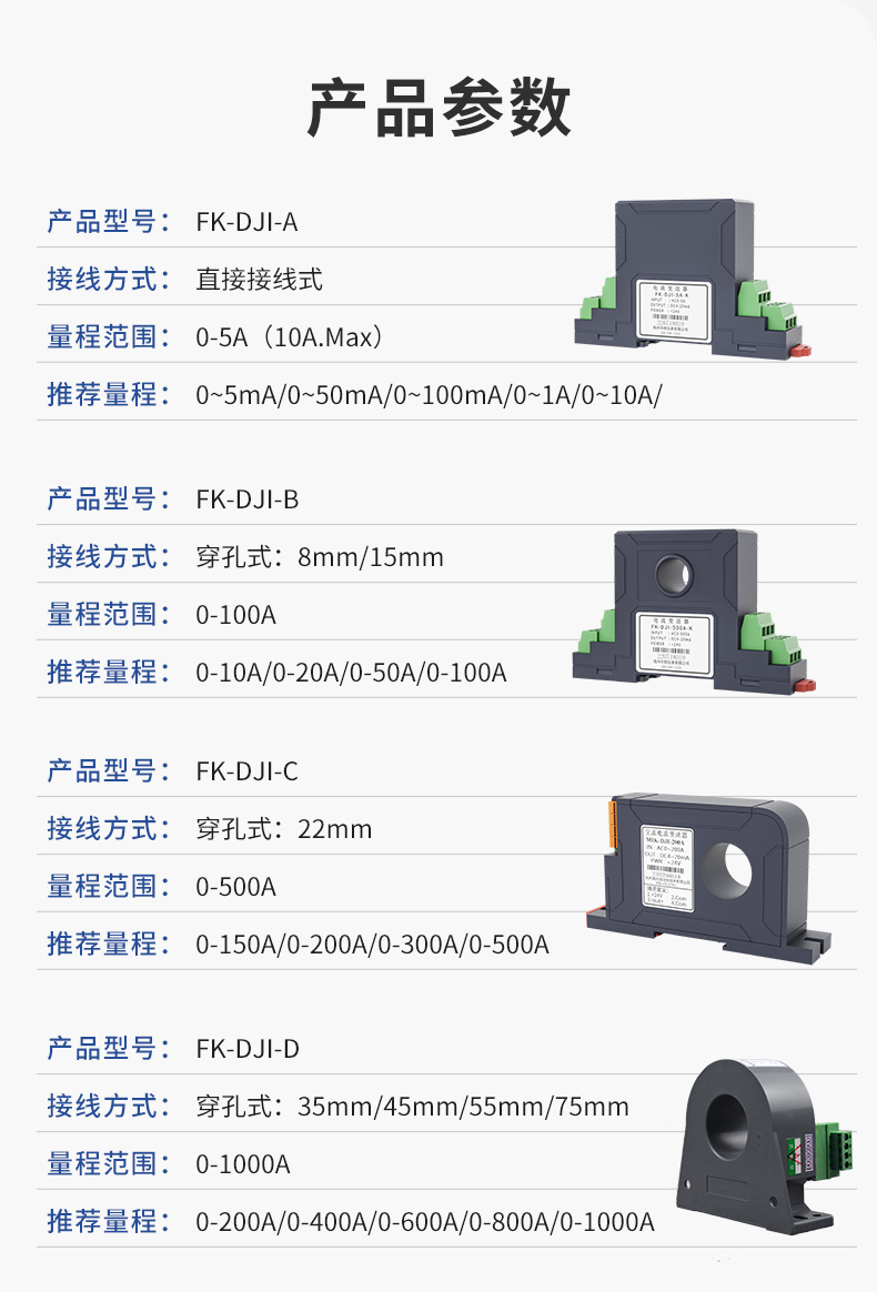 AC current transmitter voltage detection module 4-20mA DC power 485 Hall sensor 10V universal three-phase AC current