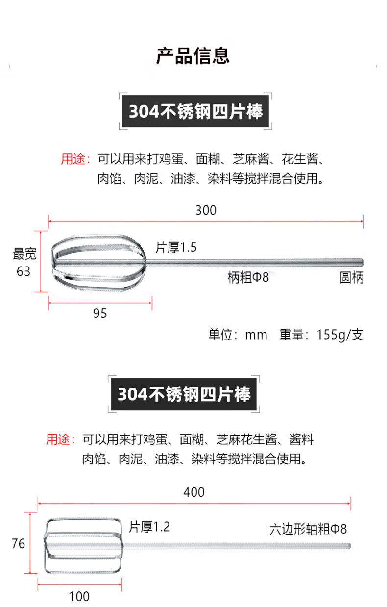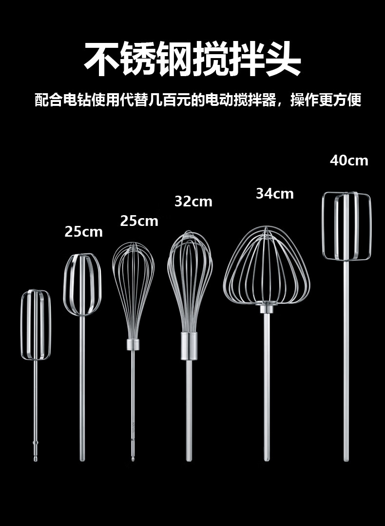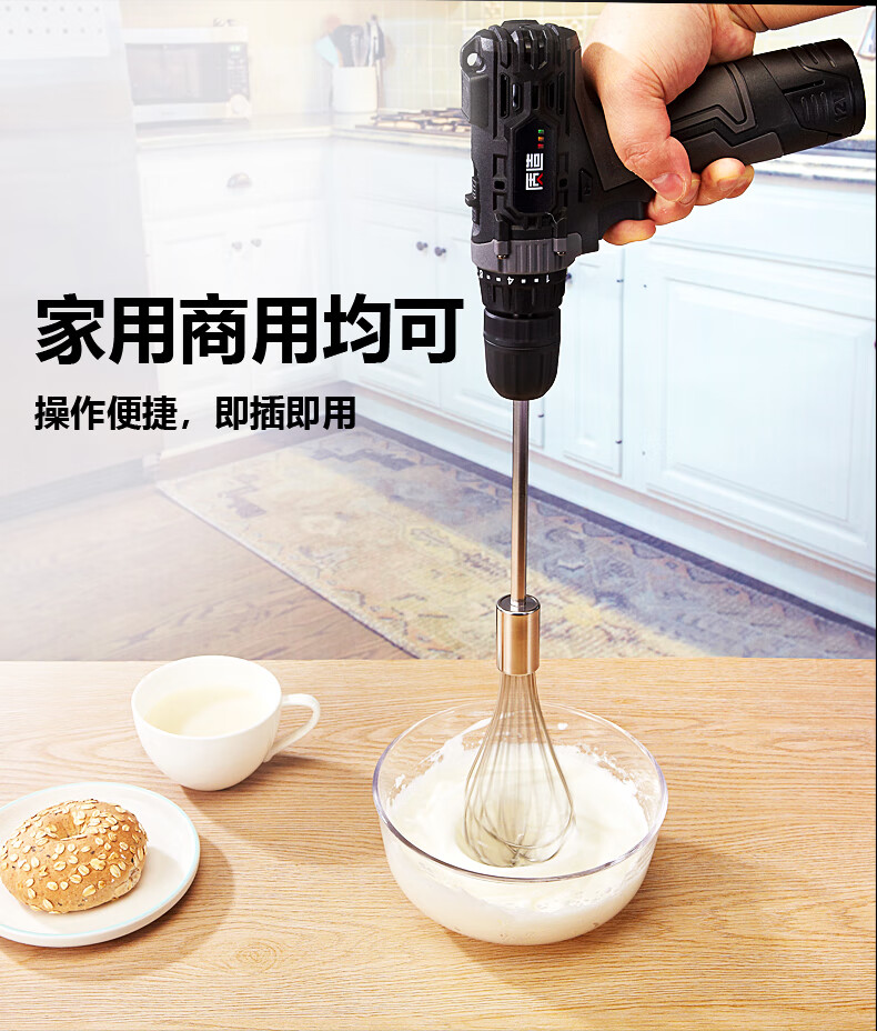 Neixun 304 stainless steel egg beater stirring rod accessories head electric commercial meat grinder meat stuffing machine hand electric drill extension rod 16cm four-piece rod flat head electroplated chrome egg beater can