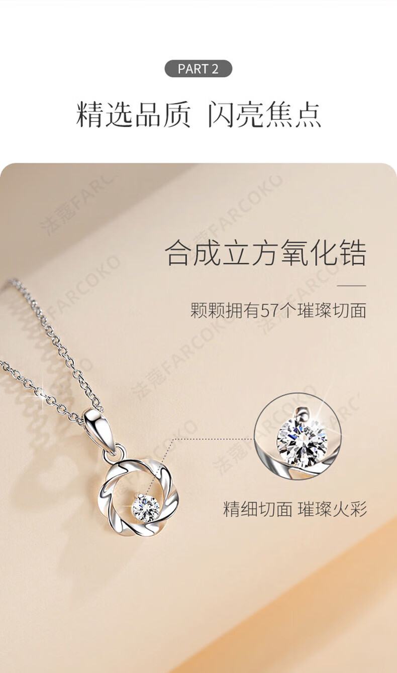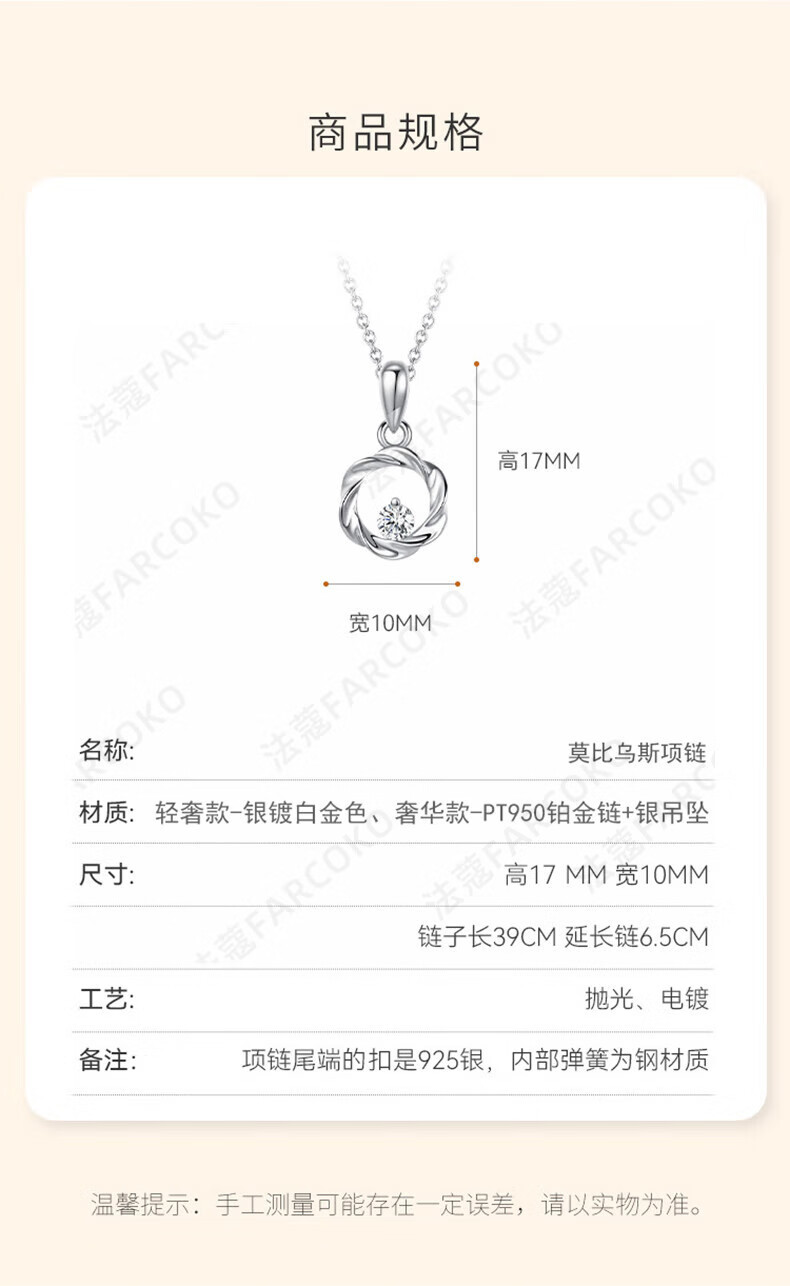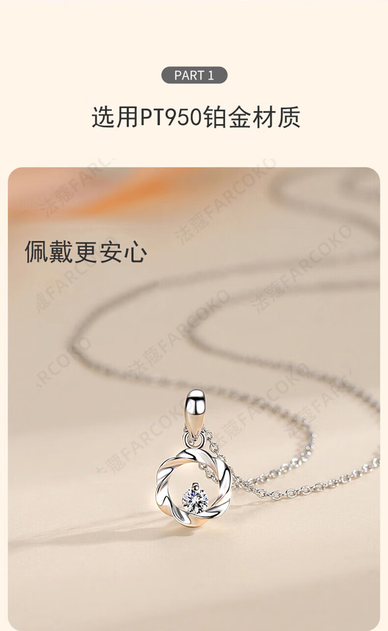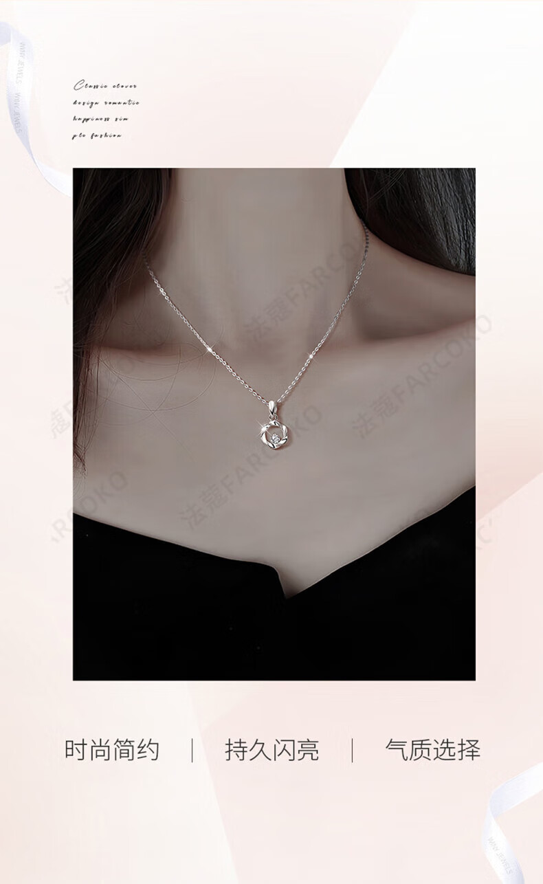 Fakou PT950 platinum necklace for women, high-end clavicle chain pendant, Christmas, Valentine's Day, birthday gift for girlfriend and wife, platinum chain + silver pendant