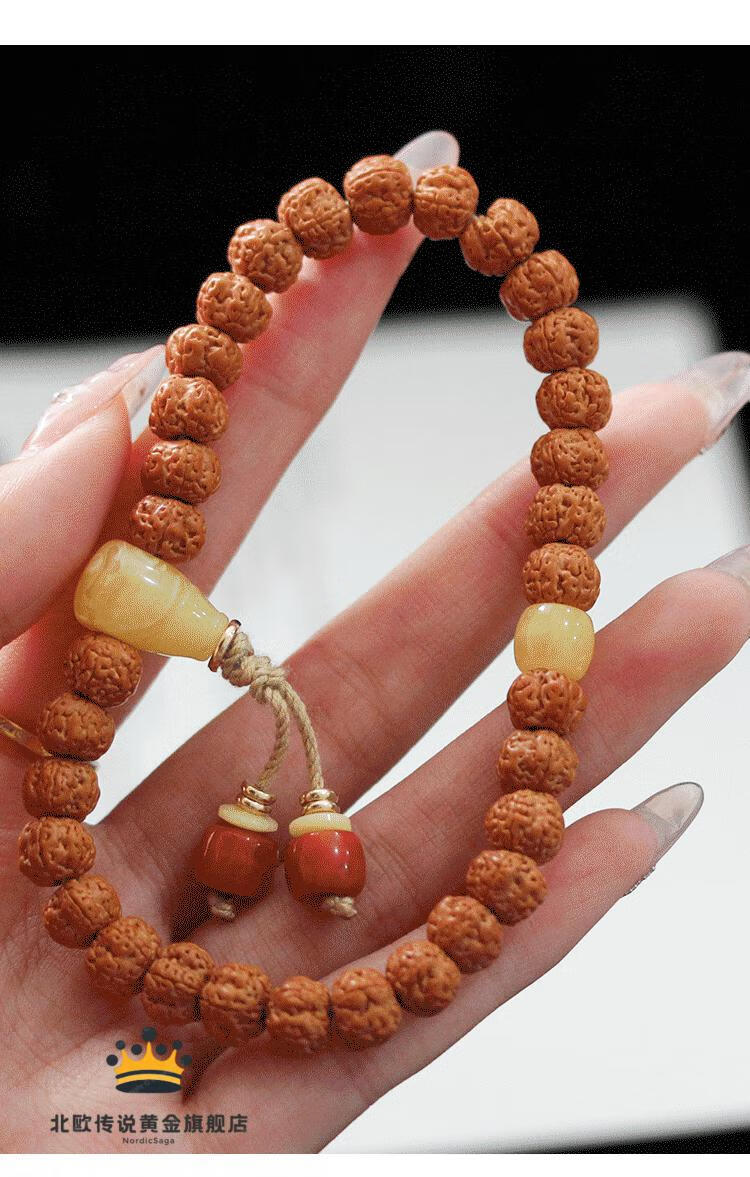 Fat Donglai's same authentic beeswax bracelet, natural Russian material, straight-cut old-style barrel beads, star and moon, precision straight-cut, Russian material, old-style beads 9*8mm/single