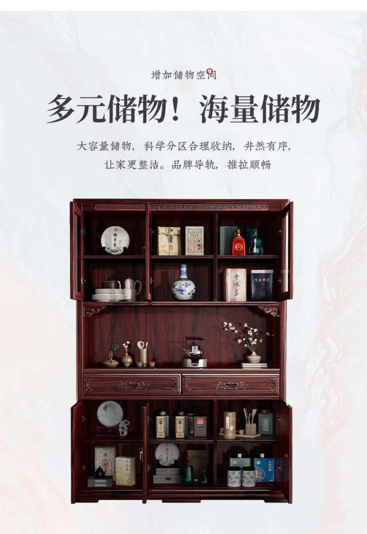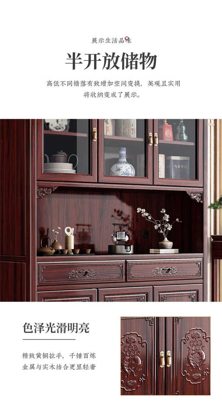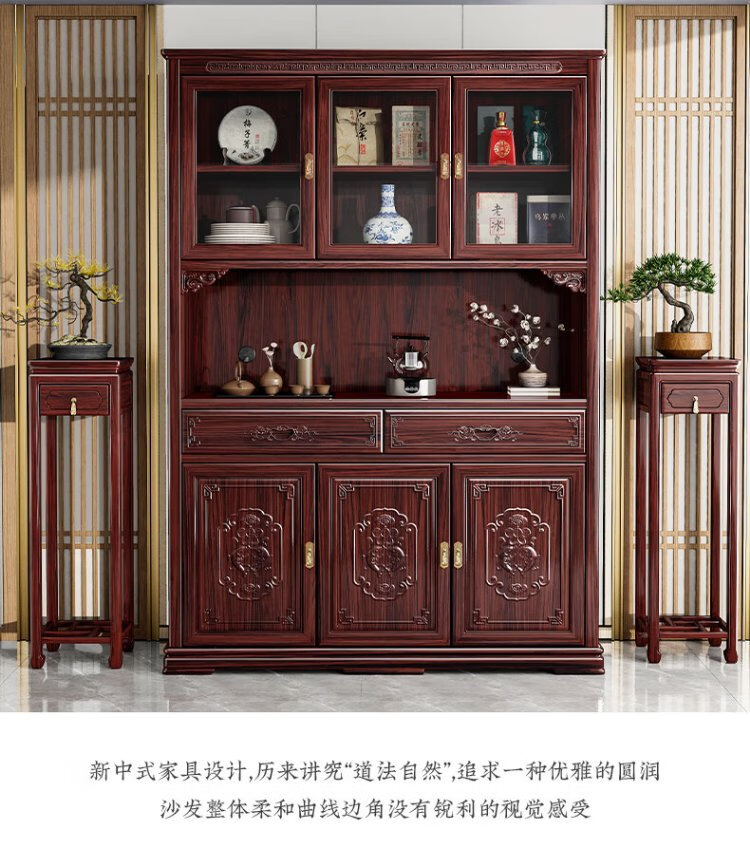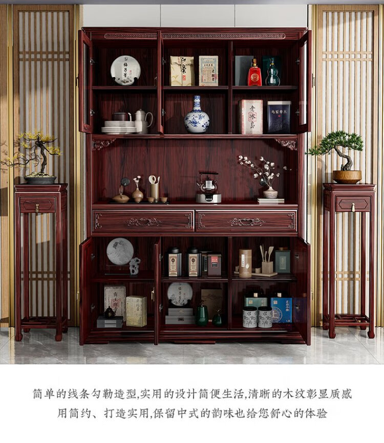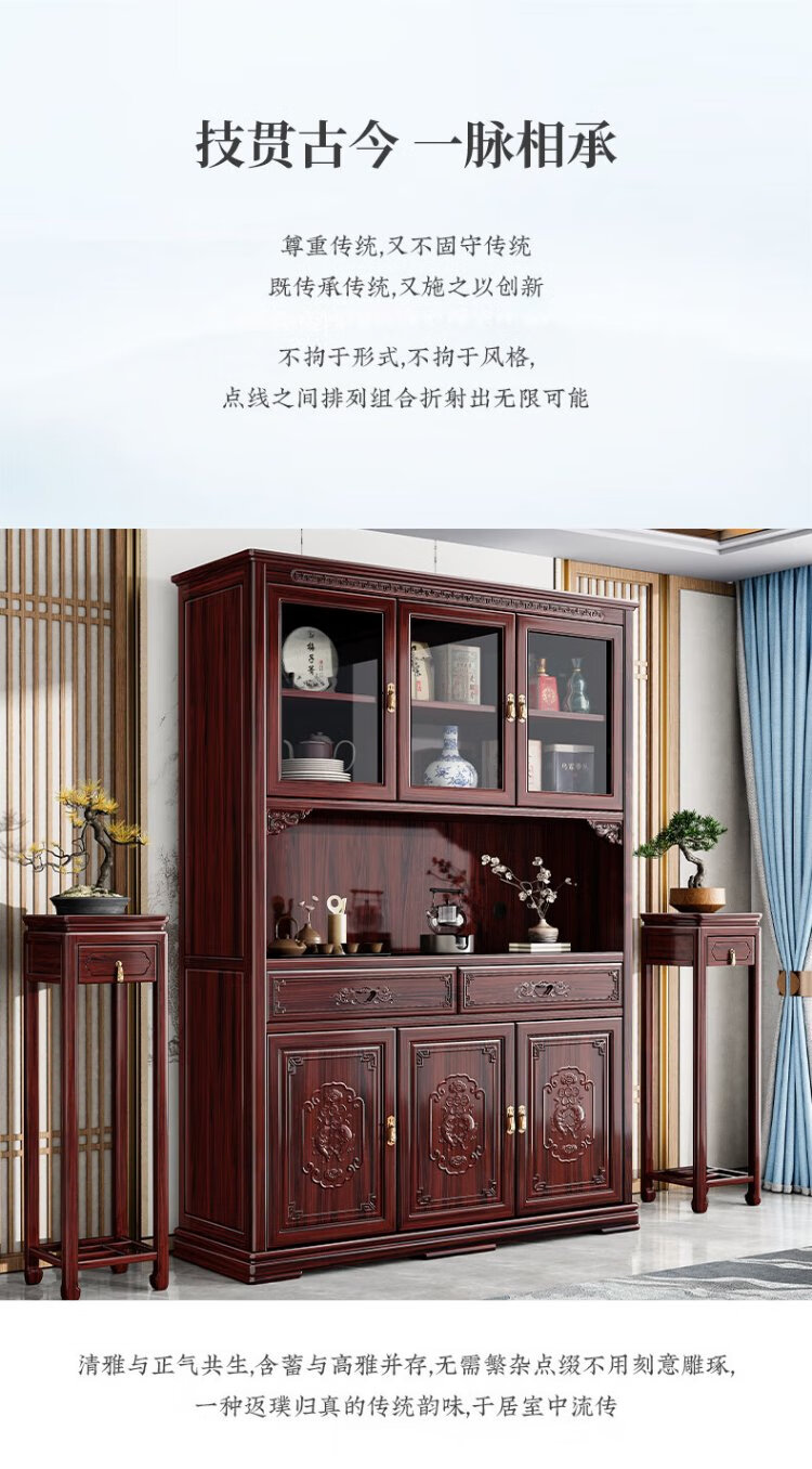 Champion Wood Language Rosewood solid wood sideboard and wine cabinet integrated wall cabinet new Chinese style living room high cabinet storage storage cabinet 1.42 m sideboard