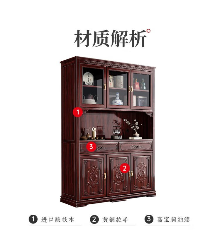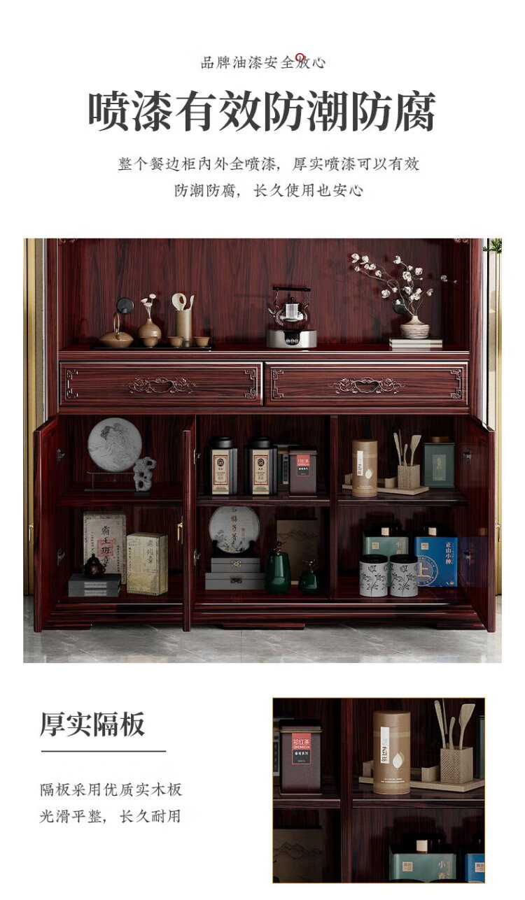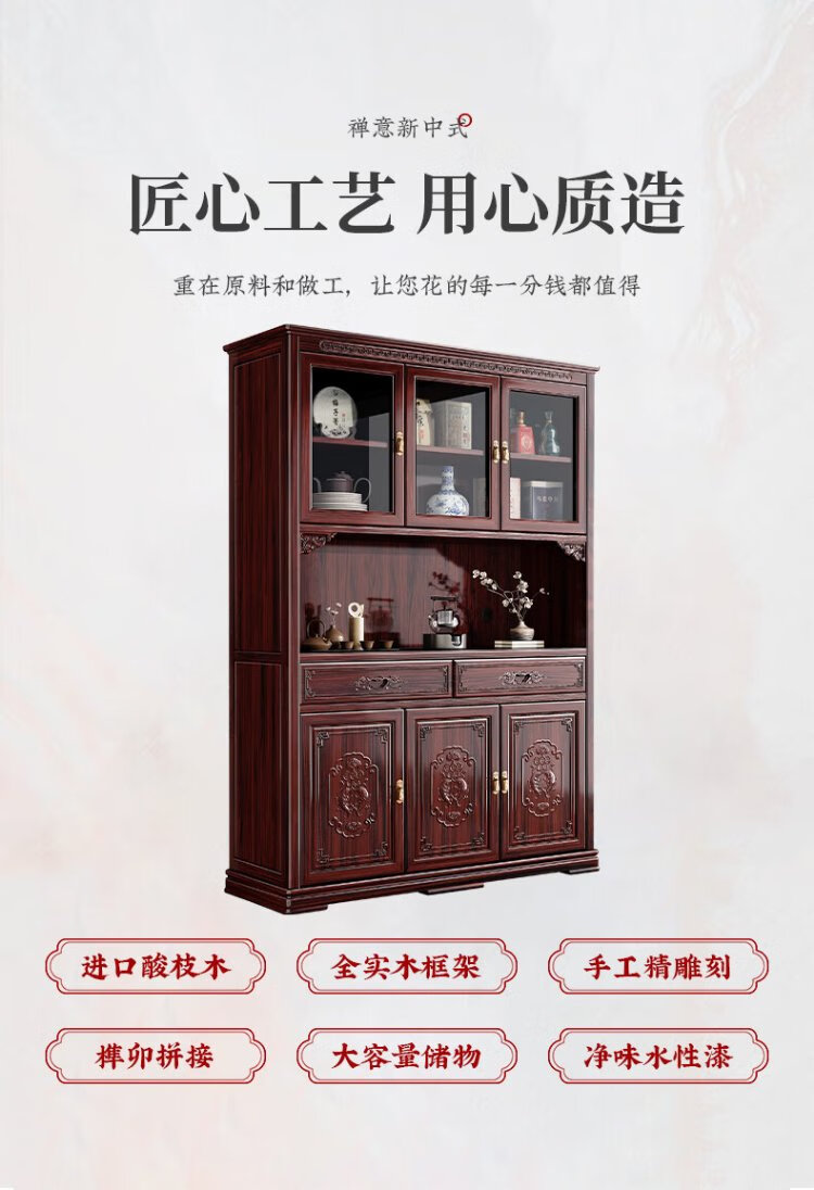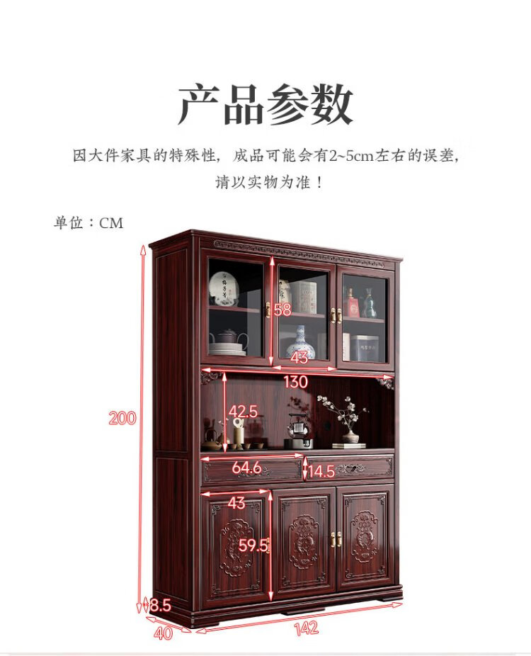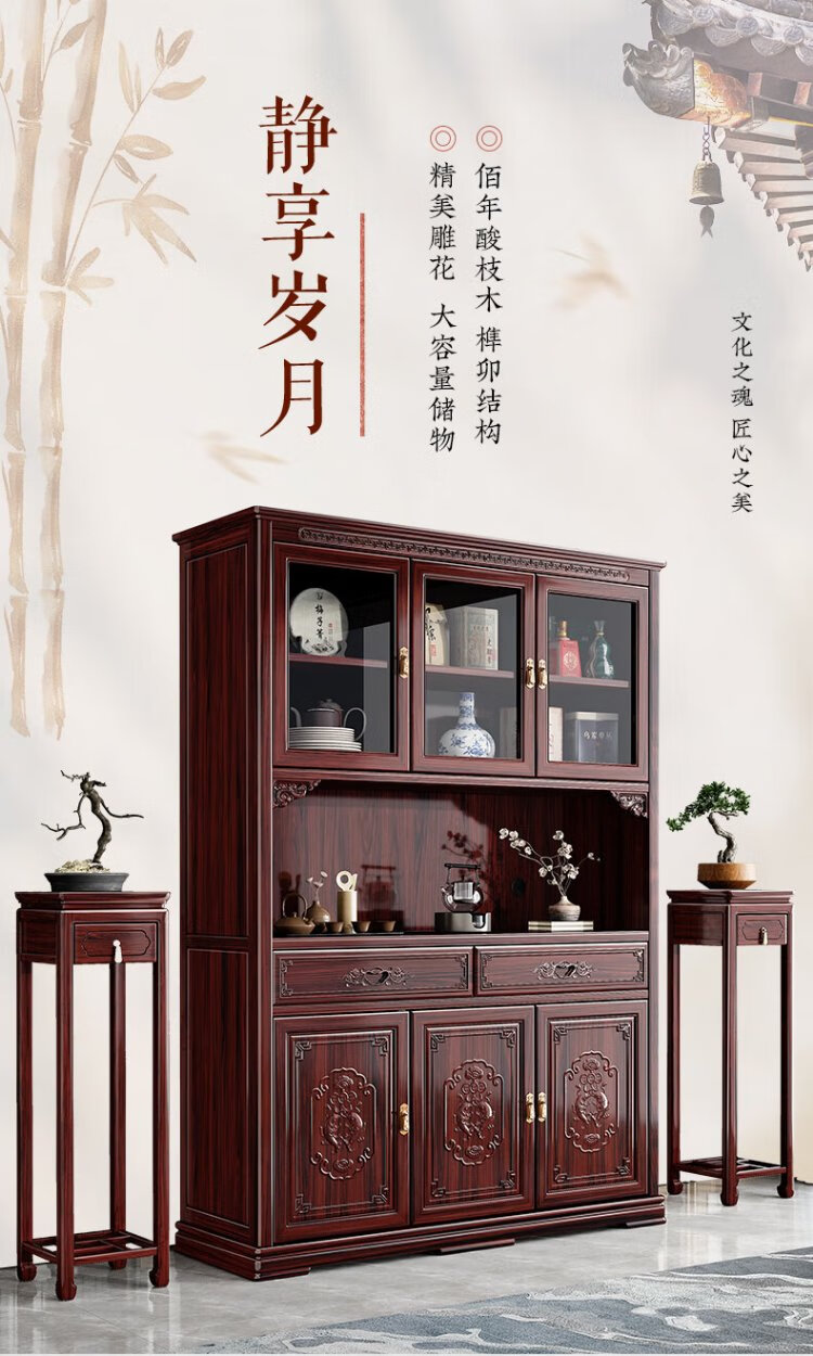 Champion Wood Language Rosewood solid wood sideboard and wine cabinet integrated wall cabinet new Chinese style living room high cabinet storage storage cabinet 1.42 m sideboard