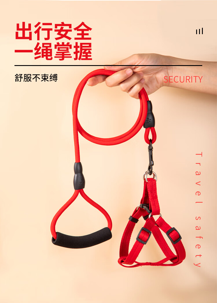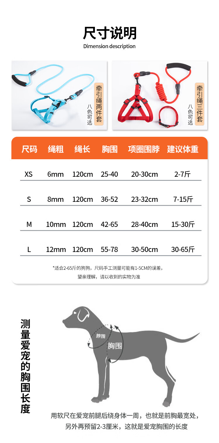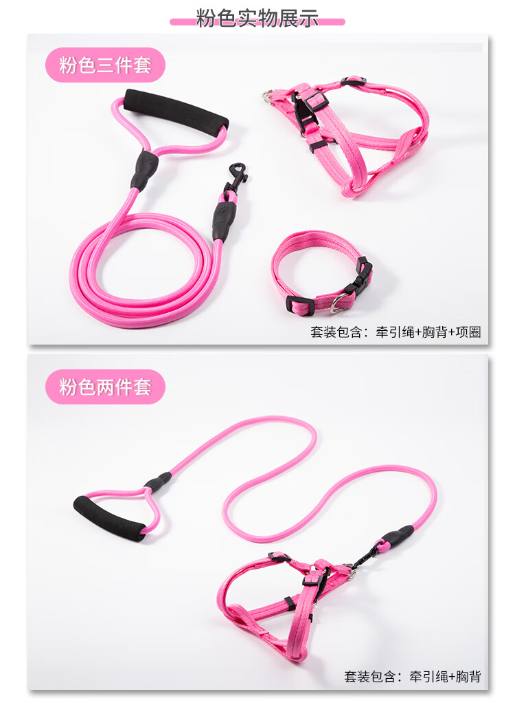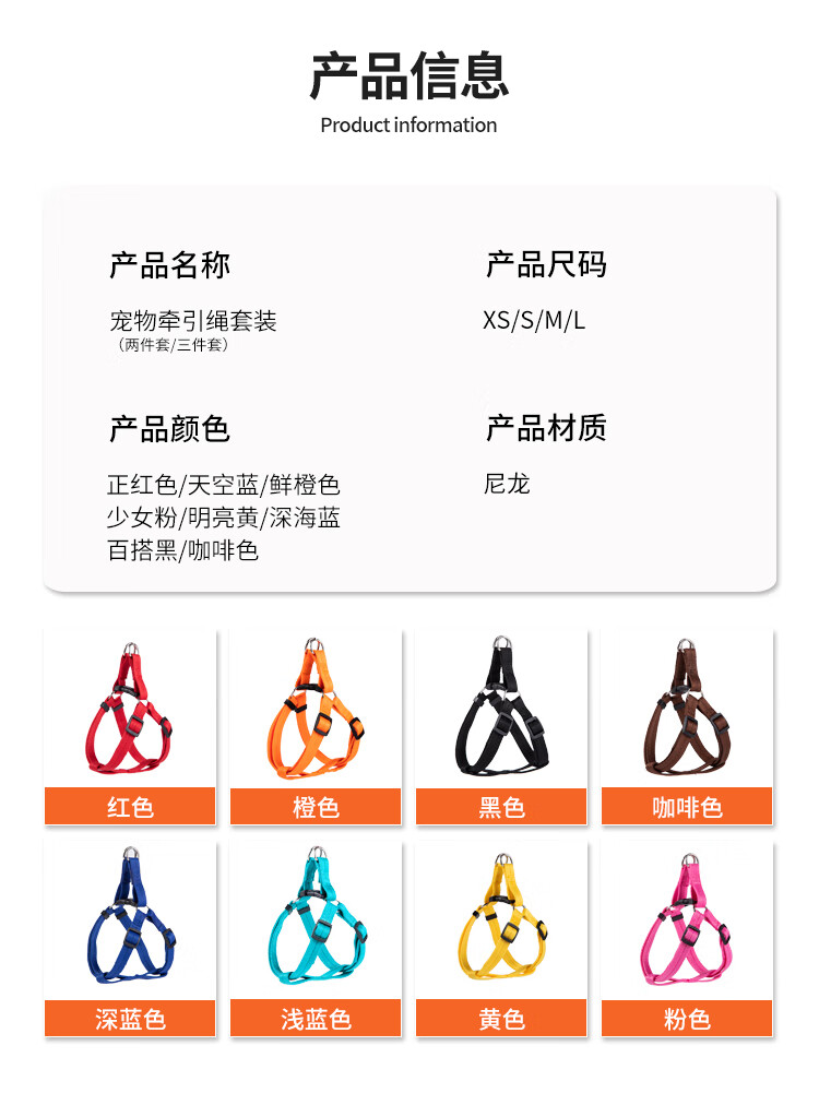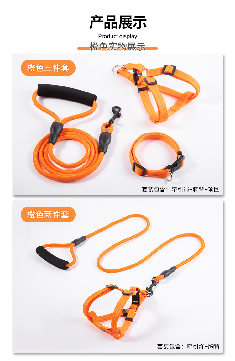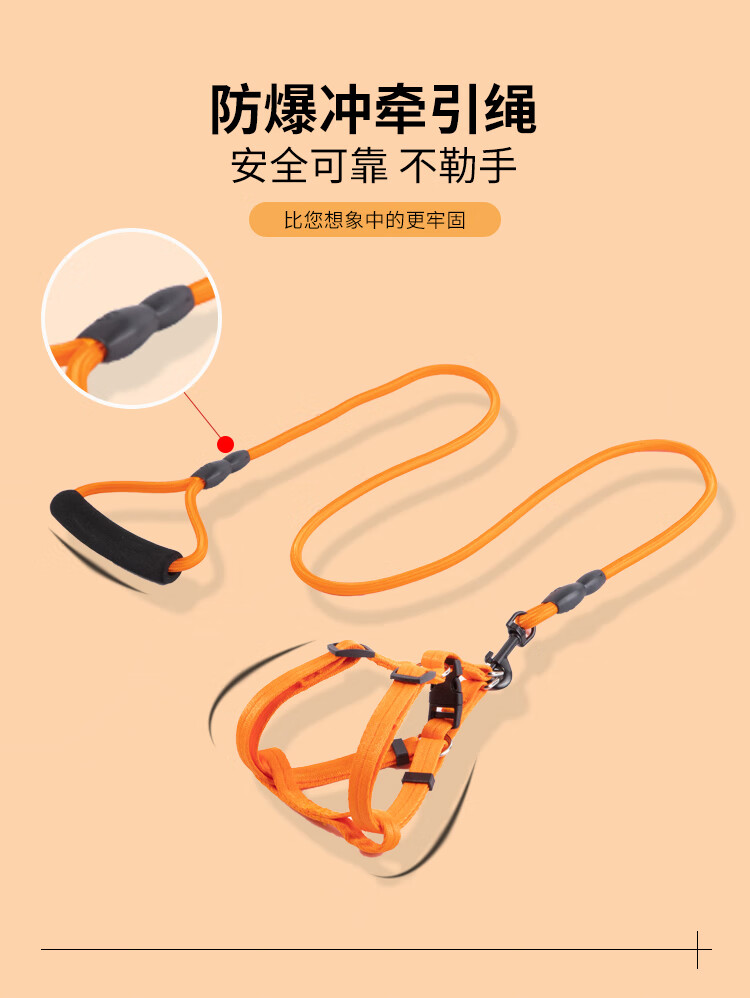 Dog Leash Harness Dog Chain Medium Dog Small Dog Leash Teddy Golden Retriever Puppy Pet Supplies Harness + Rope Orange XS (2-7Jin Jin is equal to 0.5kg)