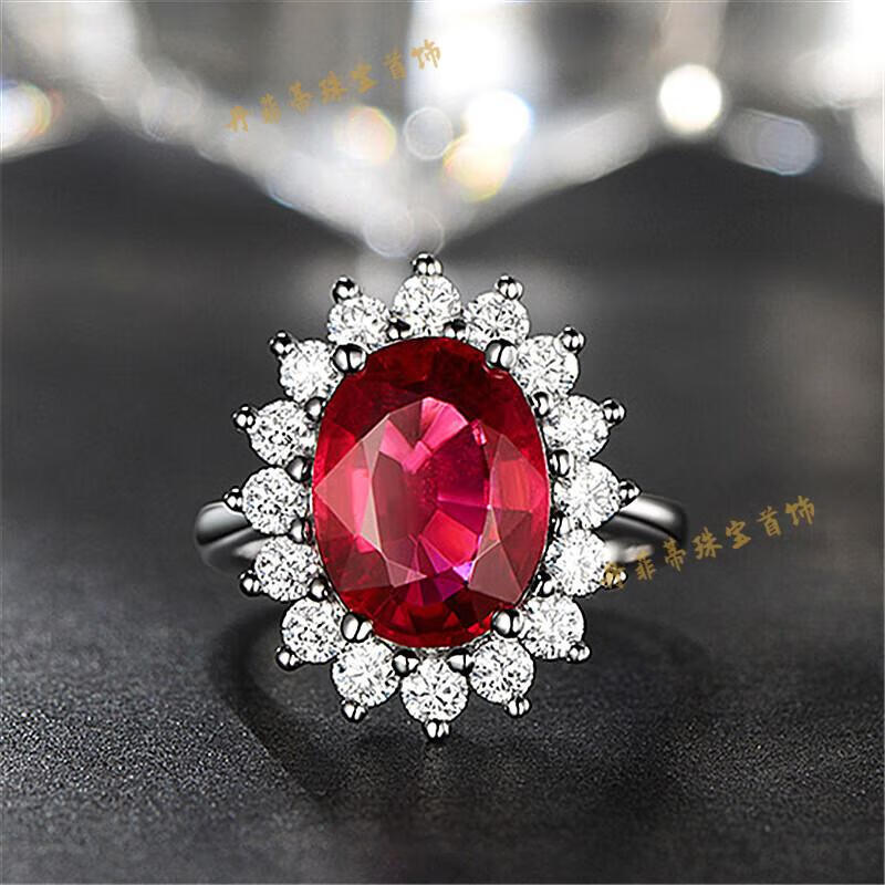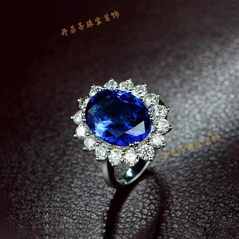 DANFEIDI Princess Diana sapphire ring with adjustable opening, tanzanite sapphire ring, colored treasure female live ring, blue diamond ring, white gold, adjustable opening