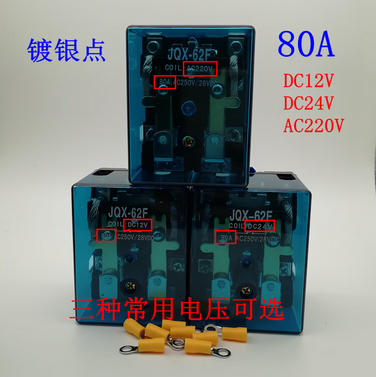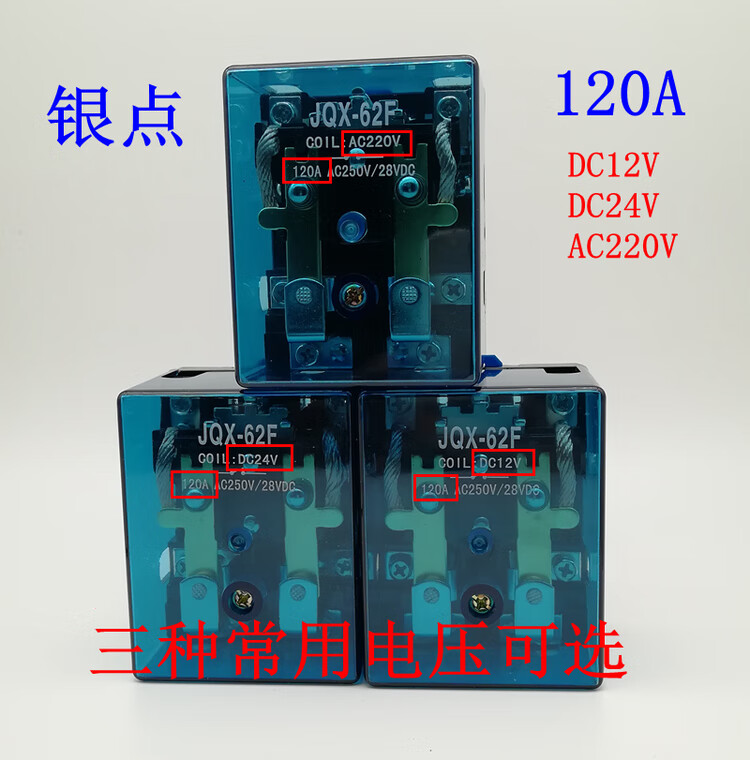 JQX-62F 2Z high current 100 high power 220V relay 80A AC 120A middle 24V DC 12V 2 open 2 closed DC12V120A enlarged silver contact