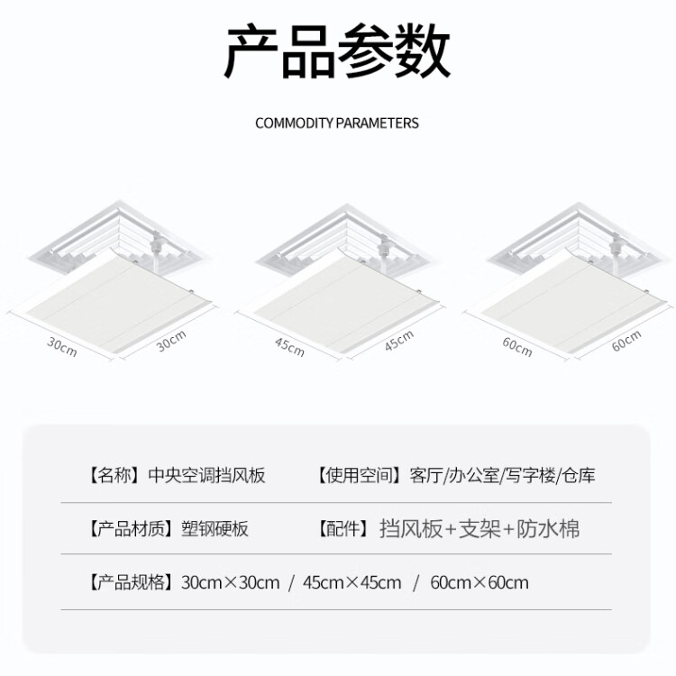 Yaowuanxi square ceiling ceiling machine air conditioner air outlet guide windshield windshield board air duct machine anti-straight blow guide chain plastic steel 30*30 waterproof cotton return net