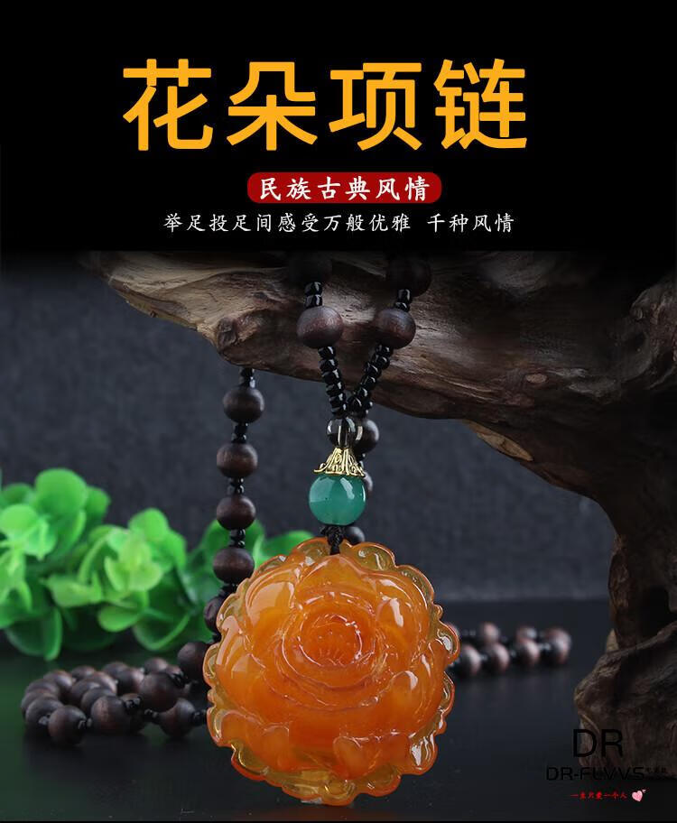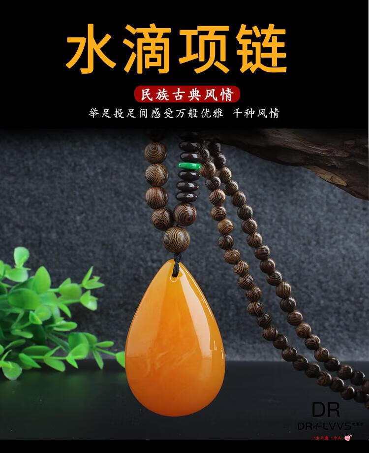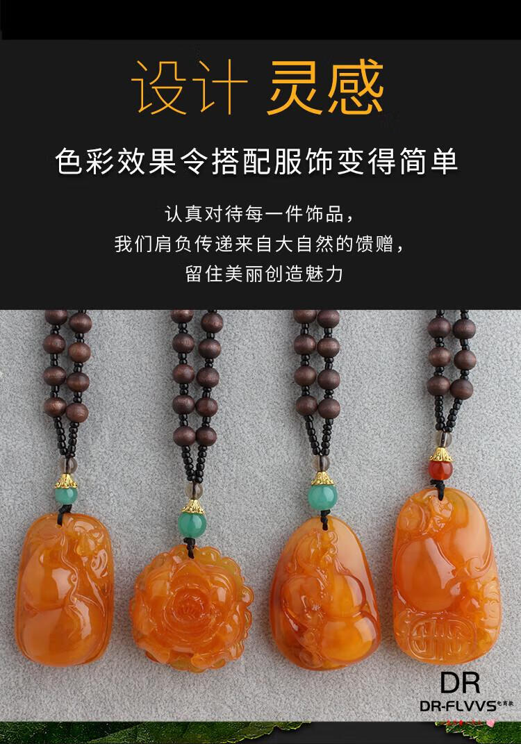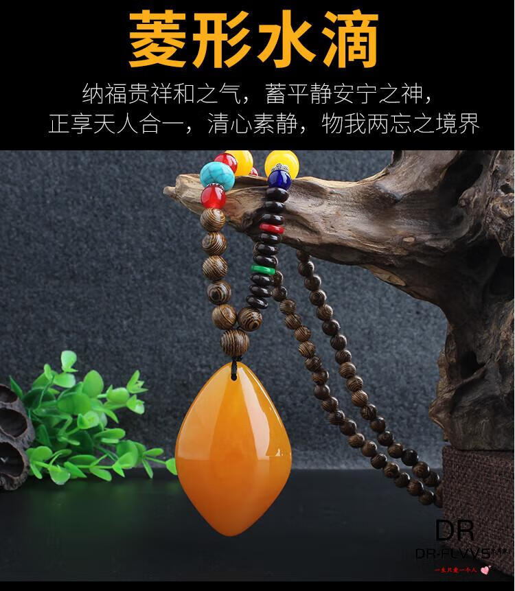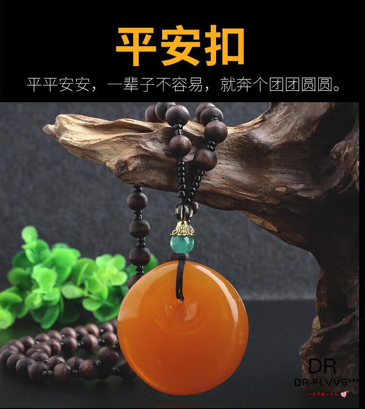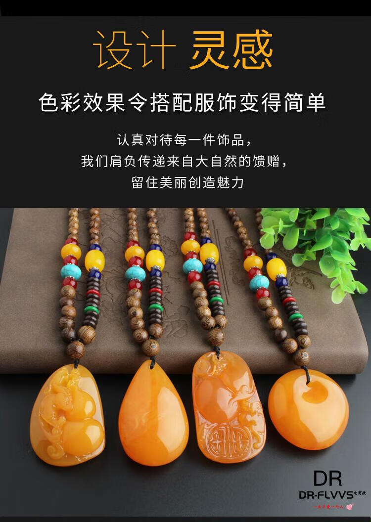 Fat Donglai same style beeswax sweater chain pendant retro old necklace peace buckle gourd long peace buckle wooden bead chain