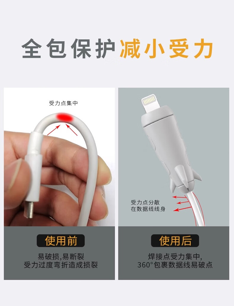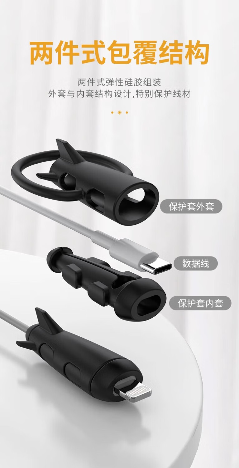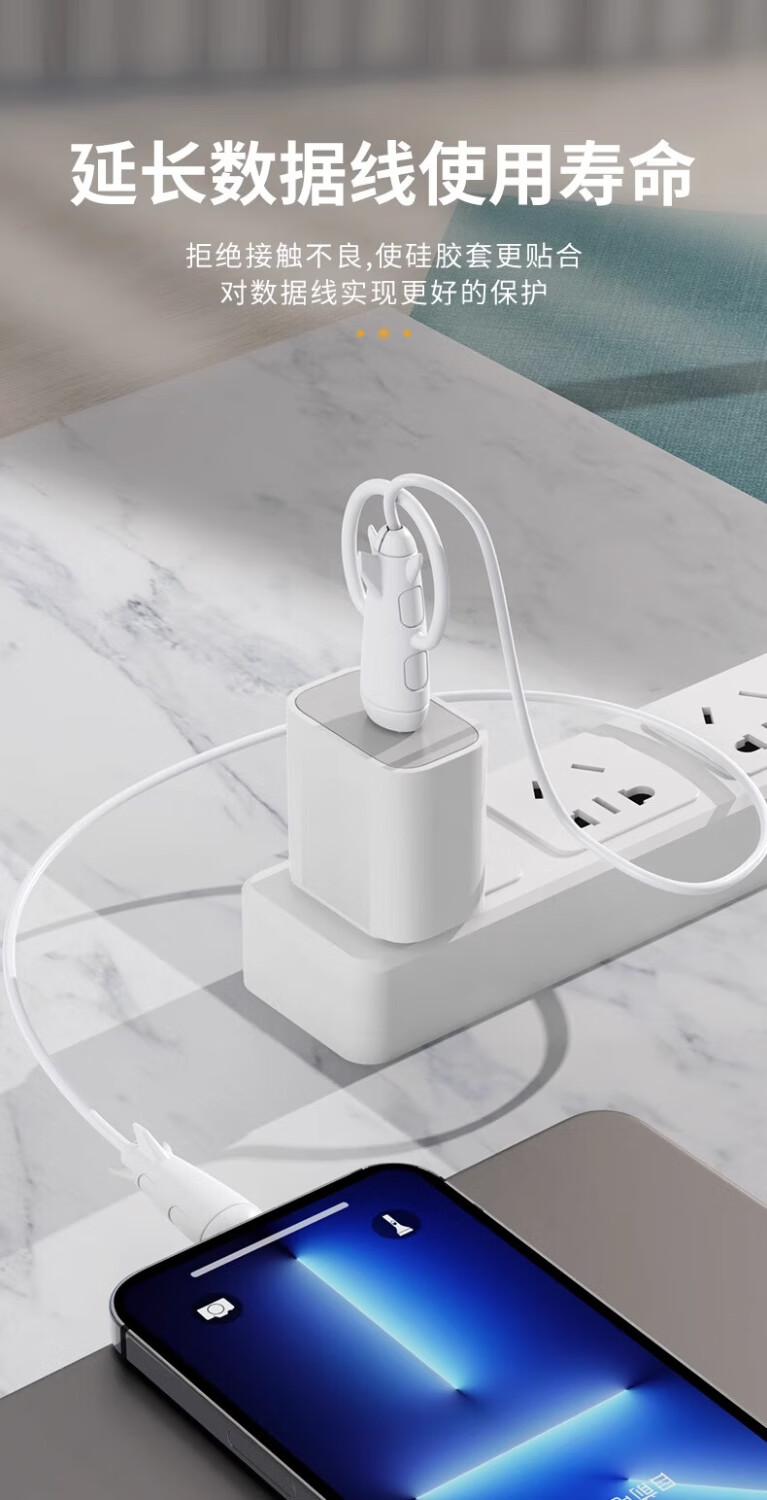 Data cable protective cover to prevent breakage, charging cable cable bite device, suitable for Apple 14promax, suitable for Huawei, oppo, Xiaomi, vivo, dedicated mobile phone connector, full package, USB + small head white
