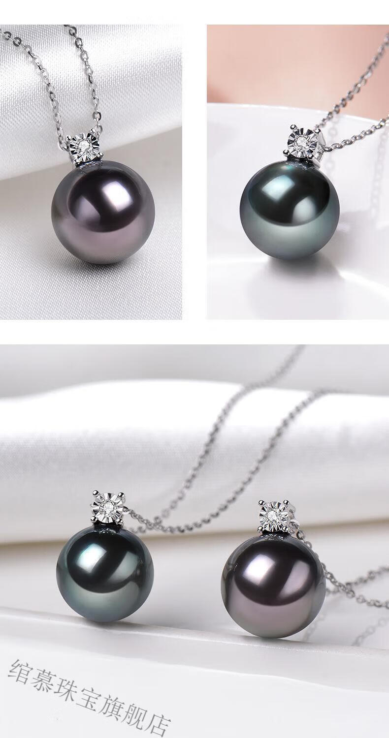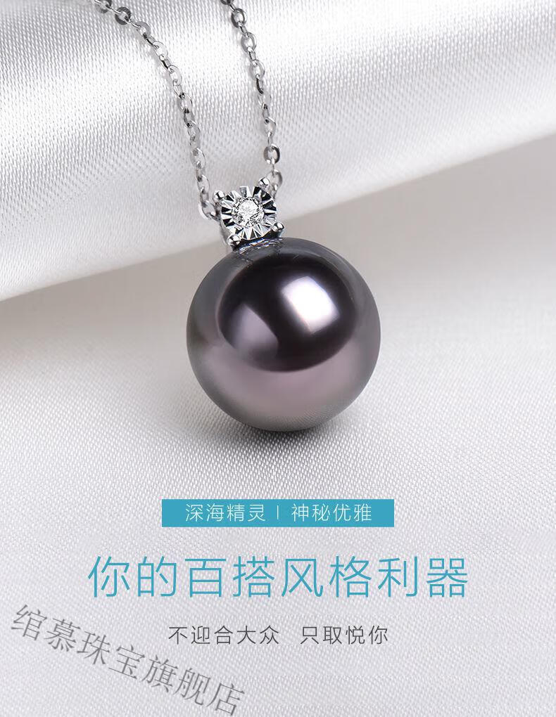 Ultimate Black Pearl Pendant Princess Style Seawater Pearl Single Necklace Necklace Valentine's Day Girlfriend Peacock Green Pearl Diameter 10mm