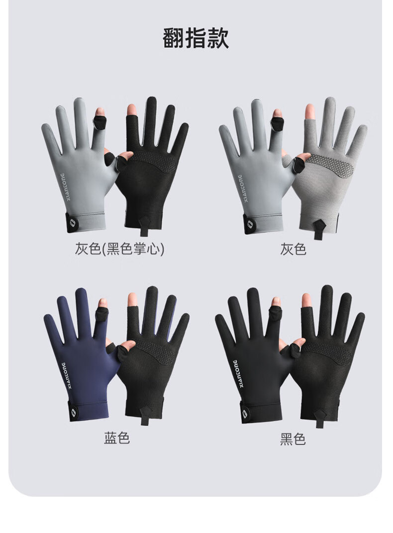 MDUG fishing gloves, non-stick bait, anti-thorn, quick-drying lures, men's fly fishing, exposed two-finger flip-finger anti-slip sun protection gloves, gray flip-finger style, one size fits all