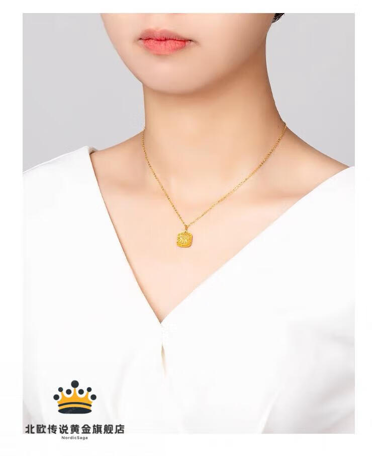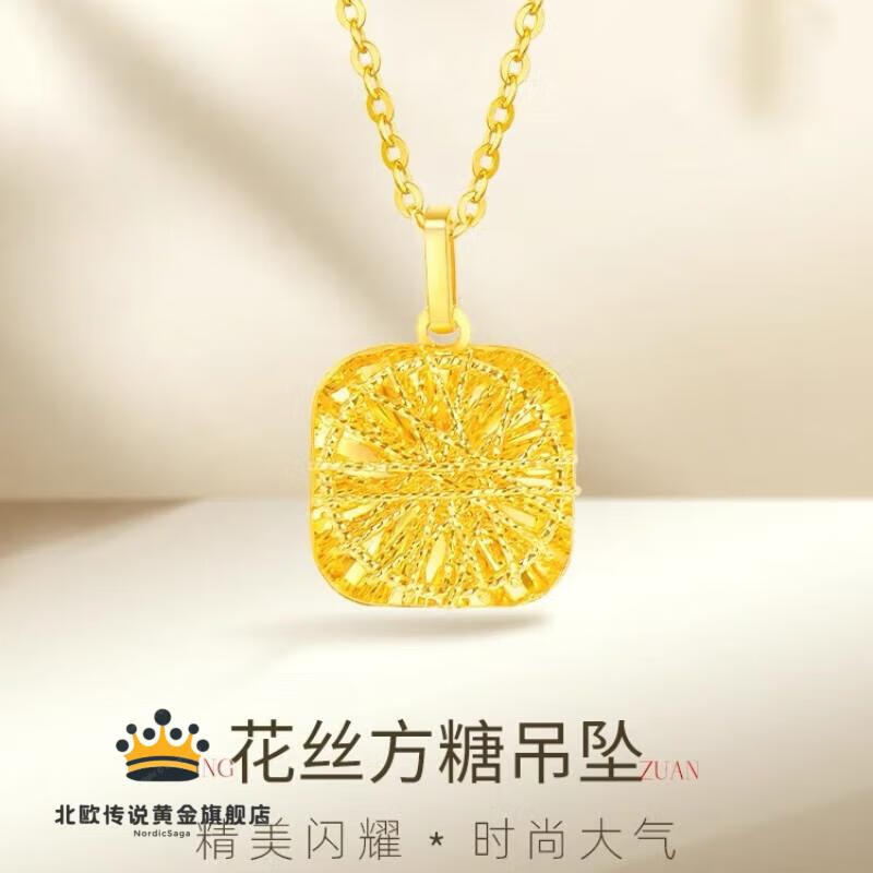 Fat Donglai's same style 18K gold sugar cube pendant 24k gold small necklace for women gold 999 pack silver burst gold small sugar cube necklace