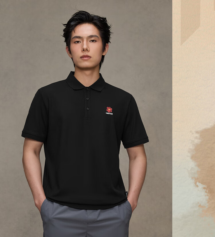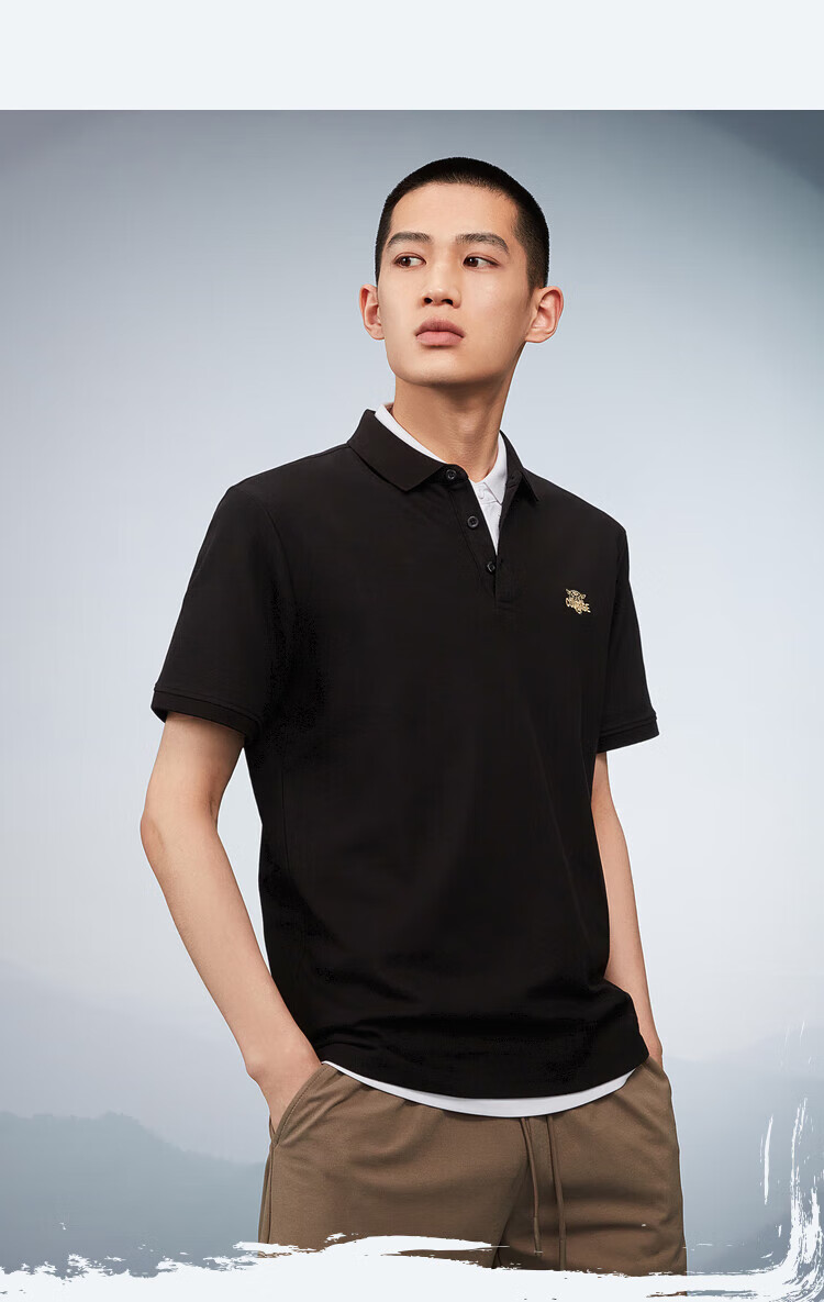 Heilan House (HLA) men's short-sleeved polo shirt 25 summer cool antibacterial casual business lapel high-end top men's short-sleeved summer dress black D6 M 170/88A recommended 63-68kg