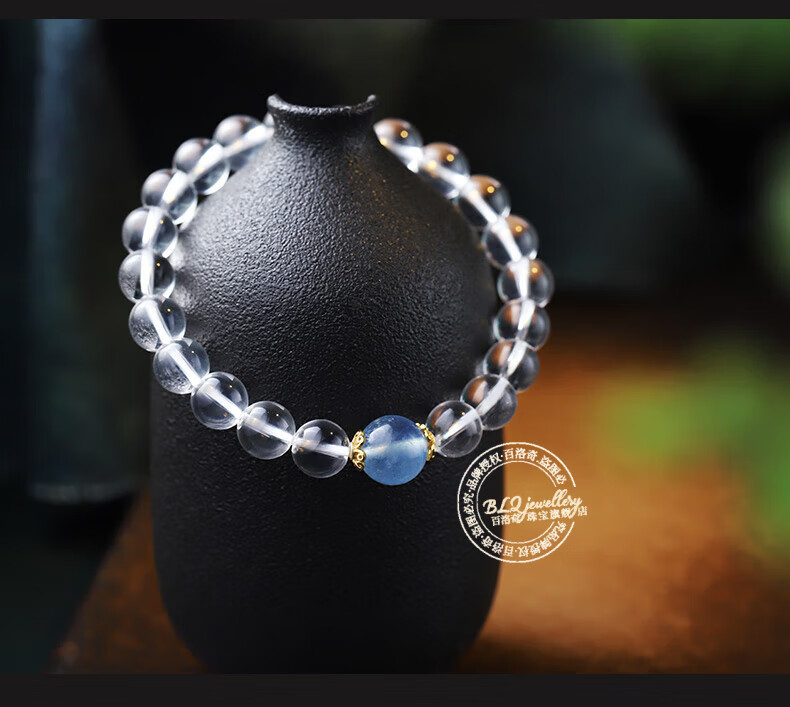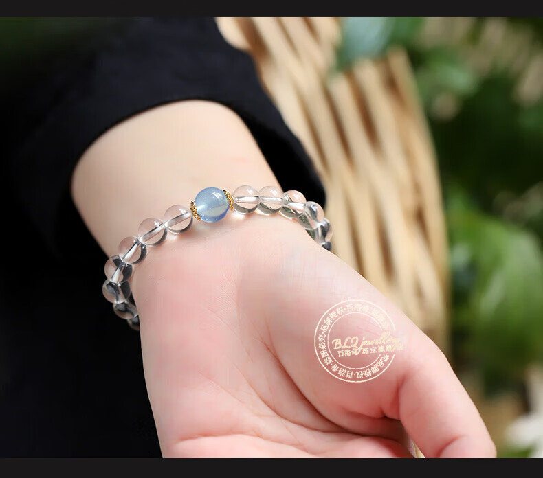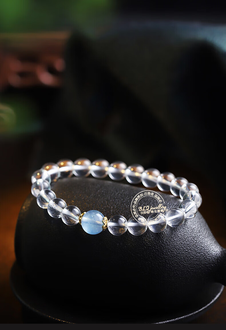 Bailuoqi 7A natural Brazilian white crystal bracelet women's aquamarine crystal bracelet as a birthday gift for girlfriend, bead diameter 6mm