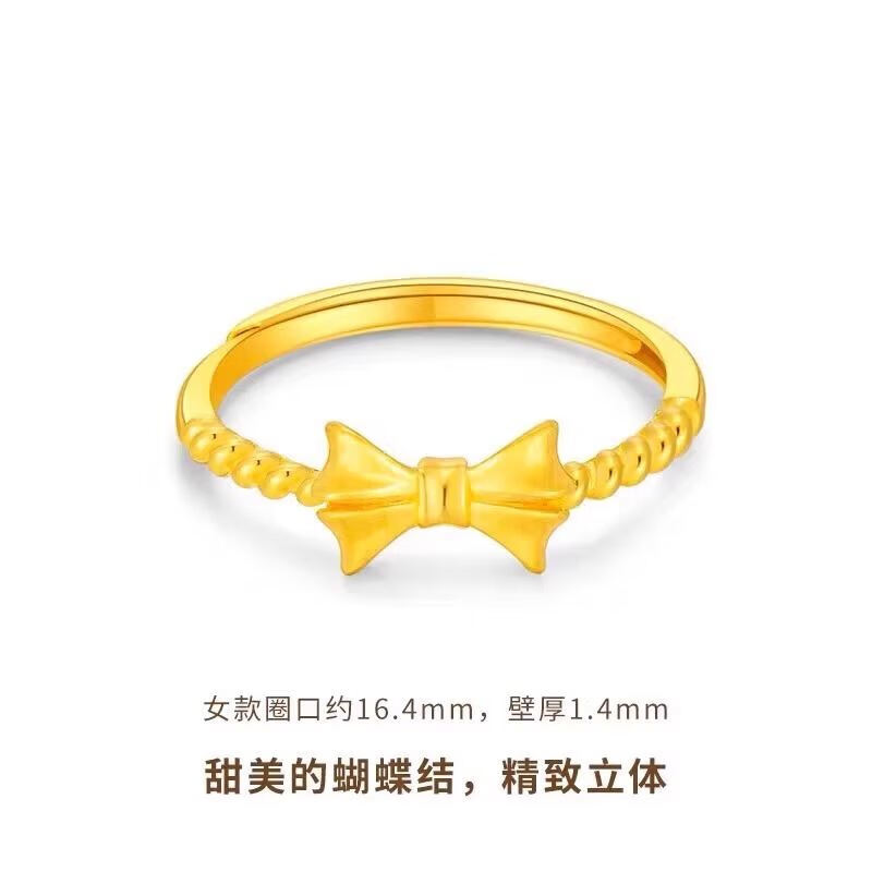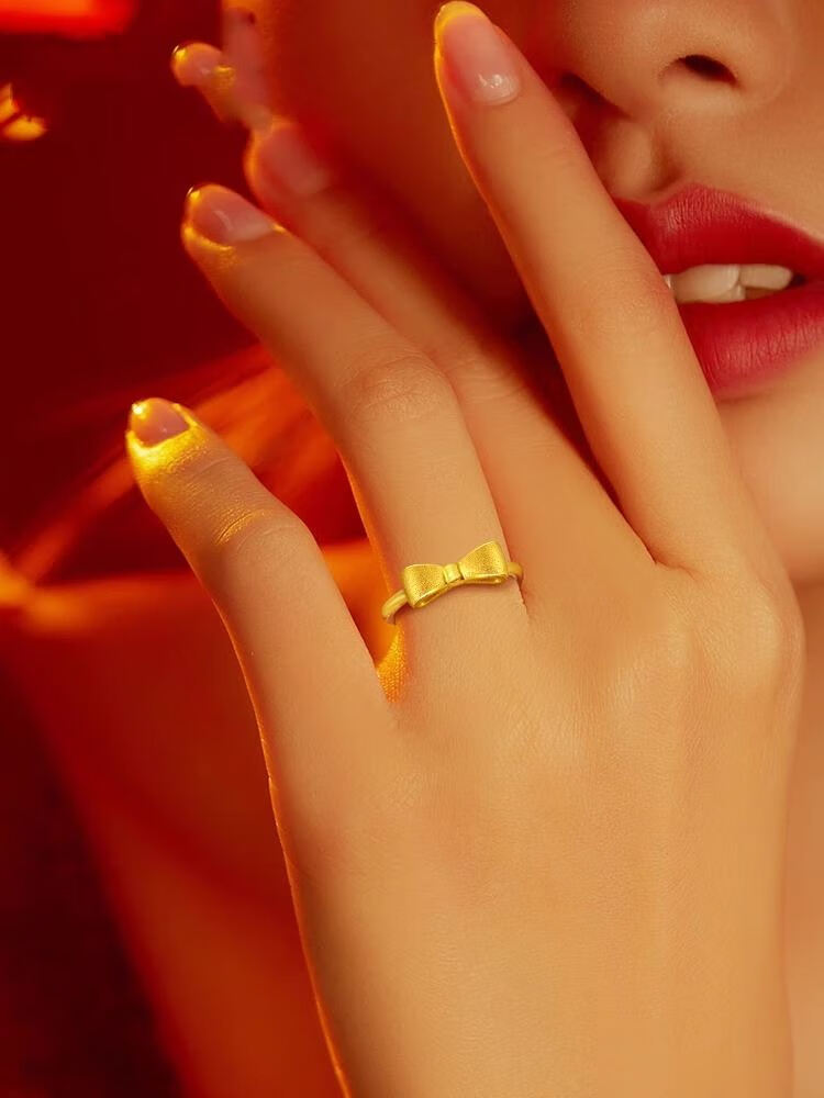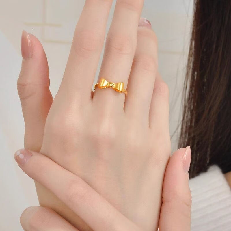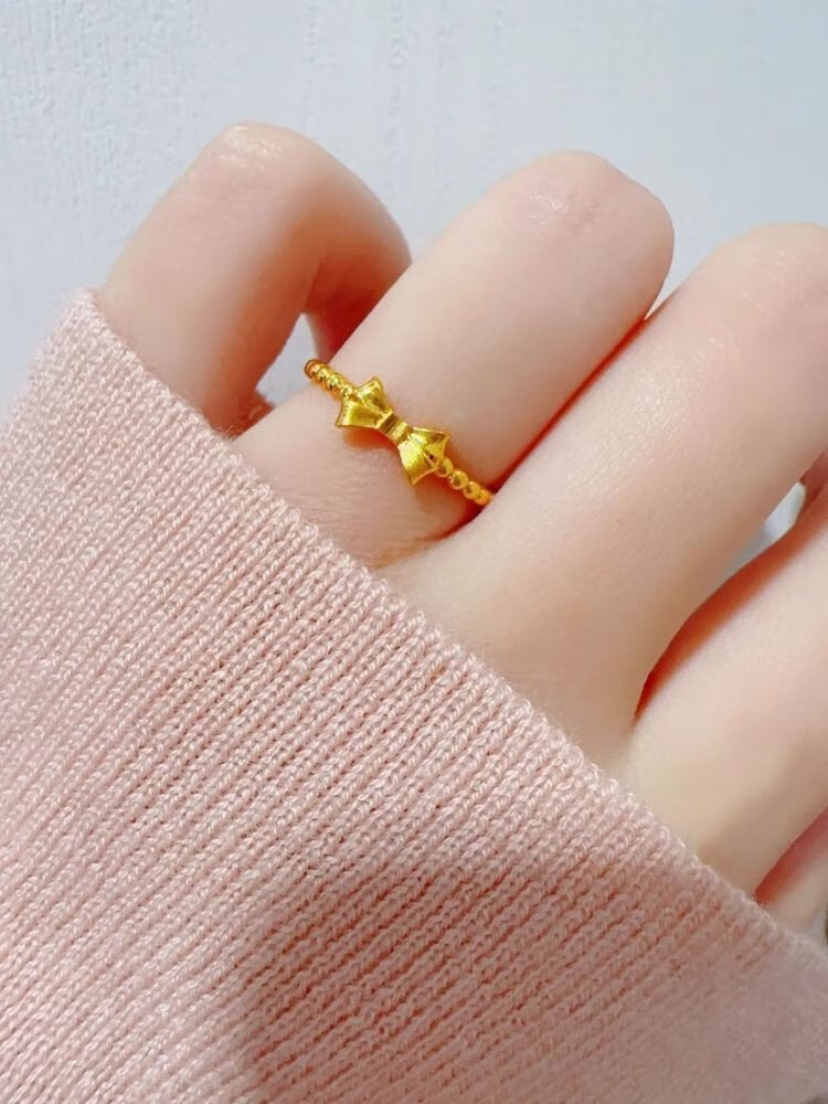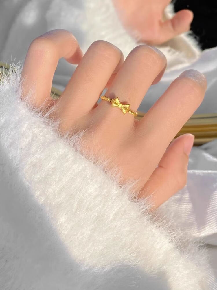 Jea.Pie Boutique Bow Gold Ring Women's Gold Filled Silver Adjustable Gold Solid Silver Ring Valentine's Day Twist Bow Ring (0.6g) Opening Adjustable