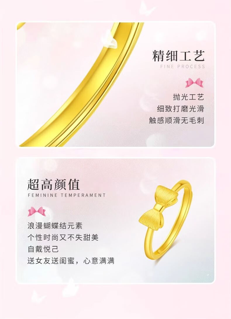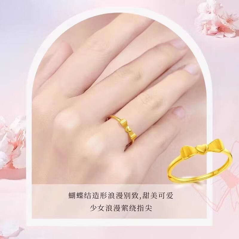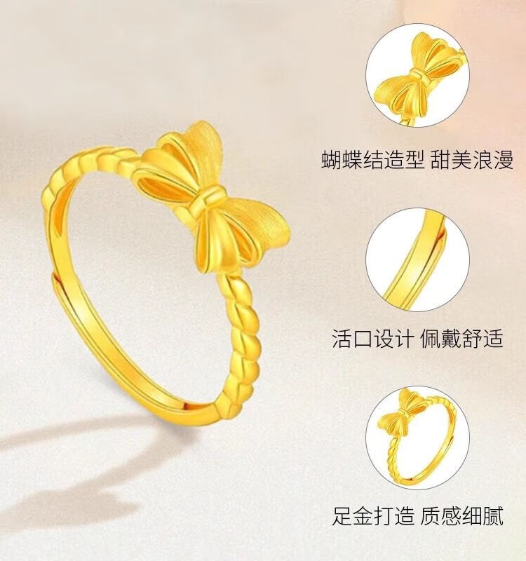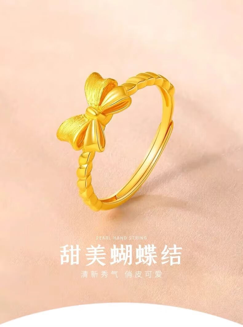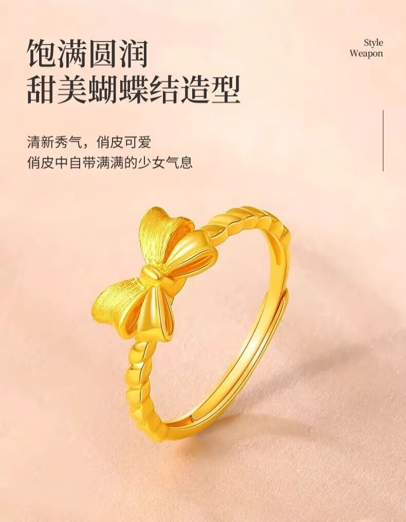 Jea.Pie Boutique Bow Gold Ring Women's Gold Filled Silver Adjustable Gold Solid Silver Ring Valentine's Day Twist Bow Ring (0.6g) Opening Adjustable