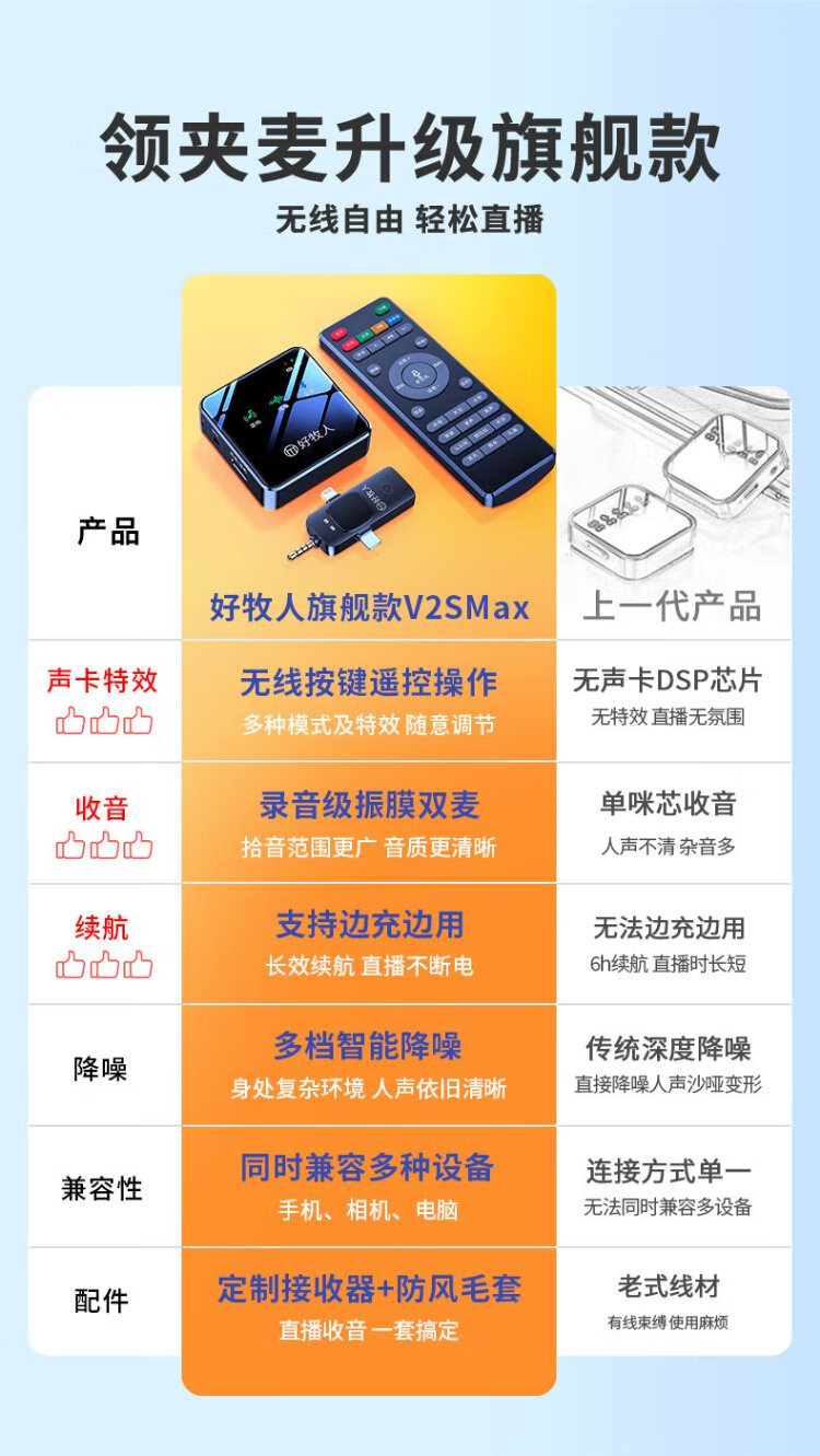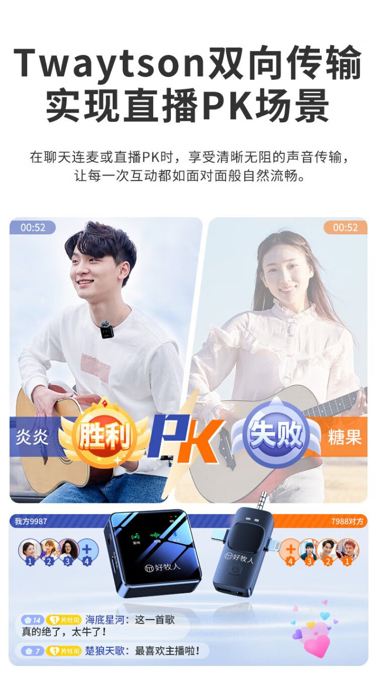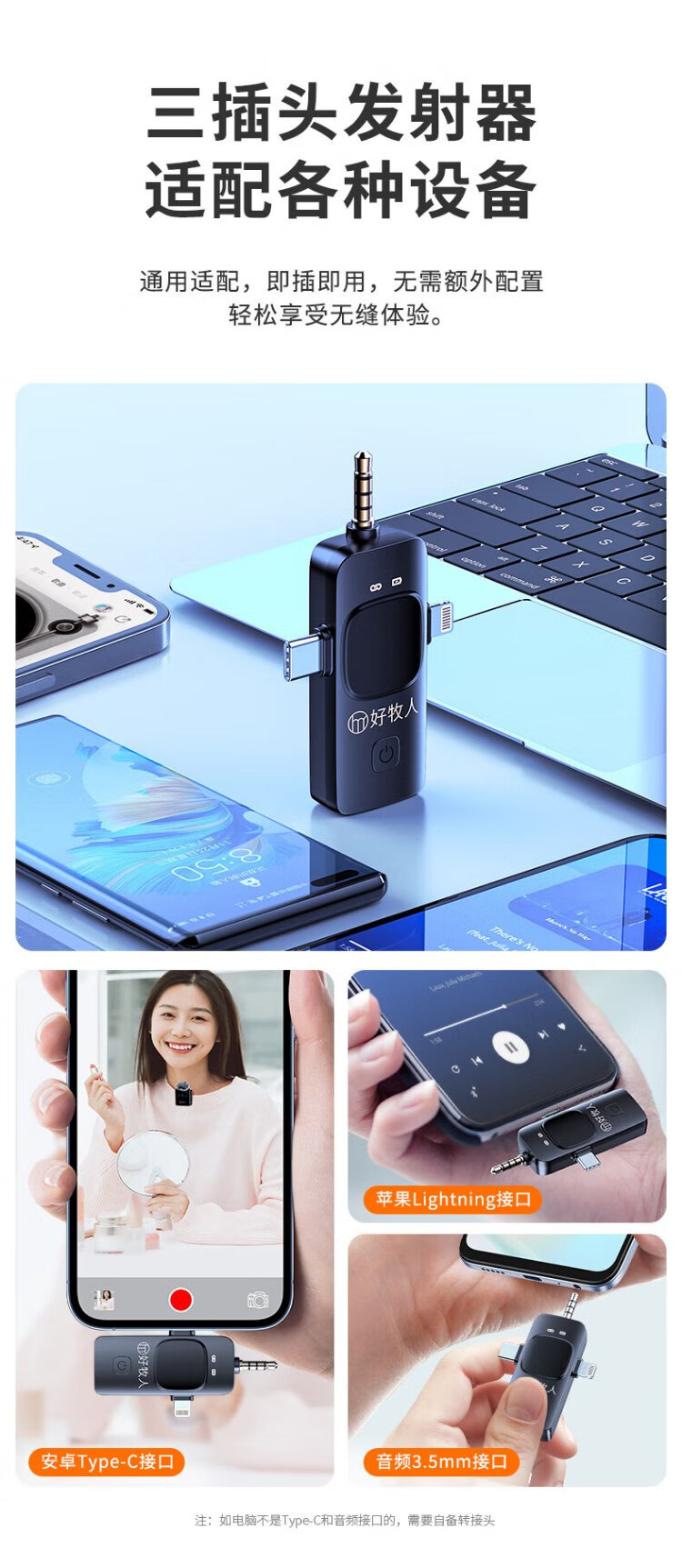 Good Shepherd Wireless Lavalier Live Broadcast Microphone Radio Mic Douyin Anchor Internet Celebrity Outdoor Mobile Phone Computer Recording K Song Shooting Video Noise Reduction Microphone Live Broadcast Sound Card Equipment Dual-mic Radio Noise Reduction Lavalier Microphone + Sound Card Remote Control One-to-One
