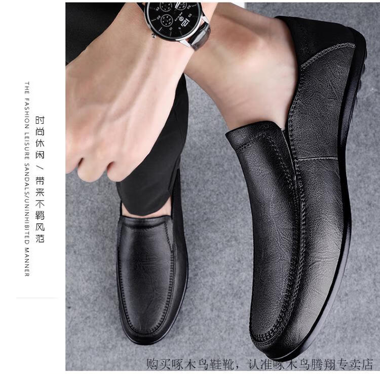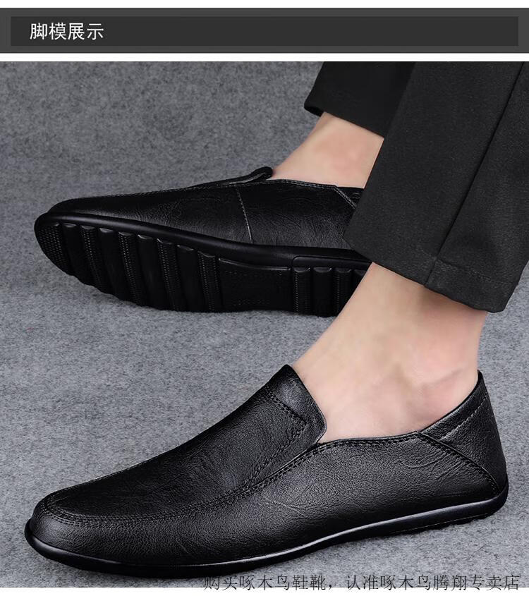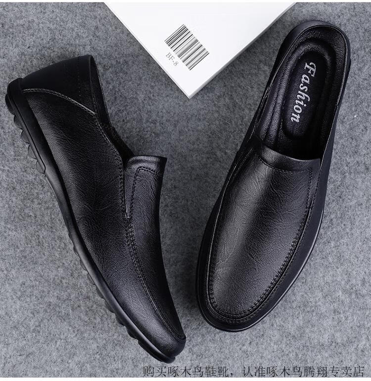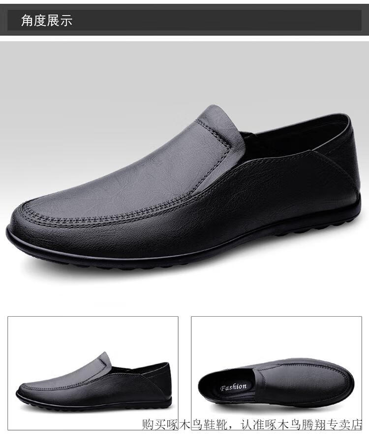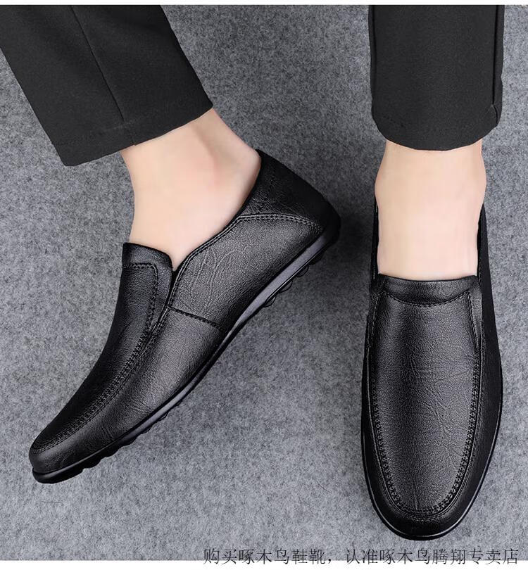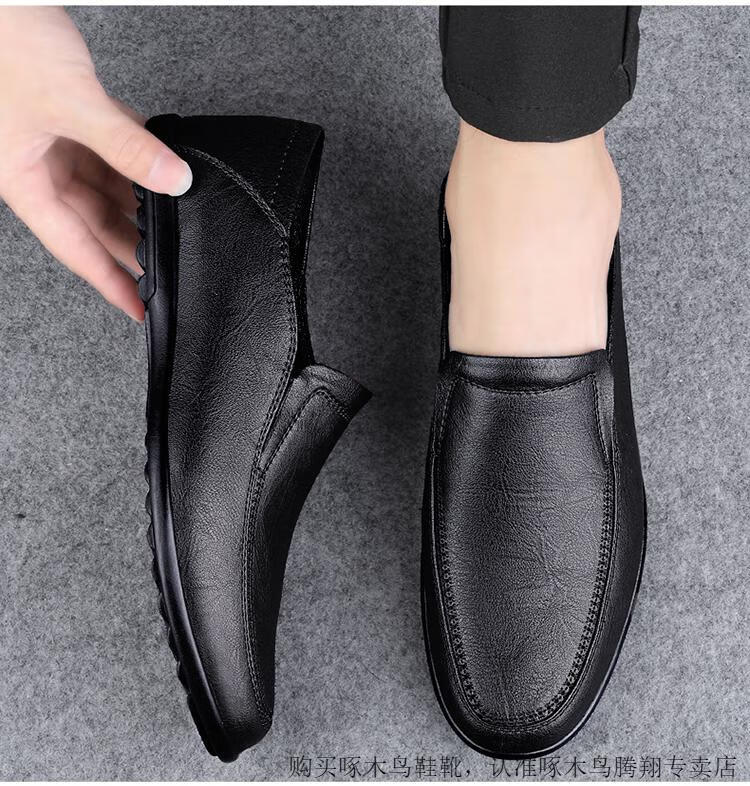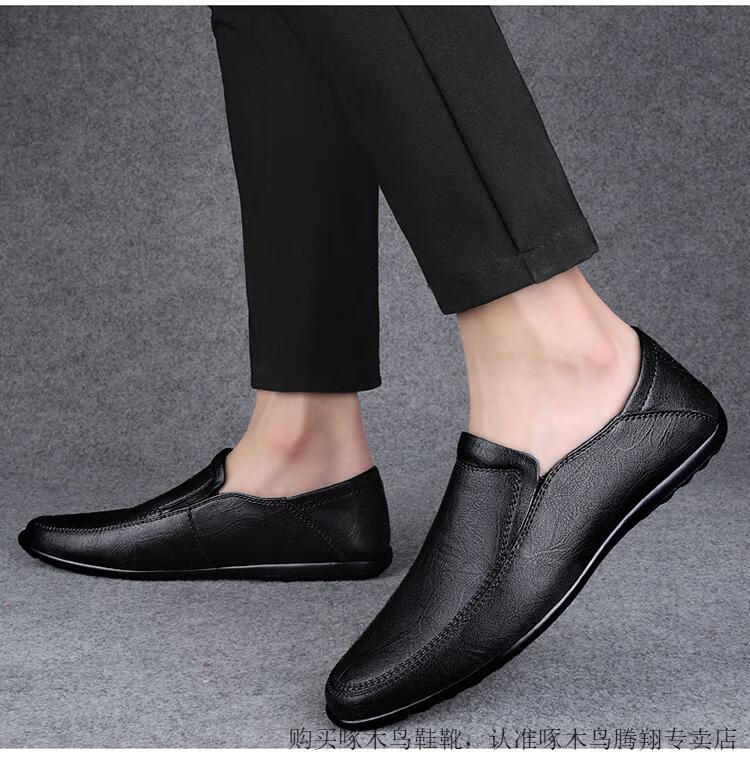 Woodpecker Men's Business Casual Genuine Leather Casual Leather Shoes Soft Leather Soft Sole Slip-On Beanie Shoes Versatile Men's Shoes Black 42