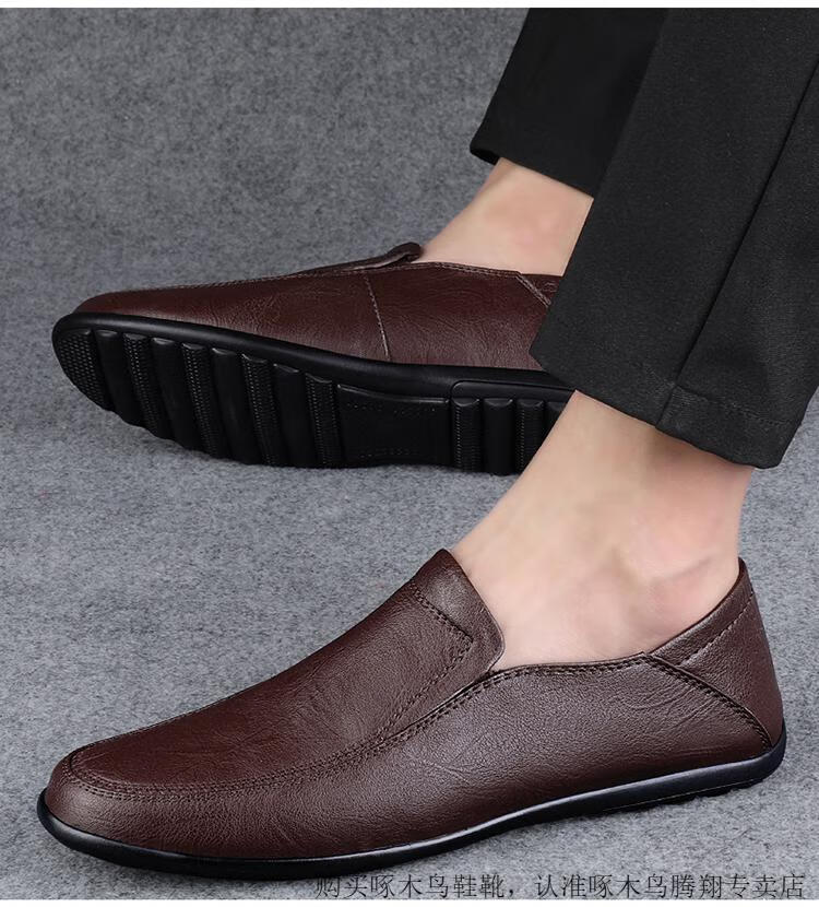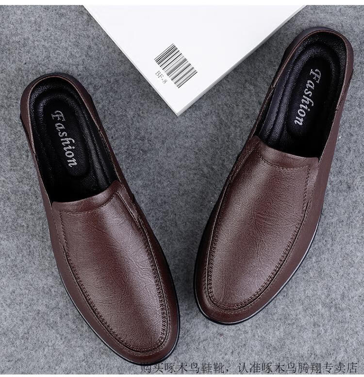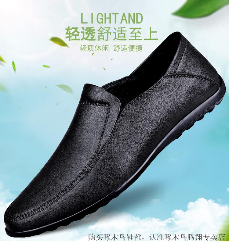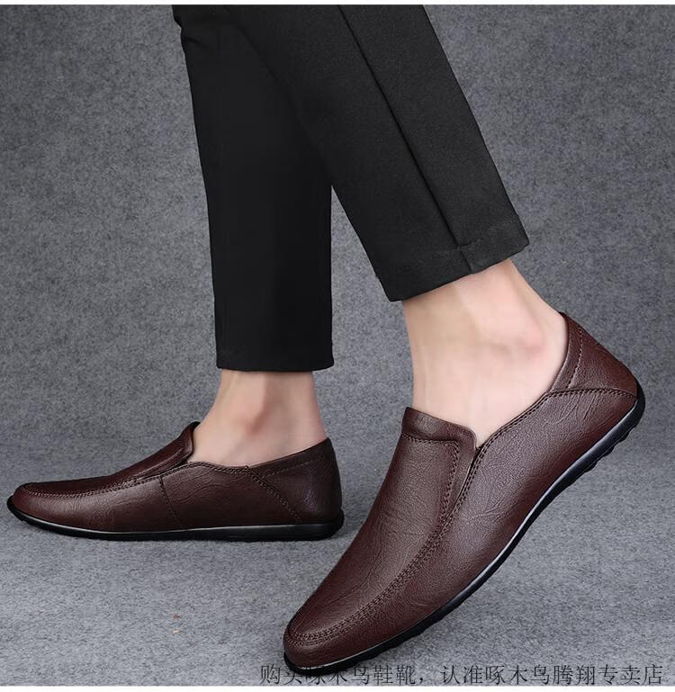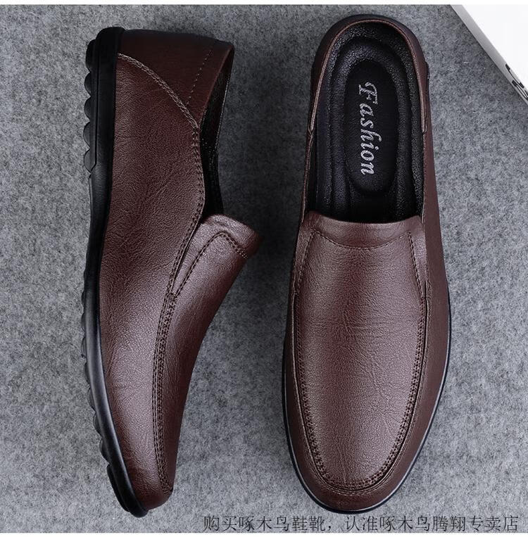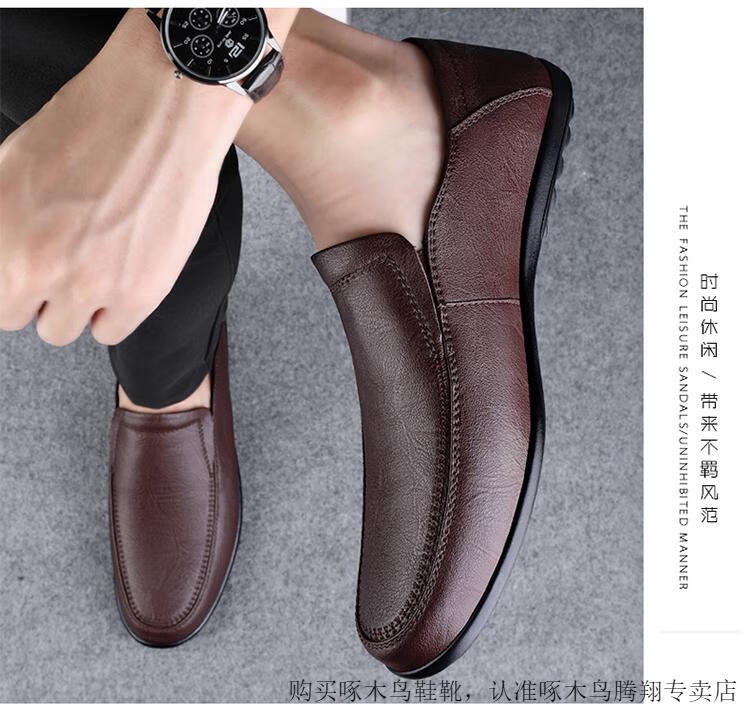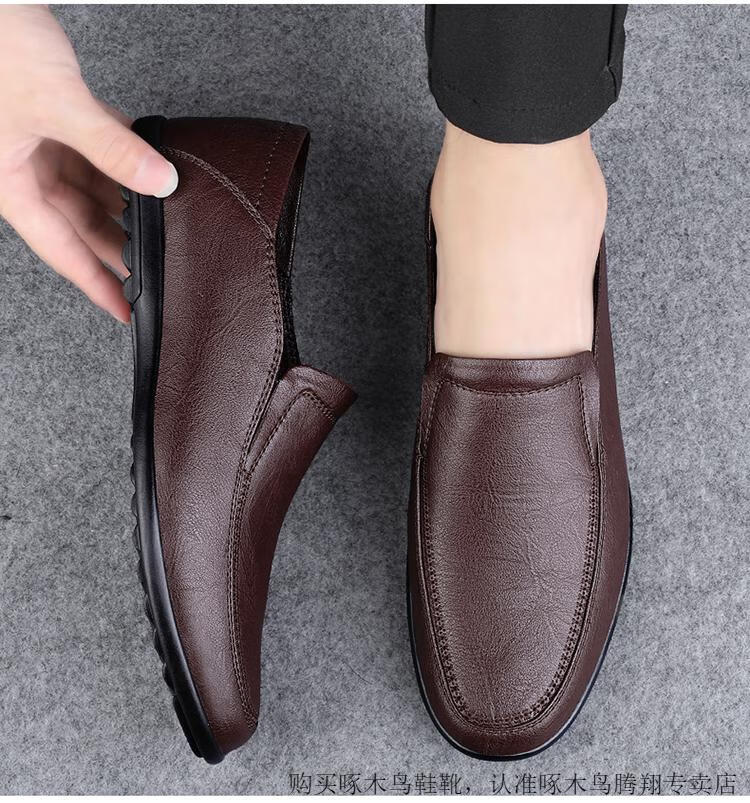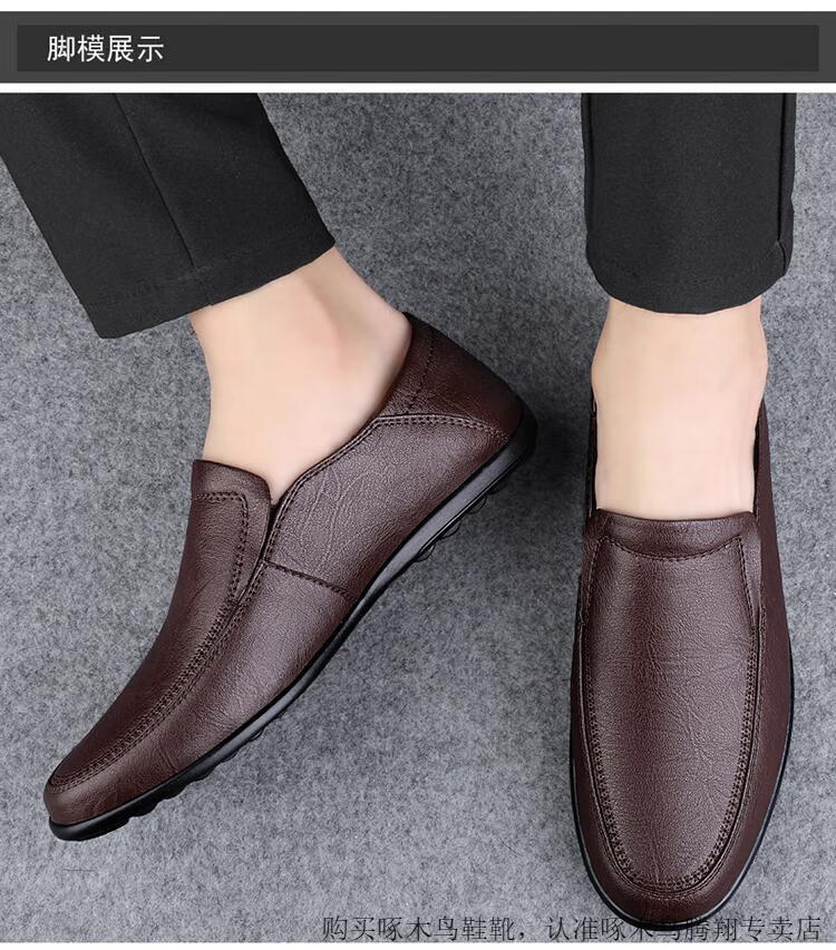 Woodpecker Men's Business Casual Genuine Leather Casual Leather Shoes Soft Leather Soft Sole Slip-On Beanie Shoes Versatile Men's Shoes Black 42