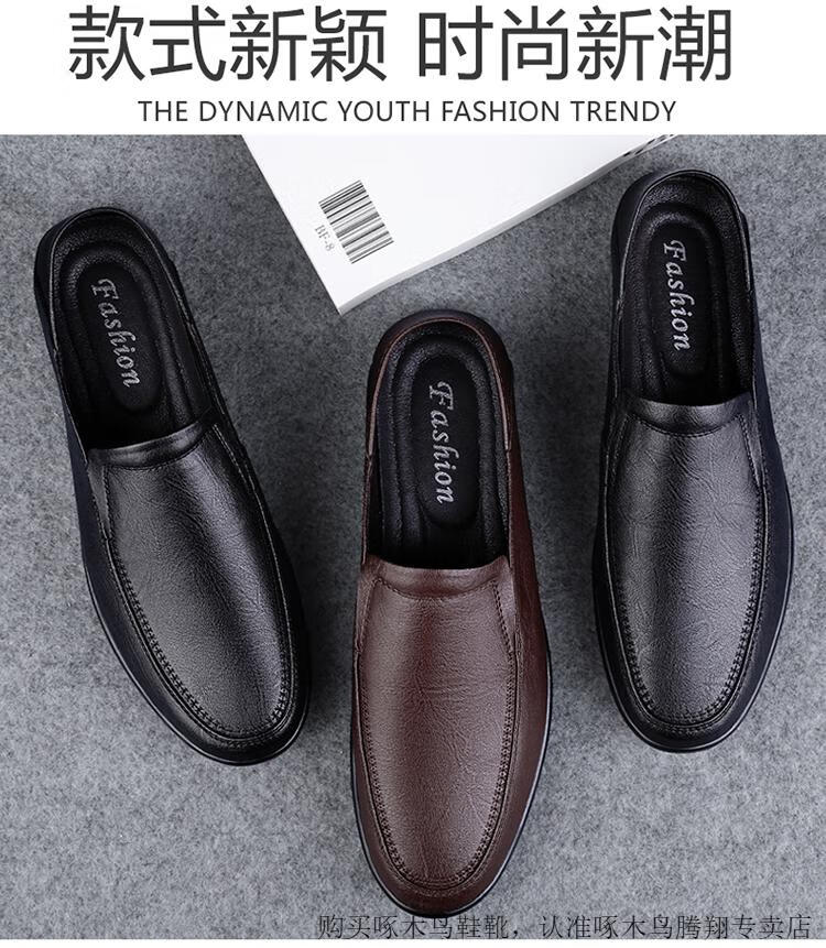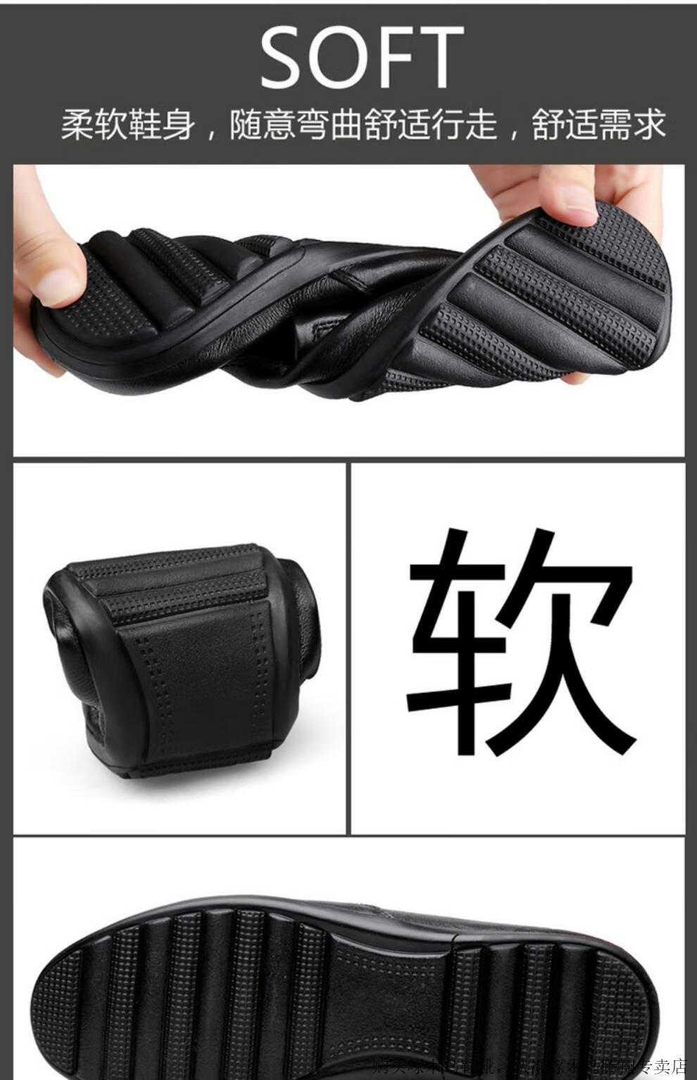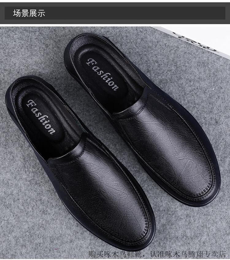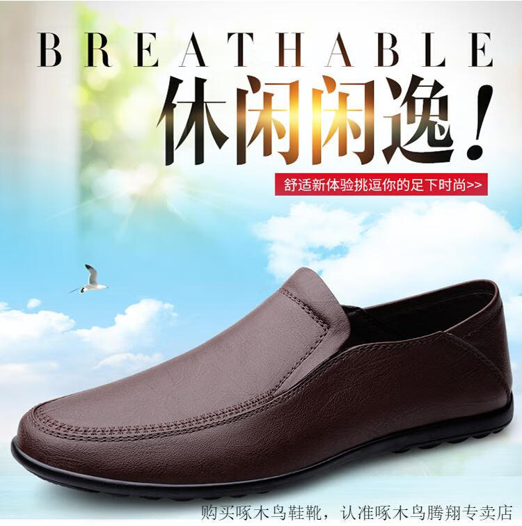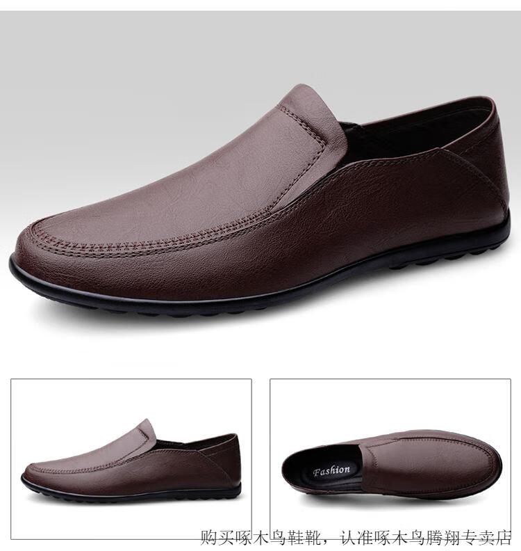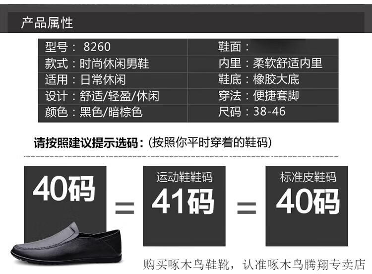 Woodpecker Men's Business Casual Genuine Leather Casual Leather Shoes Soft Leather Soft Sole Slip-On Beanie Shoes Versatile Men's Shoes Black 42