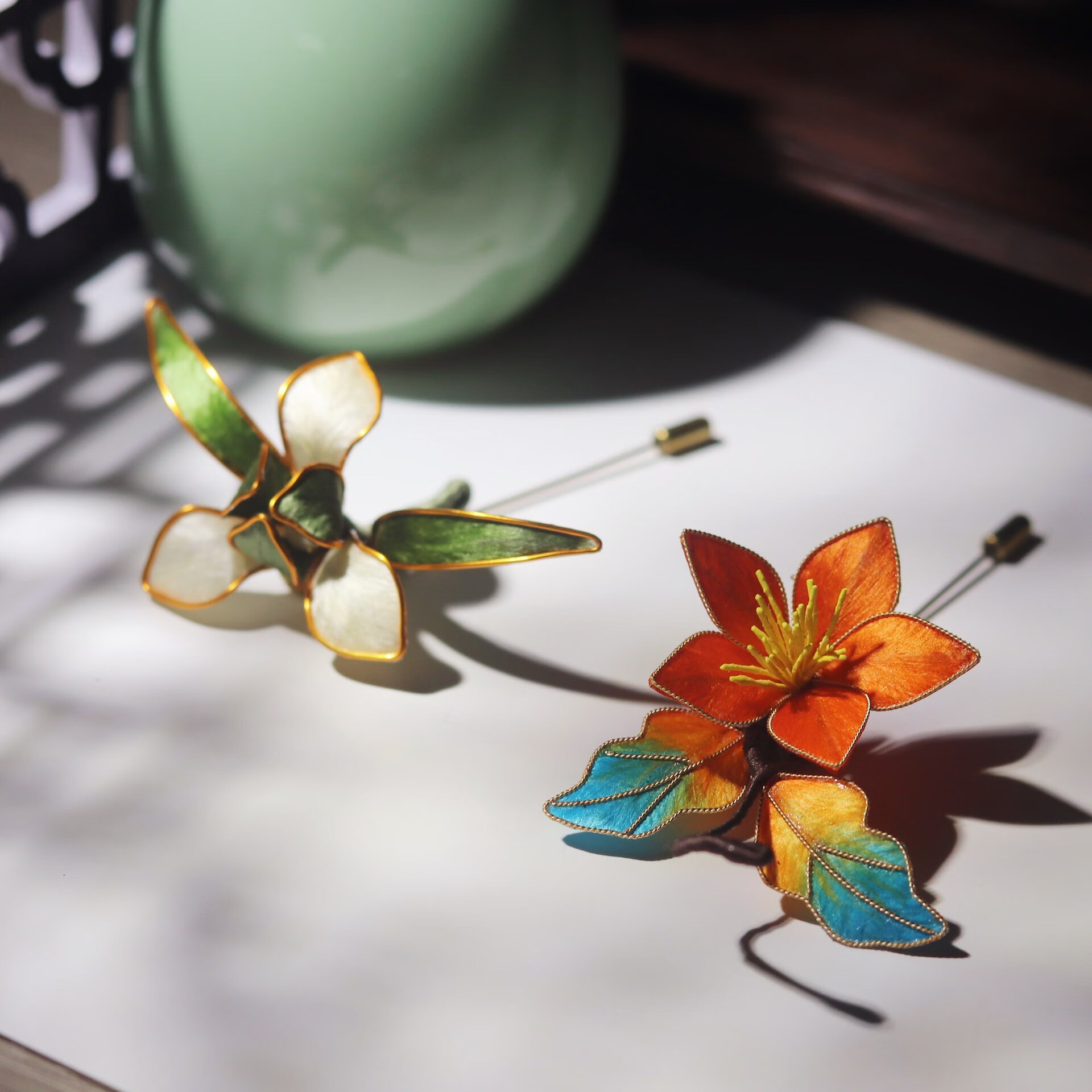 Lingchuan Intangible Cultural Heritage Cloisonné Flower Orchid Maple Leaf Brooch Antique Hanfu Cheongsam Accessories Classic Hairpin Style 1