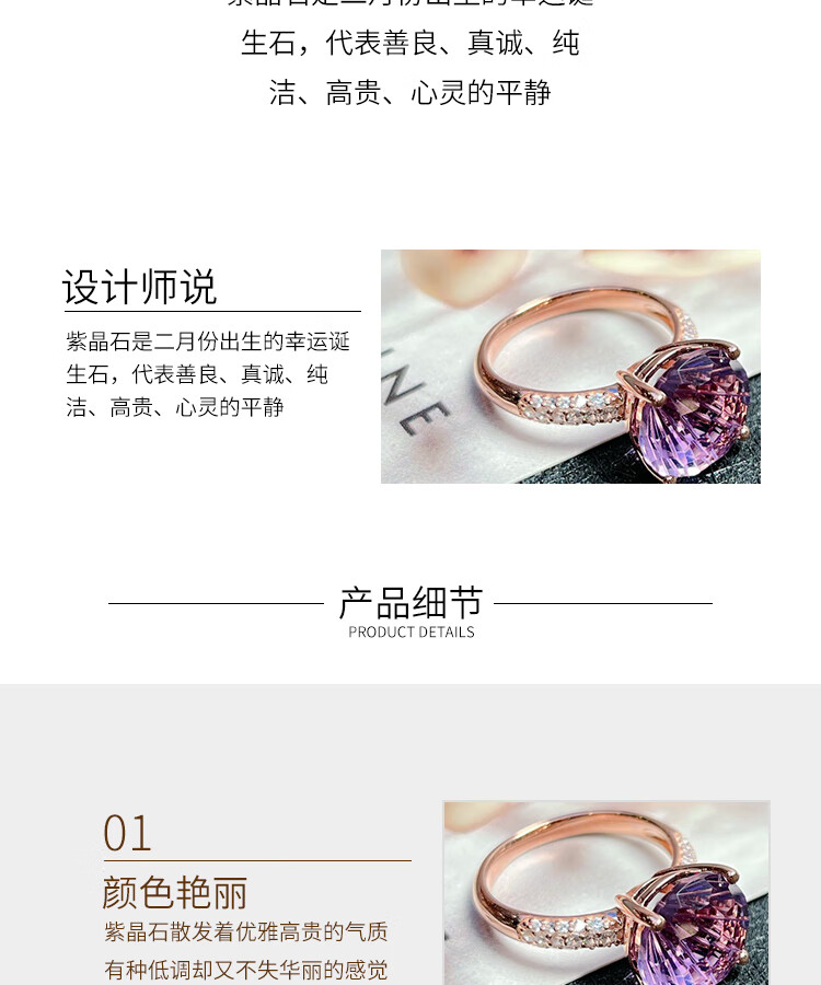 CAJJ Francois 6.0 carat amethyst ring for women, natural colored gemstone, 925 silver inlaid jewelry, size 13
