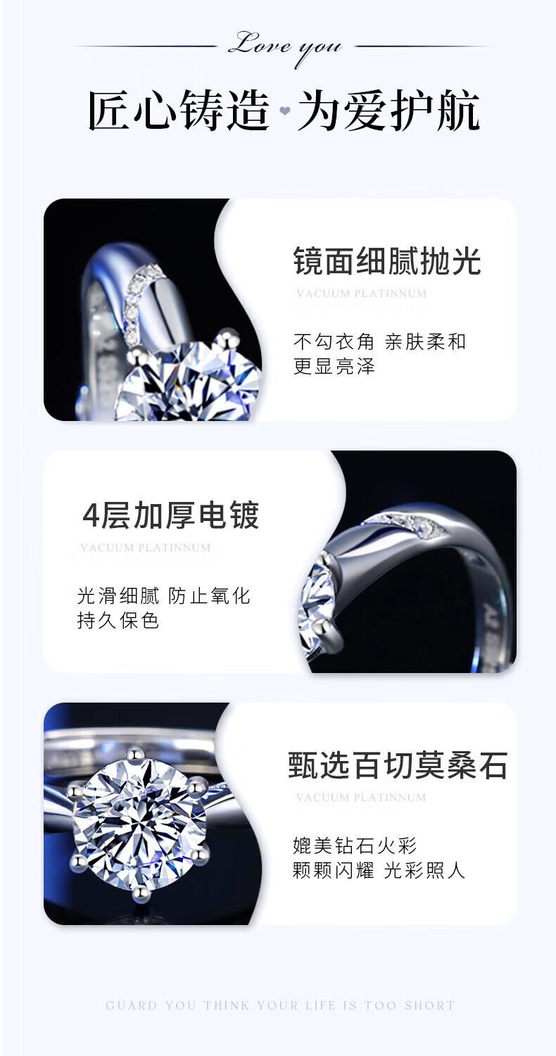 Grace Girl One Carat Diamond Platinum Ring for Women Light Luxury Live Adjustable Proposal Anniversary Gift for Girlfriend Birthday Gift Platinum One Carat Moissanite Diamond Ring for Women