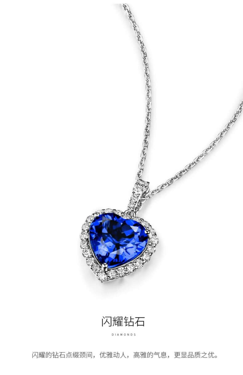 Orenchi Heart of the Ocean Sapphire Necklace for Women Diamond Pendant Luxury Jewelry Wedding Anniversary Birthday Gift for Wife Tanzanite Diamond Pendant + 18K White Gold Chain Main Stone 1.64CT, Diamond 0.2CT Natural Tanzanite