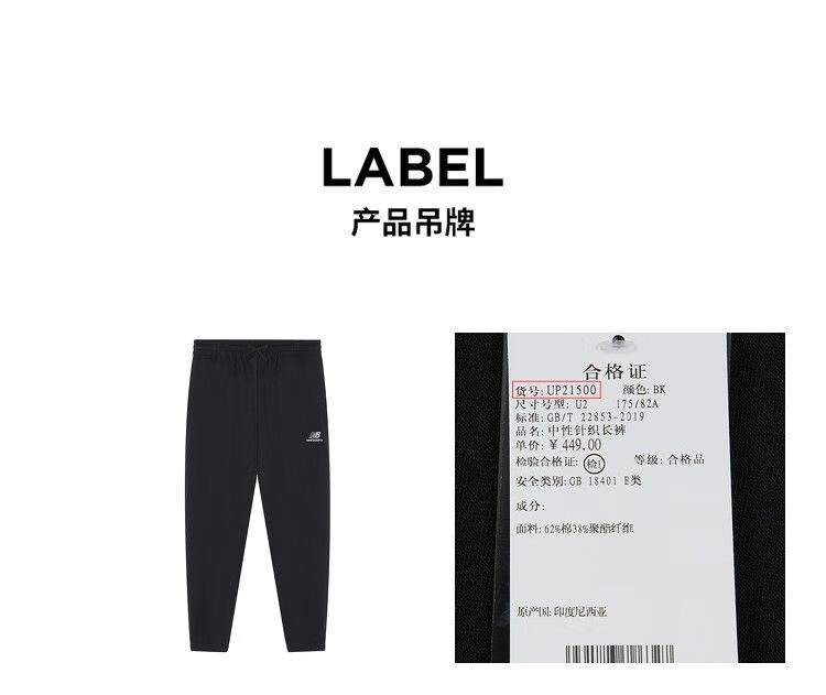 NEW BALANCE New BalanceNB official men's and women's fitness sports leggings couples casual trousers UP21500 BK black 165