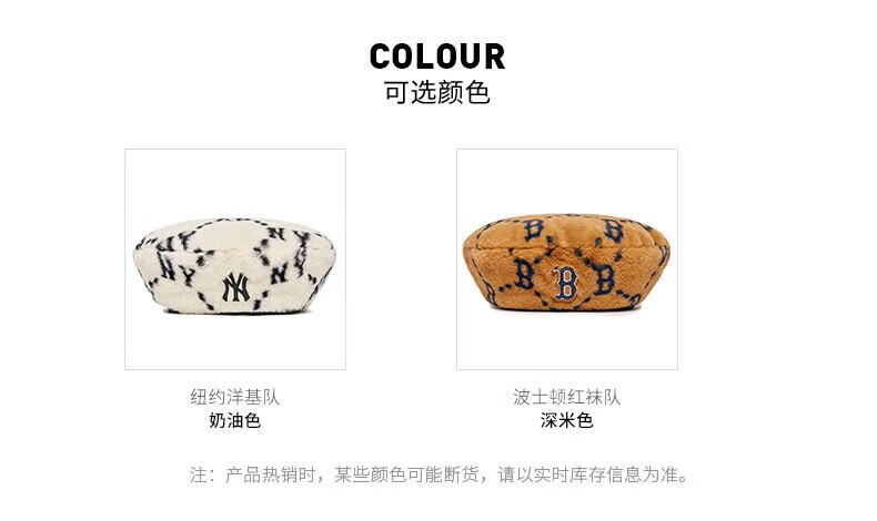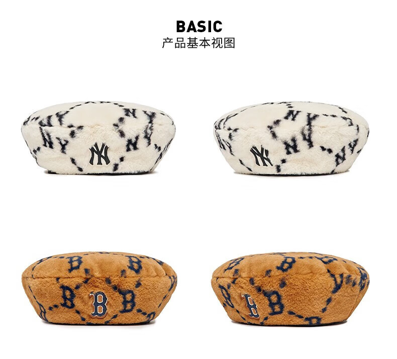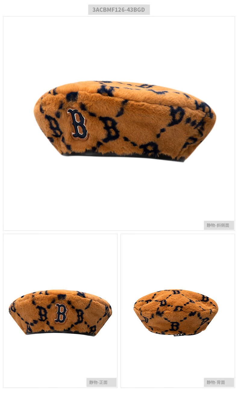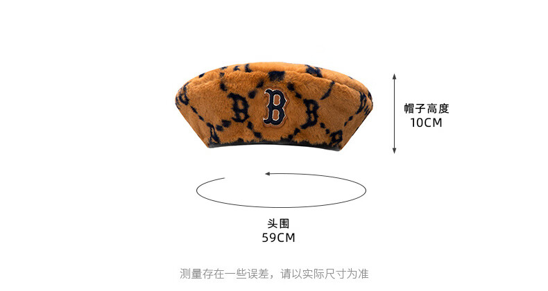 MLB official imitation lamb velvet beret for men and women, spring style presbyopic casual sports hat 3ACBMF126 Boston/Dark Beige S