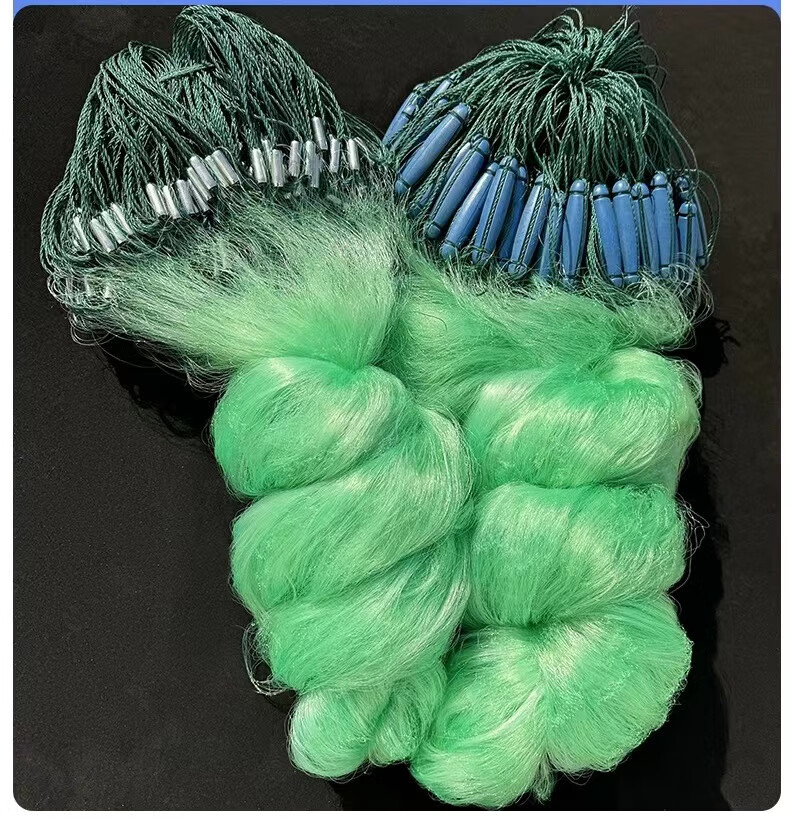 Guangtai 4-20 meters deep water reservoir fish net sticky fishing net three-layer sunken net weighted perforated plastic float soft silk fishing net 4 meters high 3 fingers 100 meters long three-layer sunken net