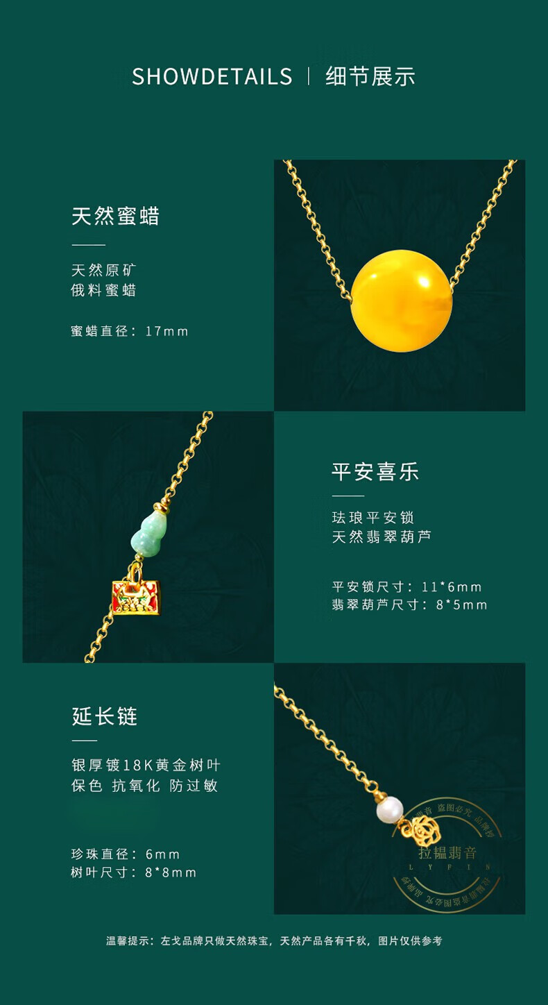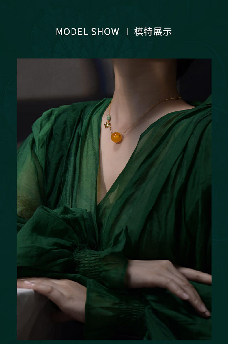 Layun Feiyin natural Russian beeswax bead pendant necklace women's niche design 18K gold clavicle chain simple retro gift beeswax 17mm+18k gold gold-plated chain