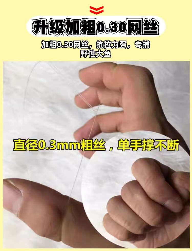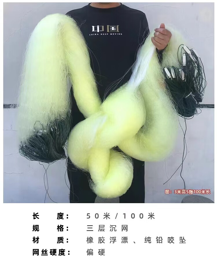 Guangtai Strong Tension Thick 0.30 Yellow Silk Fish Net Sticky Fish Net Weighted Sinking Net Grass Carp and Silver Carp Fishing Net Large Fishing Net 50 Meters Long Reinforced 0.30 Silk 2 Meters High 5 Finger Eyes Three-layer Sinking Net