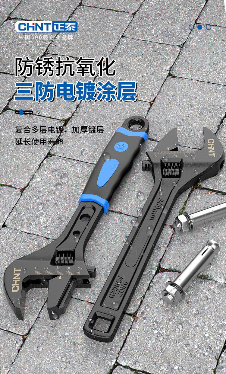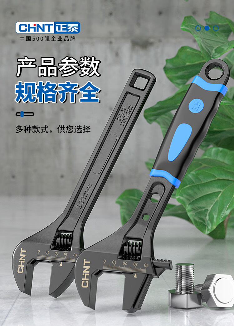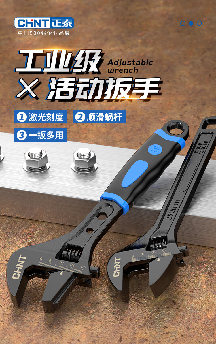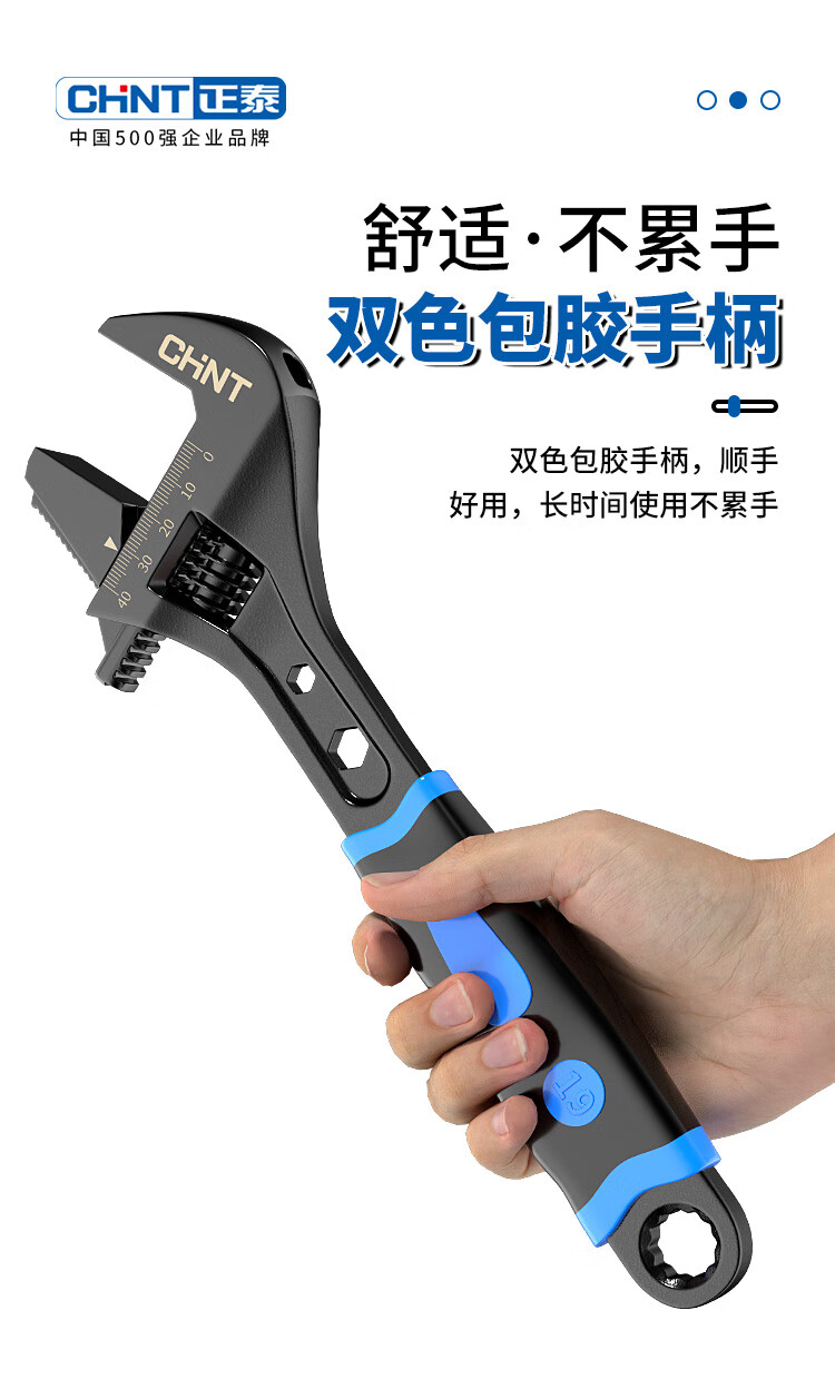 Chint adjustable wrench large opening bathroom wrench live mouth spanner household multi-functional repair tool pipe and work dual-purpose wrench 8-inch rubber-coated adjustable wrench pipe and work dual-use