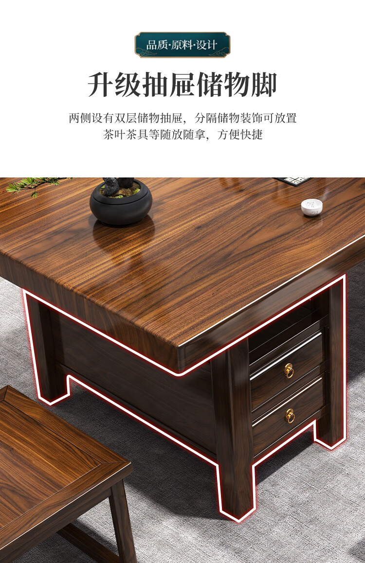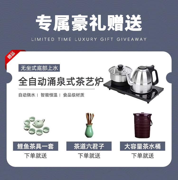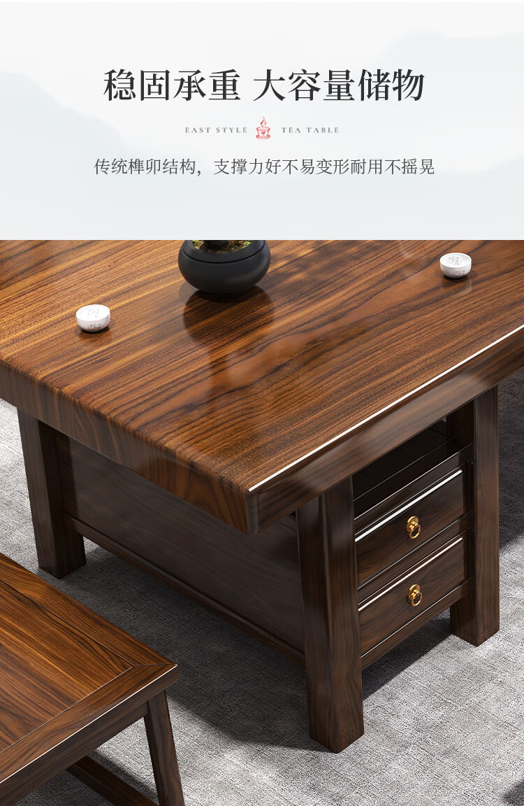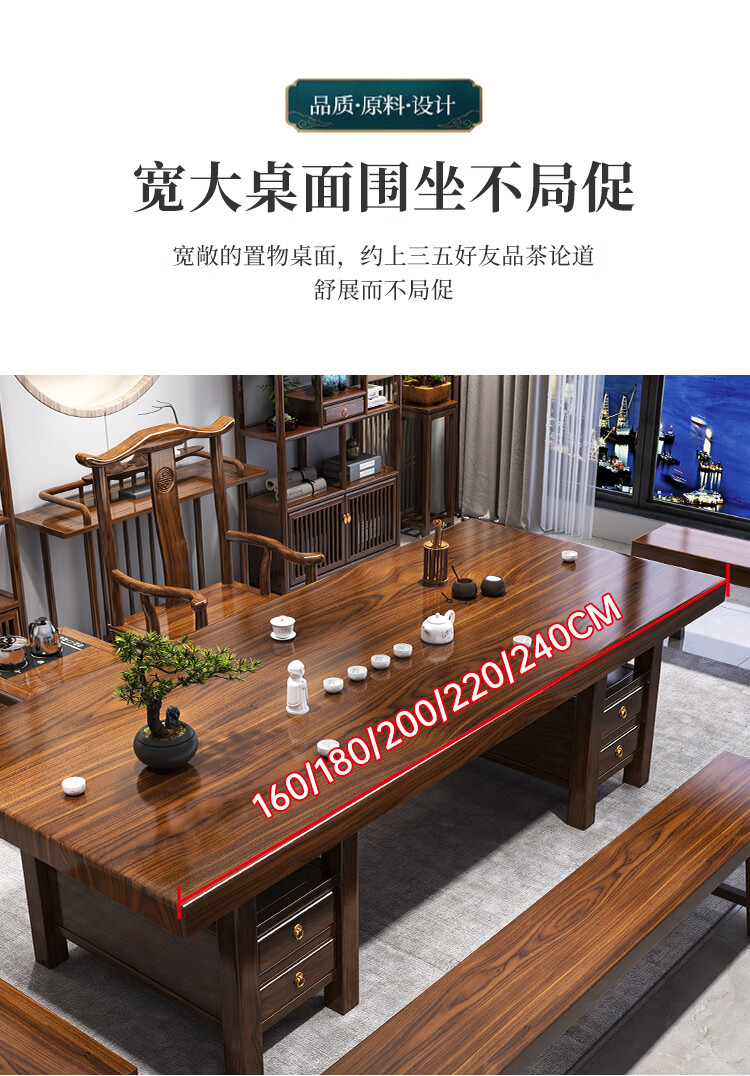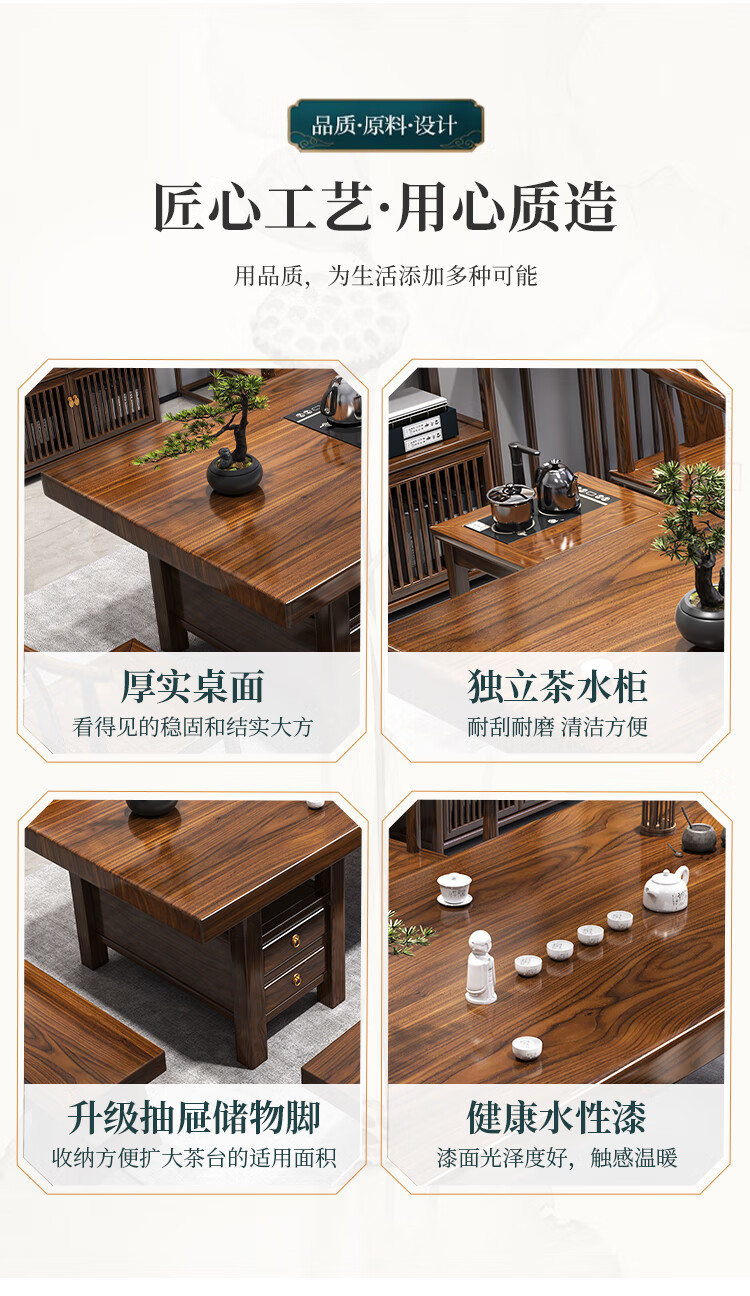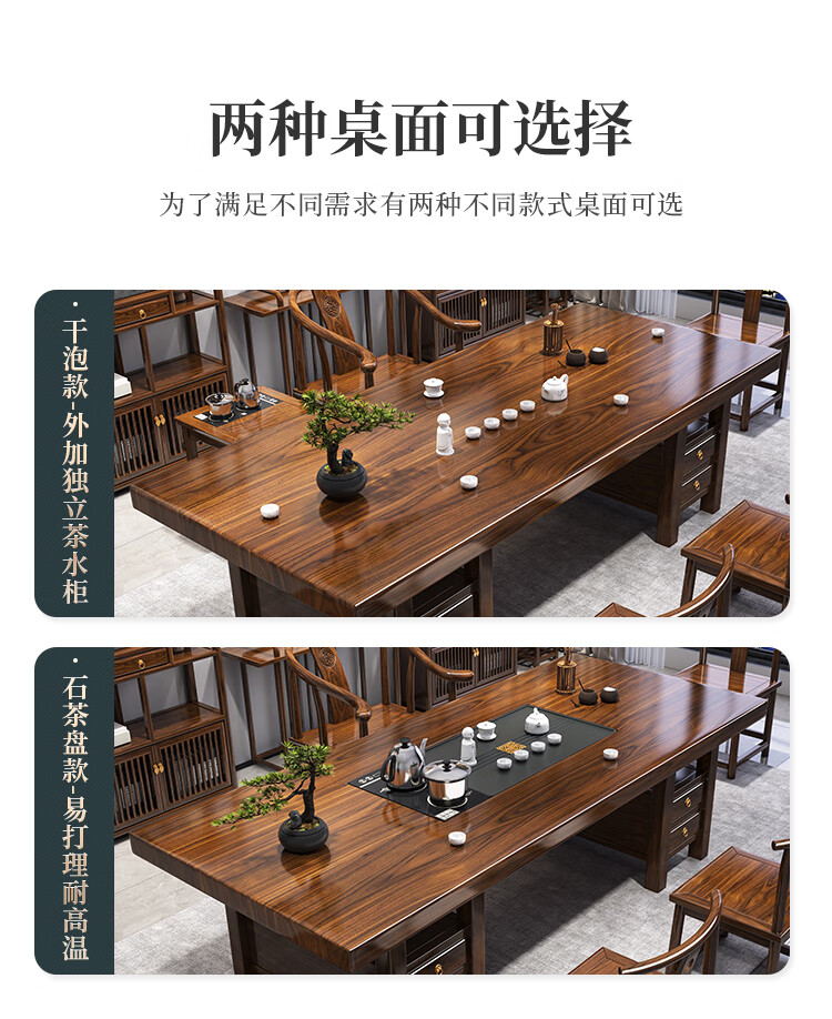 Fangchao solid wood large board tea table and chair combination new Chinese style with kettle for home office Zen Kung Fu tea table stone plate tea table 1 surrounding chair 4 crescent chairs 1.6 meters thickened 7cm desktop