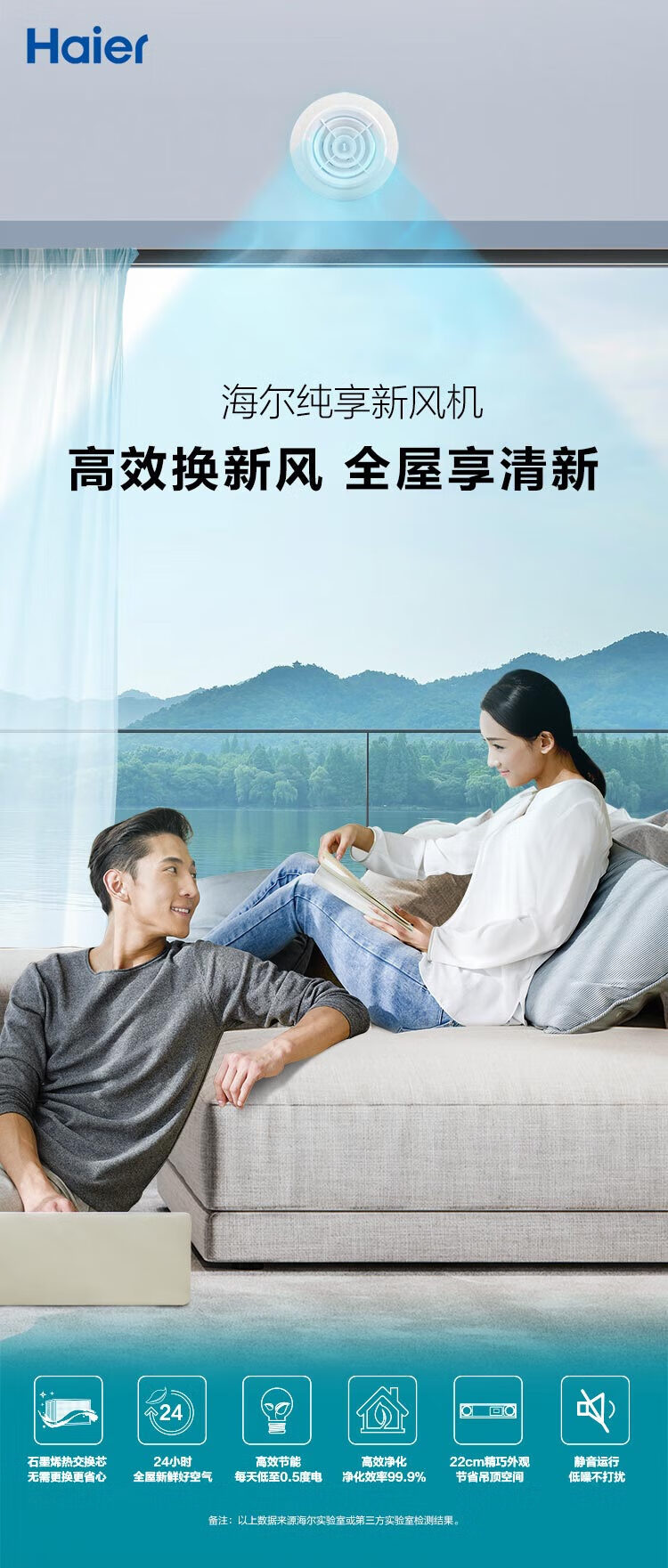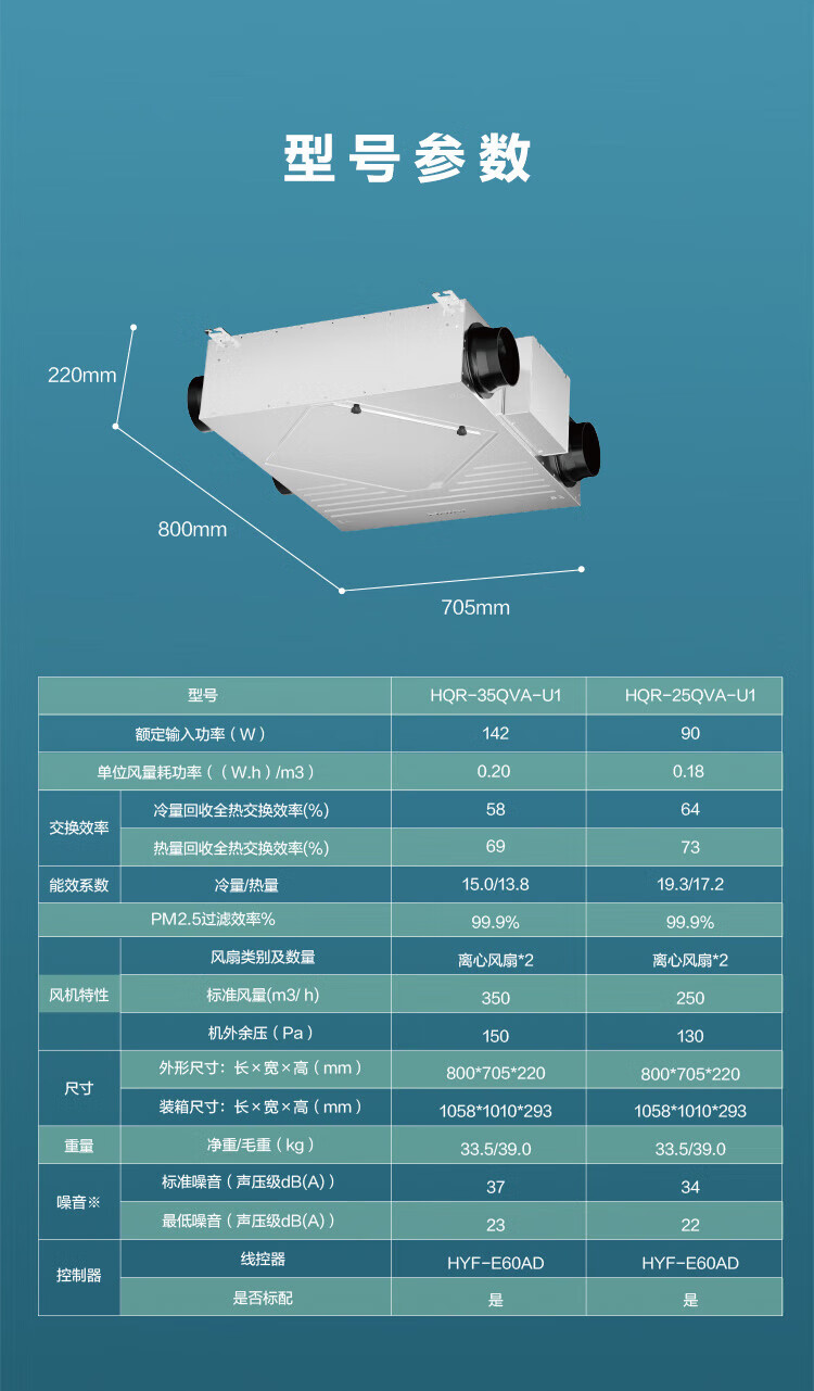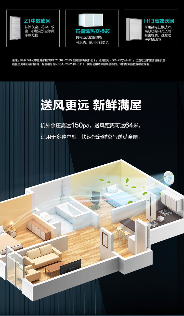 Haier home whole house fresh air system central air conditioning fresh air fan full heat exchanger haze removal PM2.5 air purification ventilation oxygenation ceiling installation 3 pieces set 25 fresh air fans 90-120