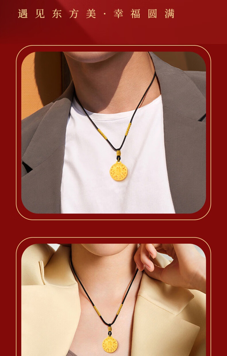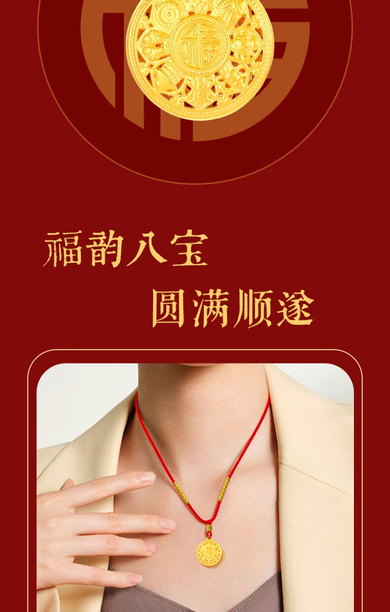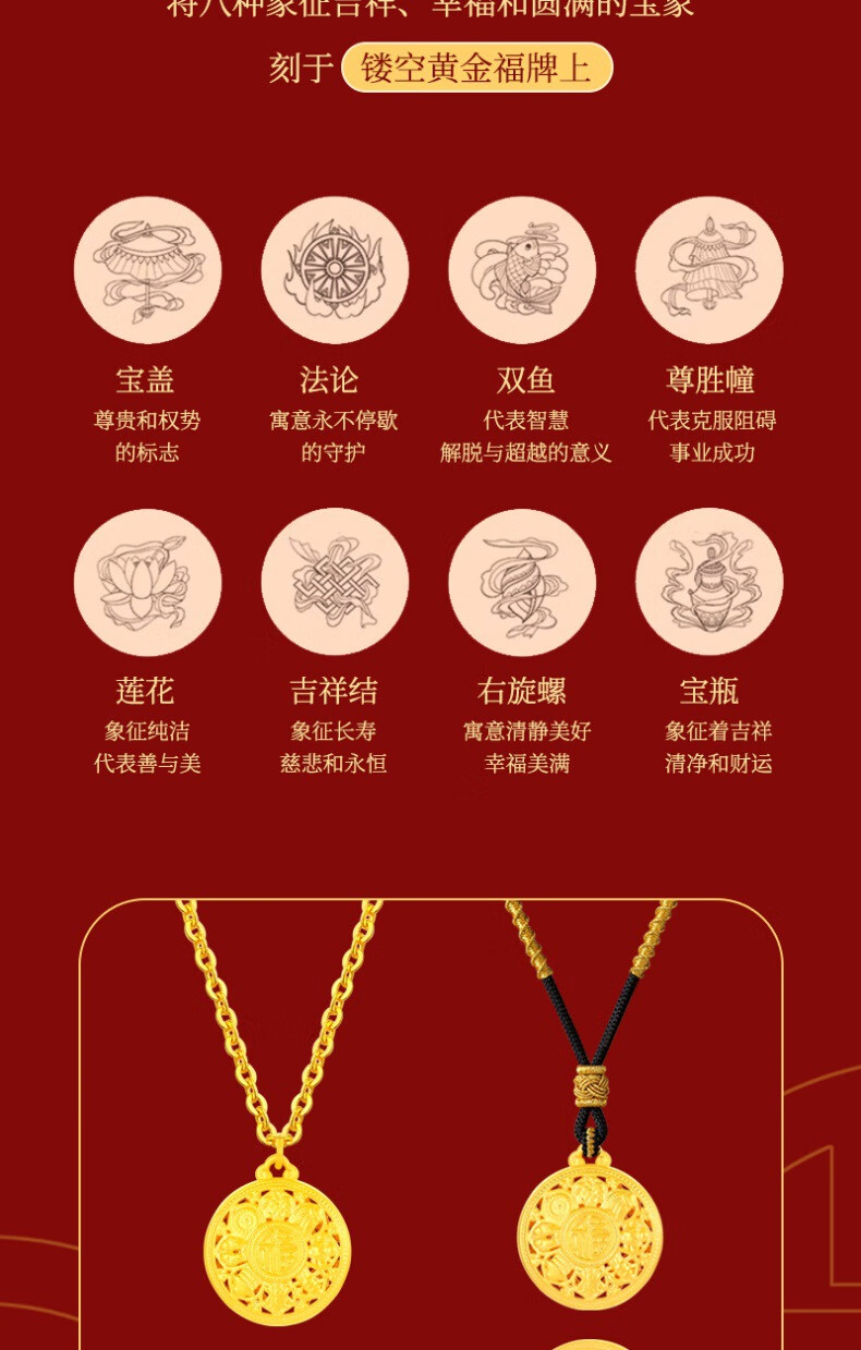 Zhimo (ZHIMO) 999 gold-plated eight-treasure compass pendant gold necklace for men and women ancient method hollow transfer fortune lotus love eight-treasure compass pendant free red braided rope gold