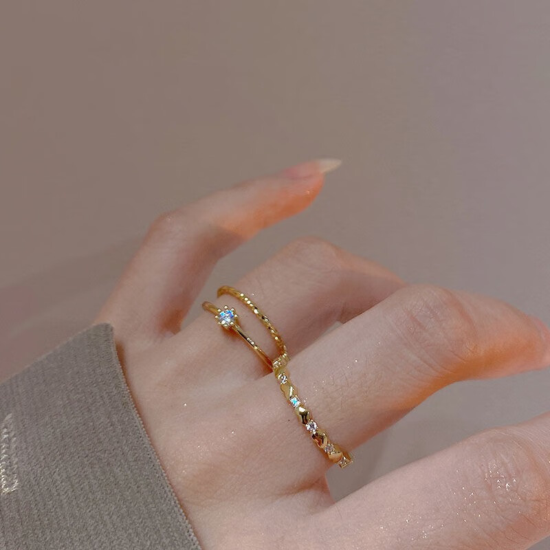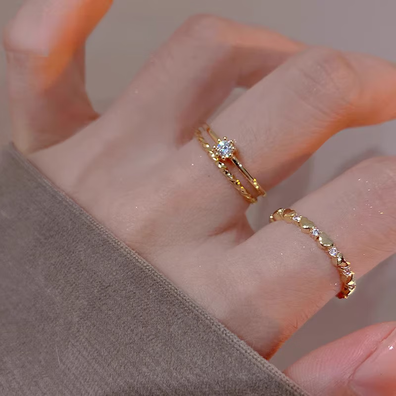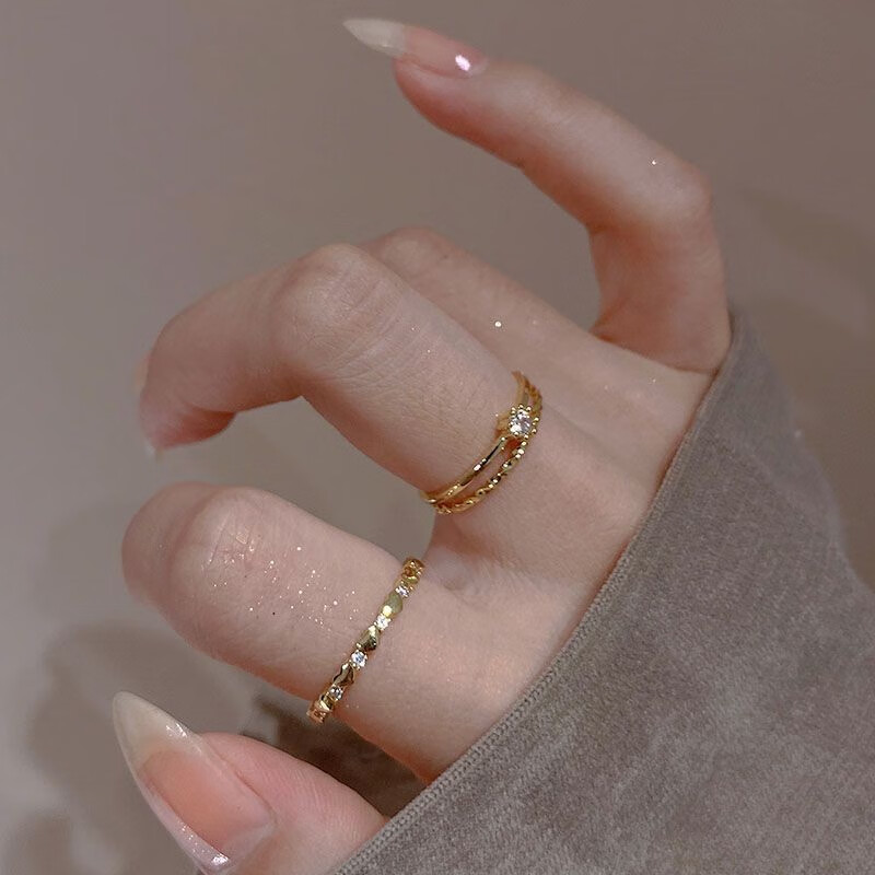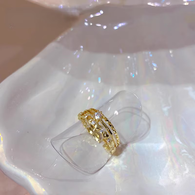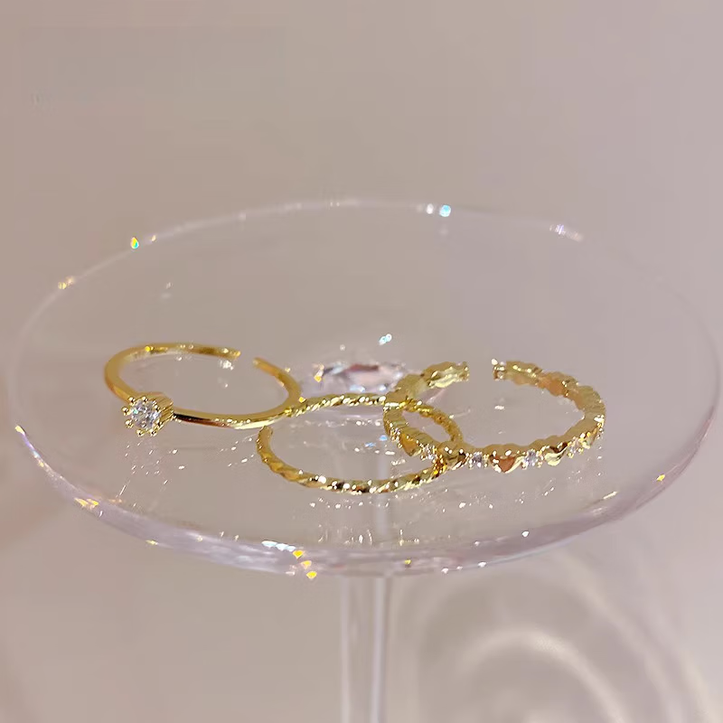 Yadige 18k gold ring women's light luxury design niche personality sexy open ring index finger ring high color retention love set (3