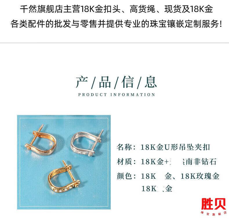 Zhimo (ZHIMO) 18k gold necklace buckle U-shaped buckle 18K gold buckle head pendant buckle jade pendant accessories buckle movable buckle jade diamond medium size_K rose gold