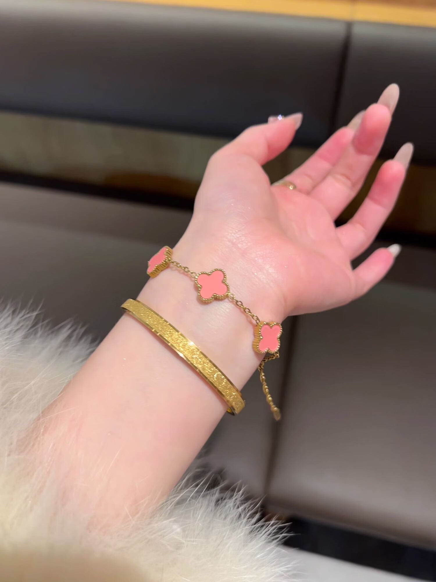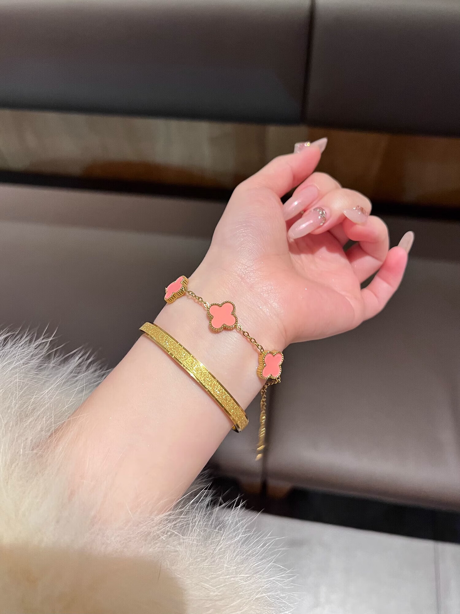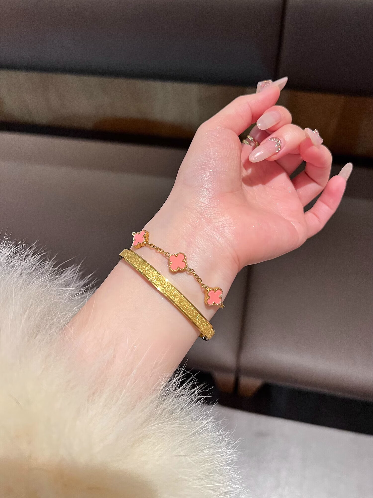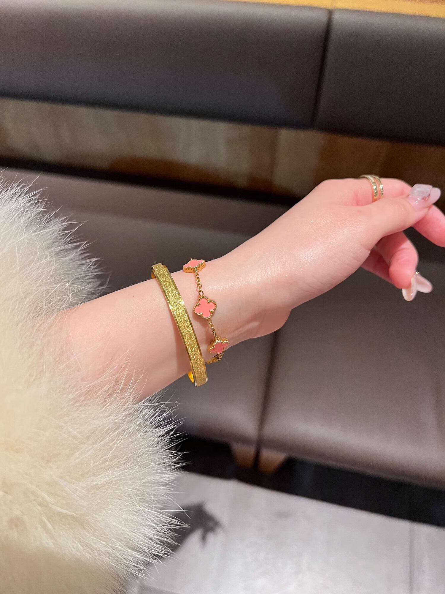 Yadige 18K gold bracelet, niche frosted bracelet, light luxury style ring bracelet, versatile and stackable, two small pink shell bracelets