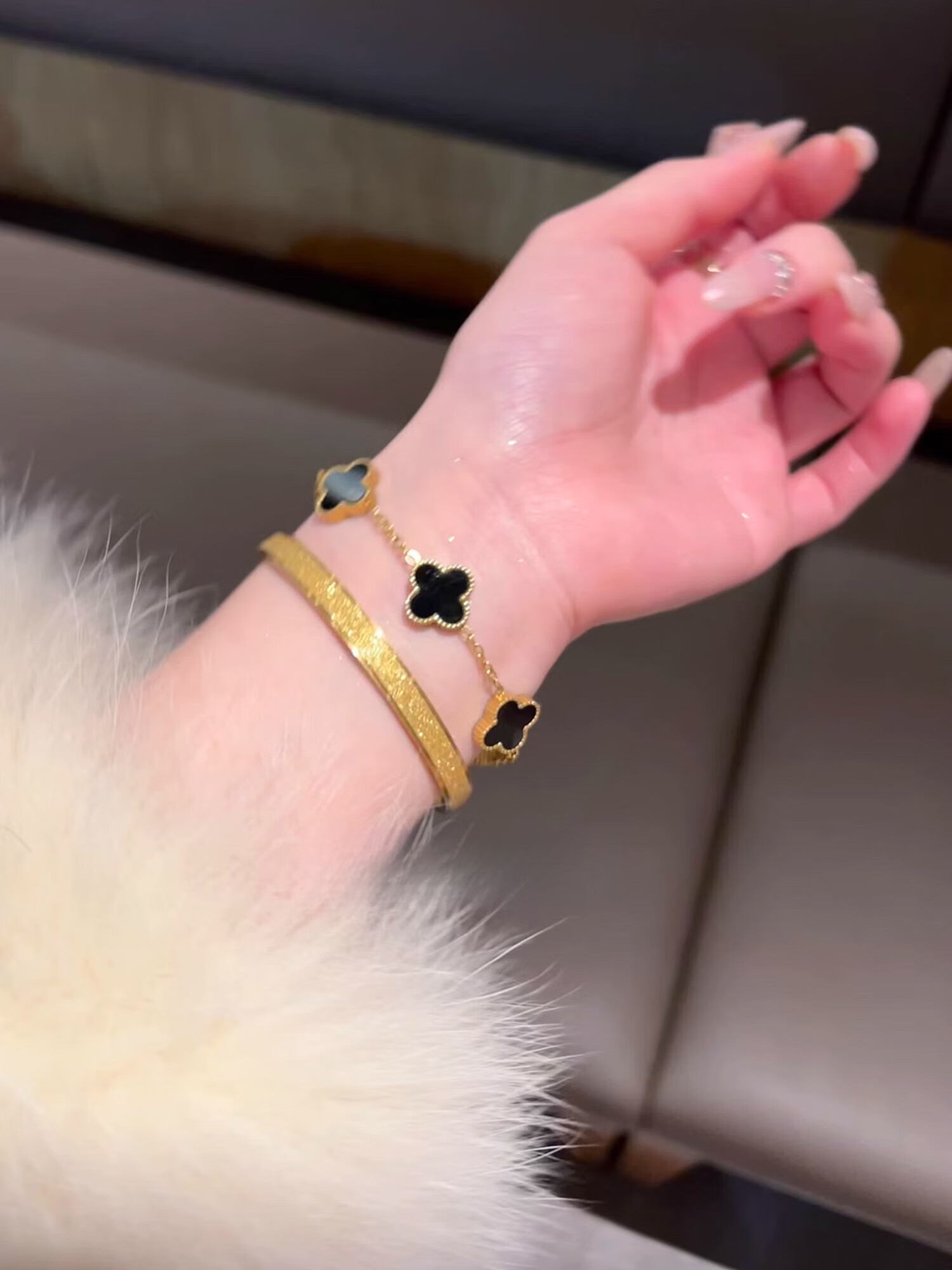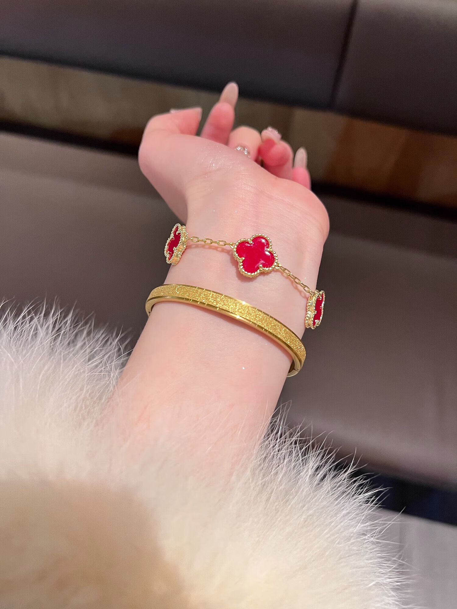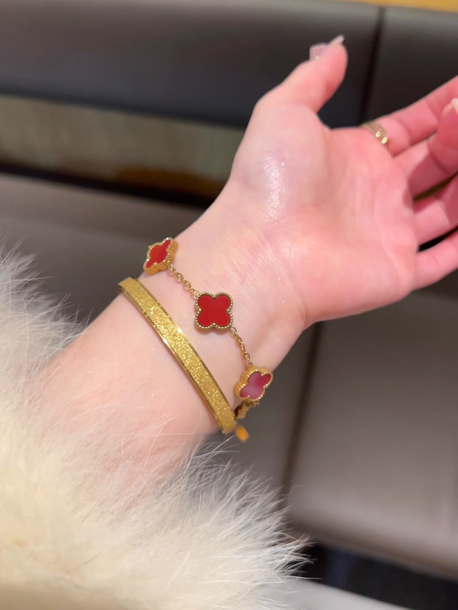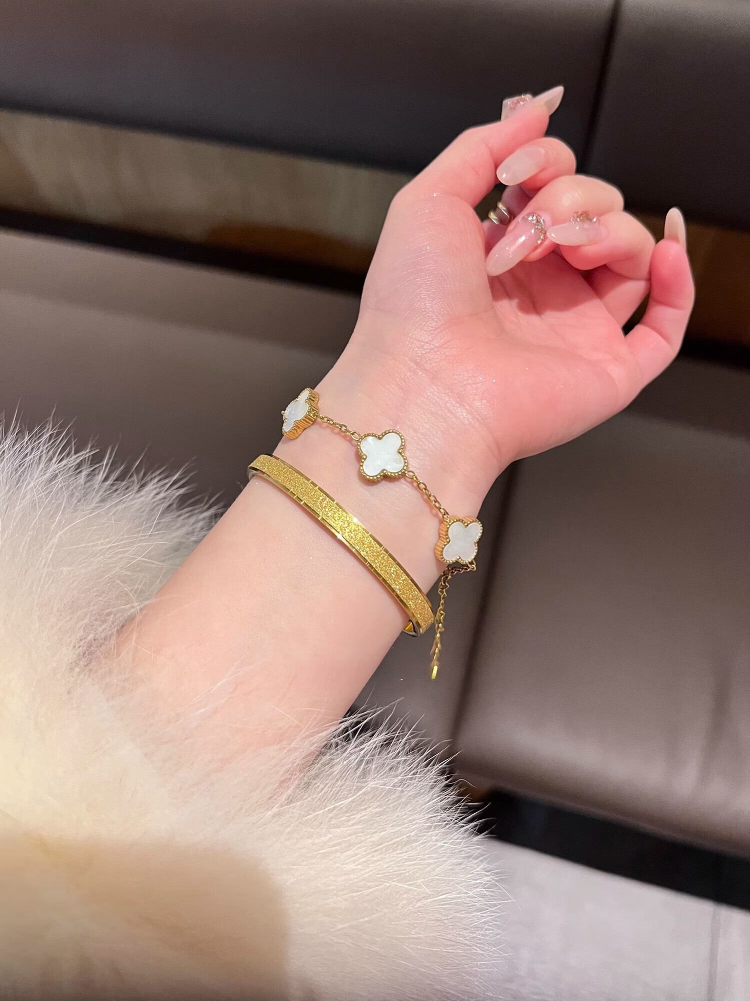 Yadige 18K gold bracelet, niche frosted bracelet, light luxury style ring bracelet, versatile and stackable, two small pink shell bracelets