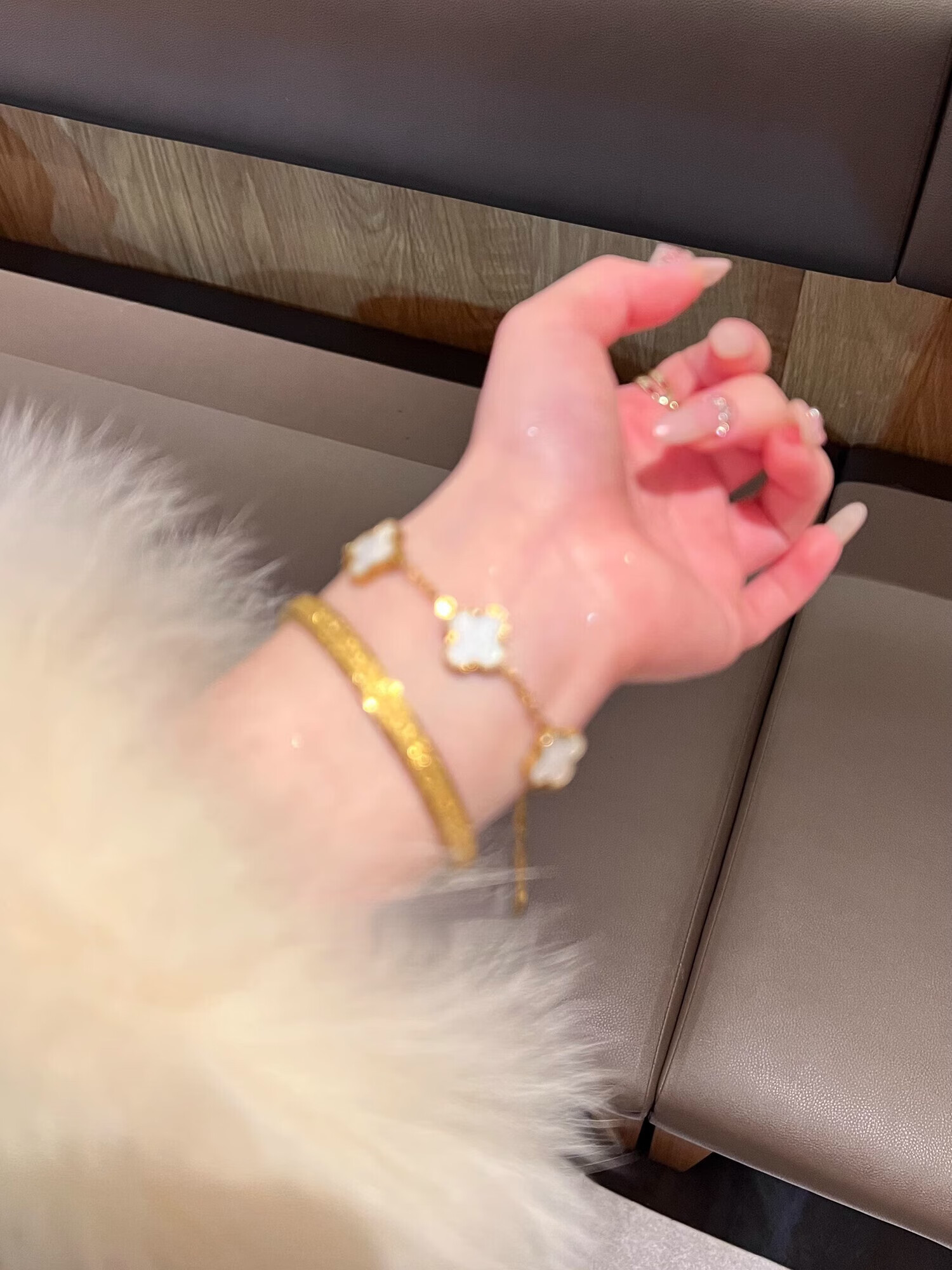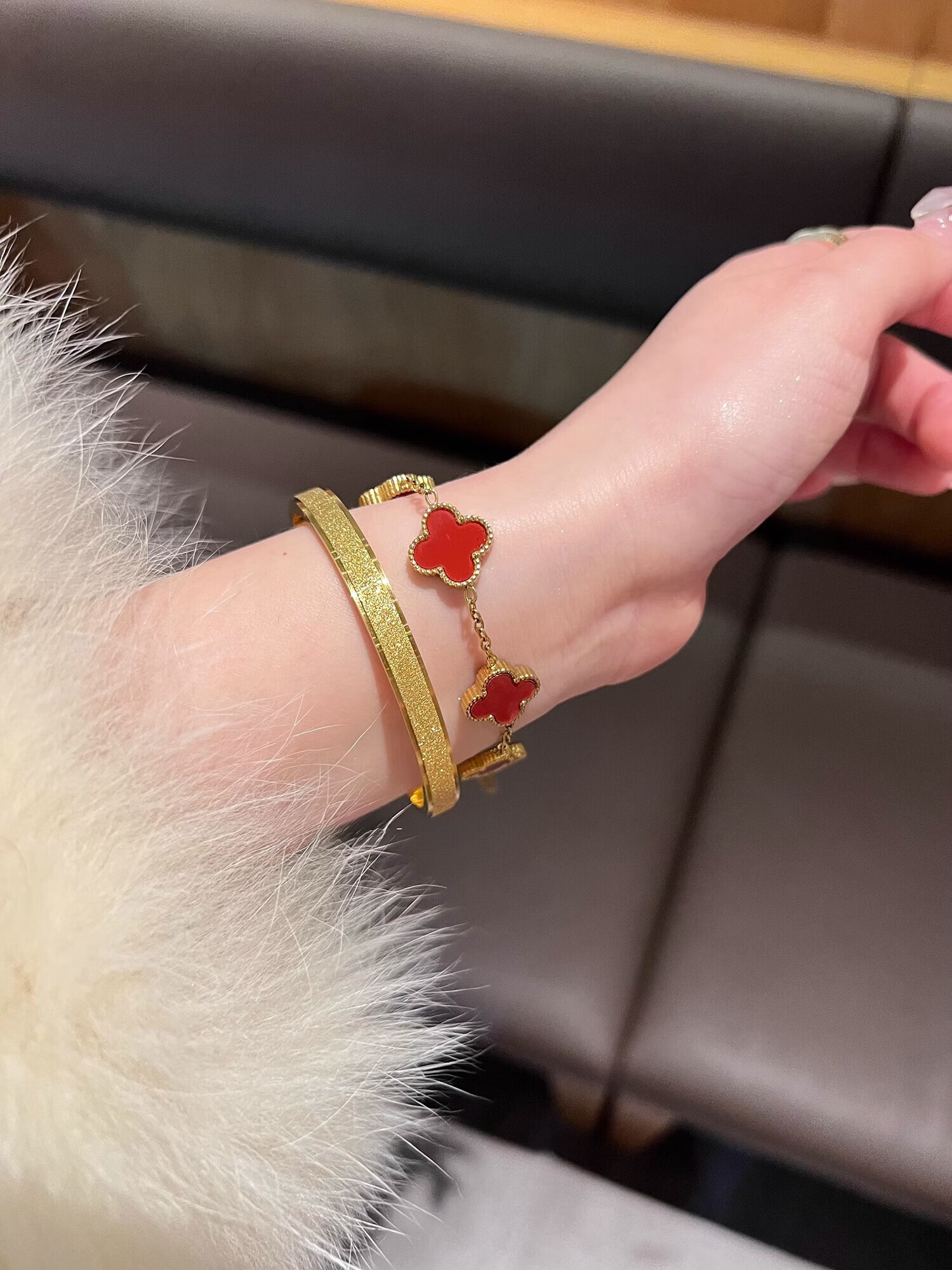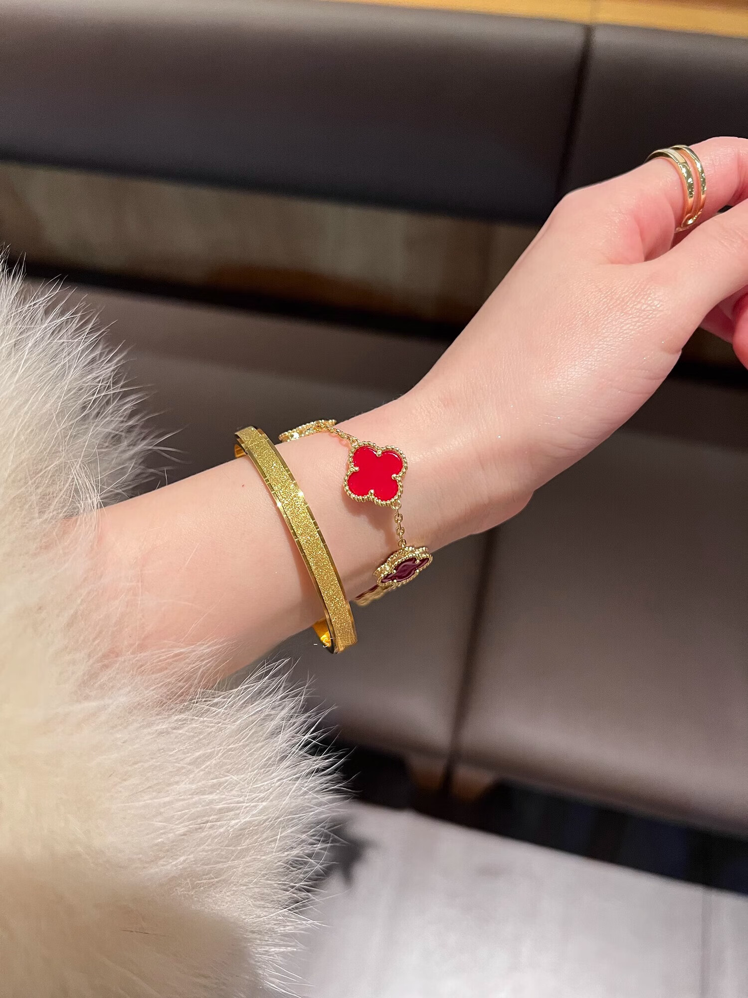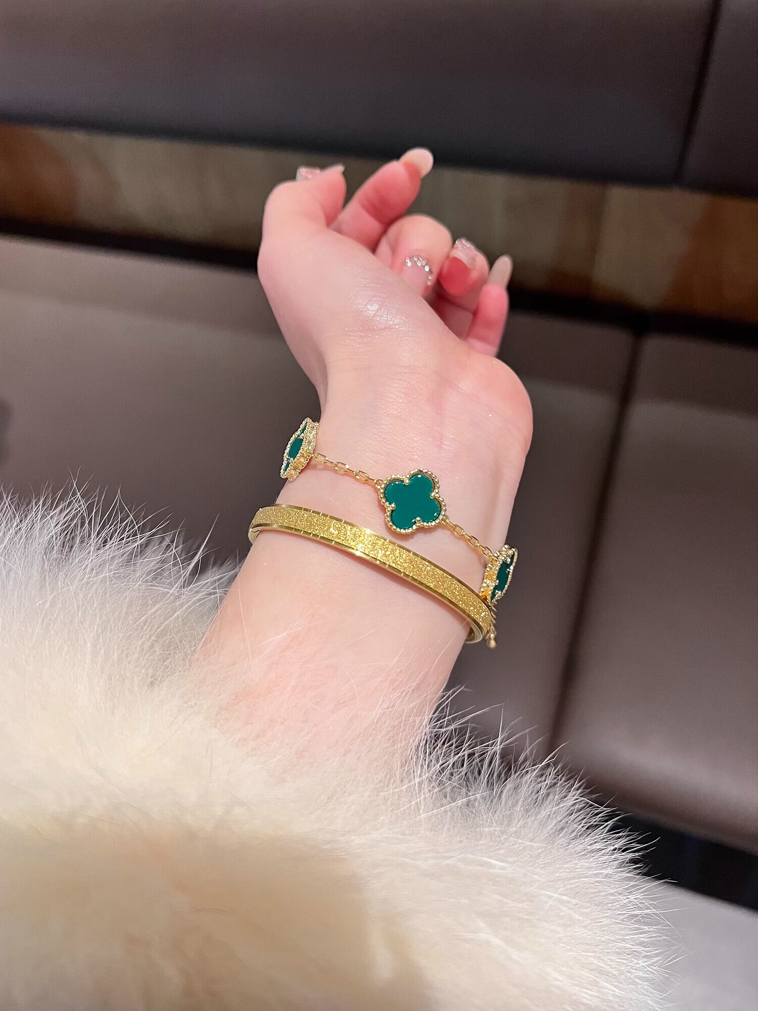Yadige 18K gold bracelet, niche frosted bracelet, light luxury style ring bracelet, versatile and stackable, two small pink shell bracelets