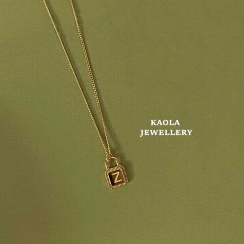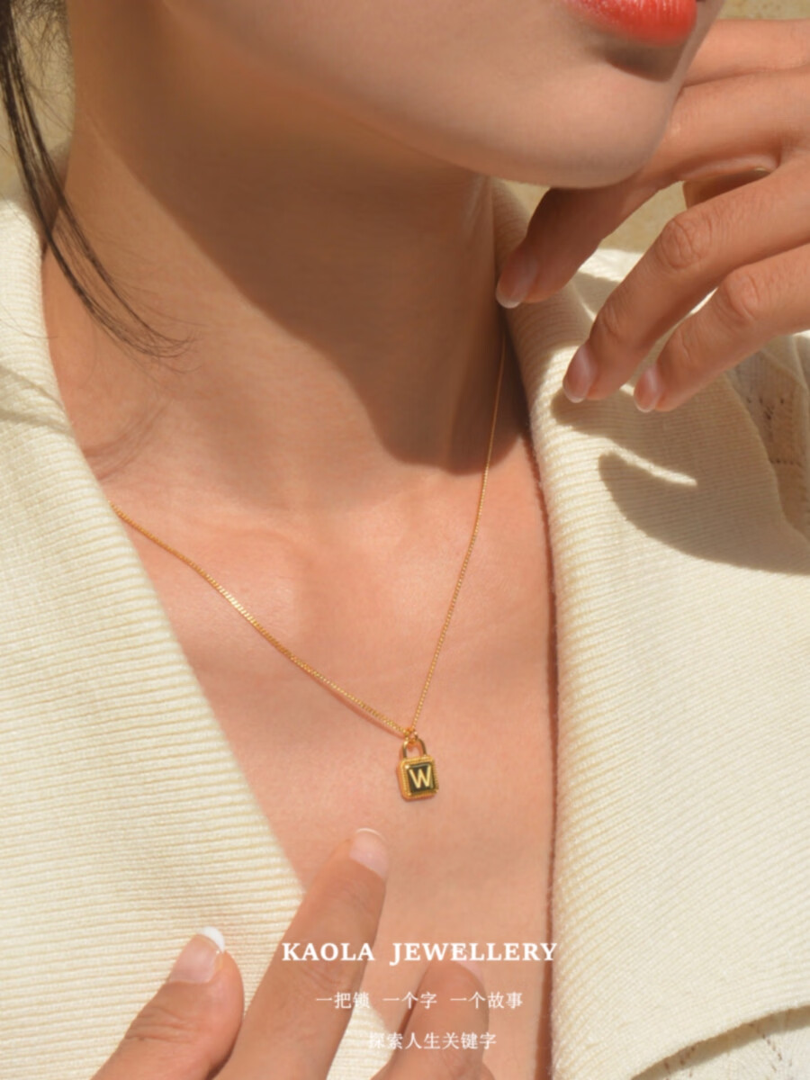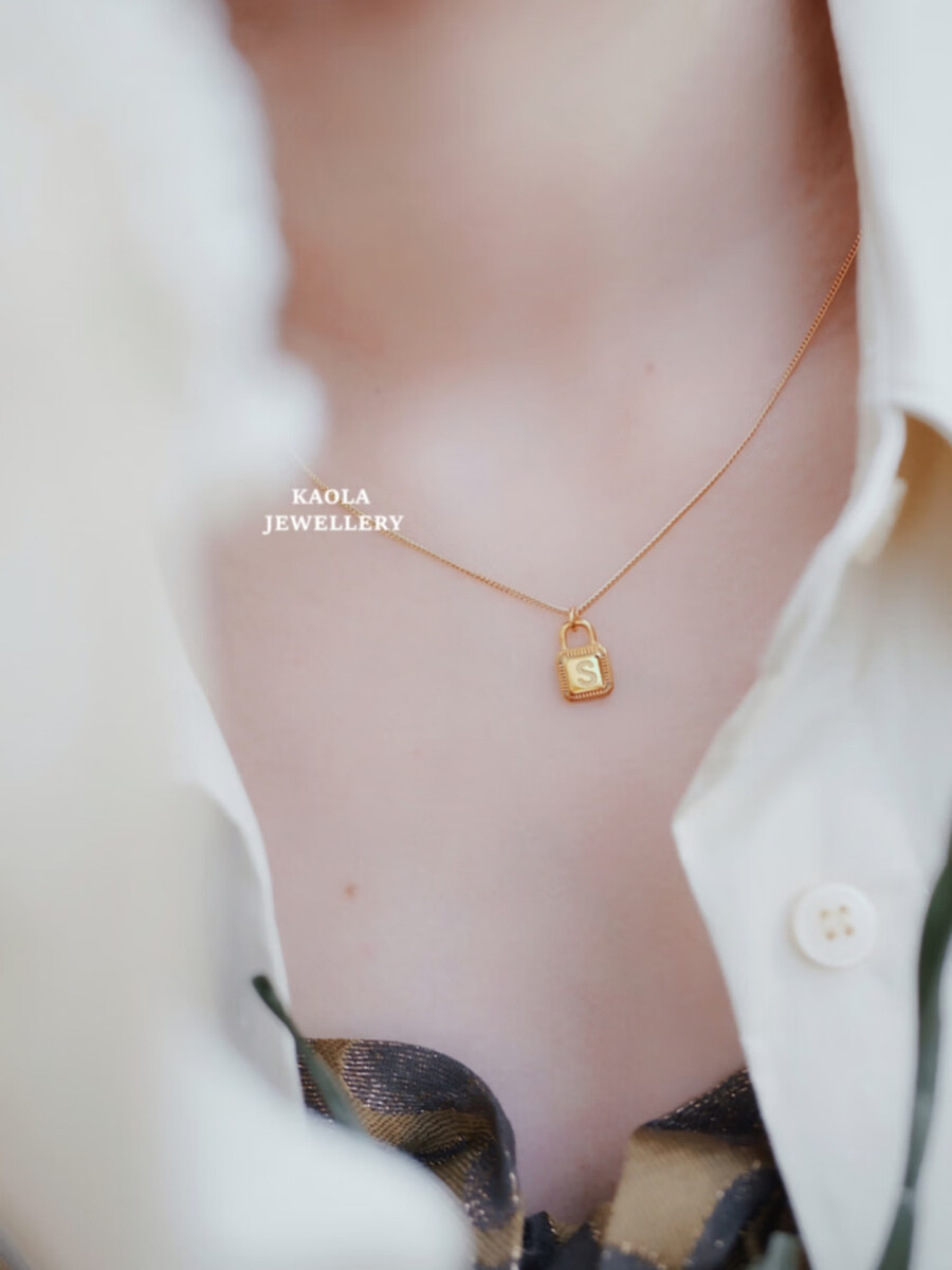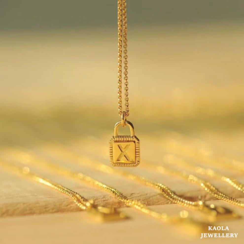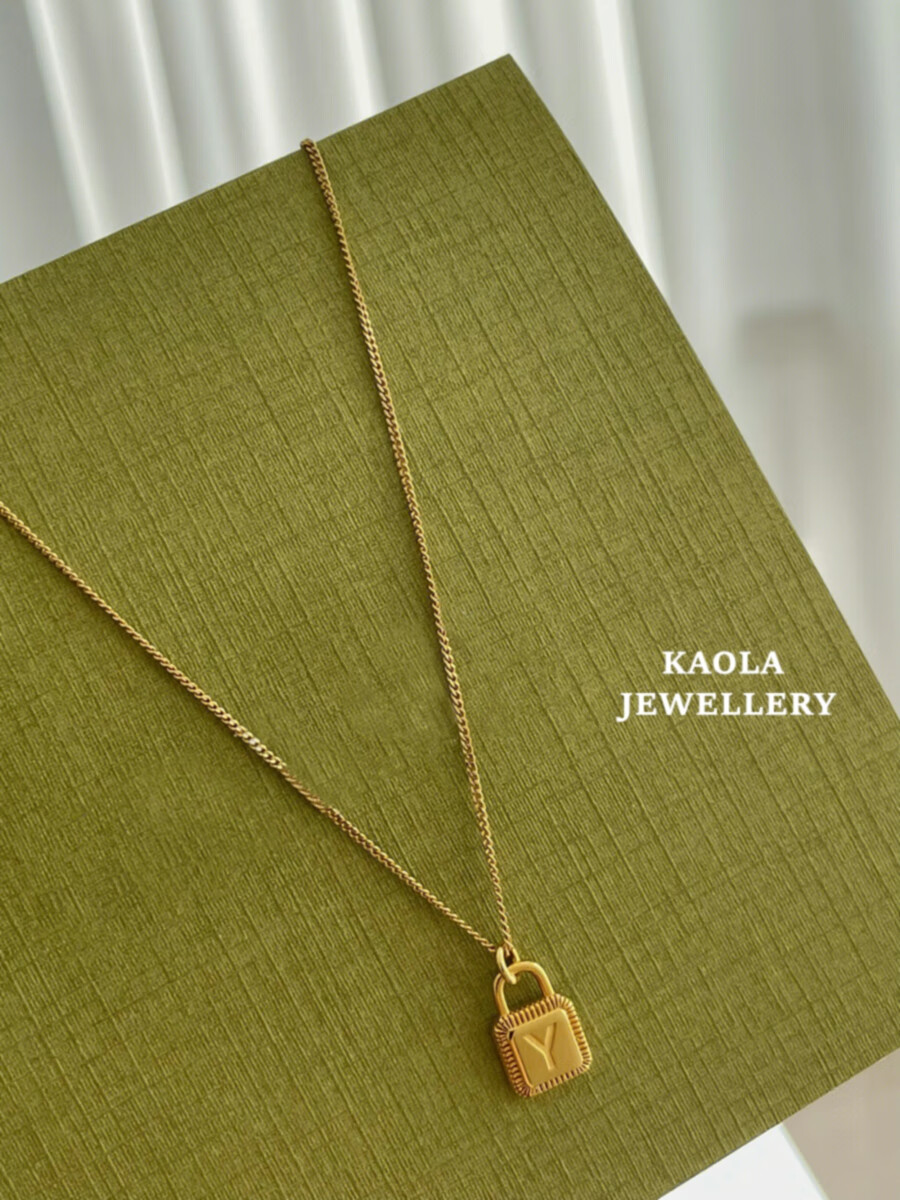 Yadige 18K gold pendant lock letter necklace for women retro gold 26 English customized clavicle chain gift personalized 18K gold