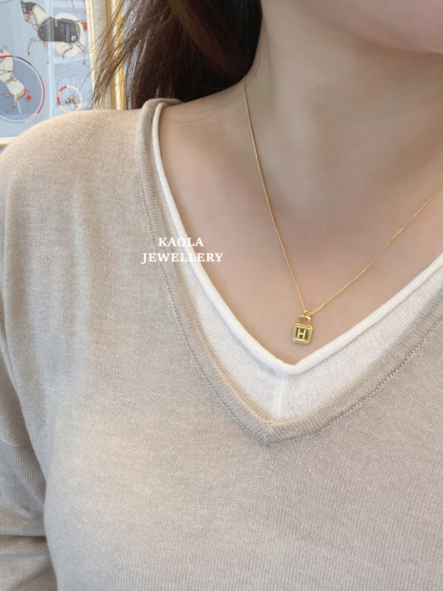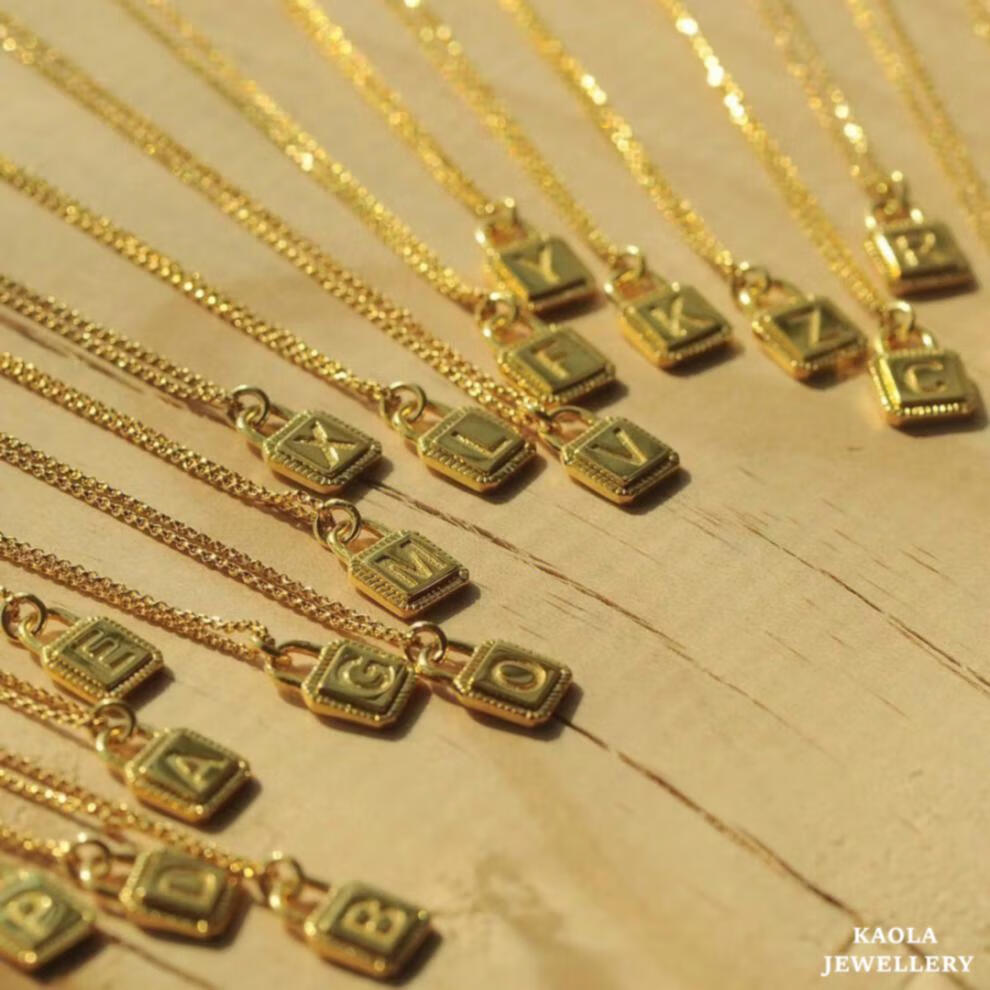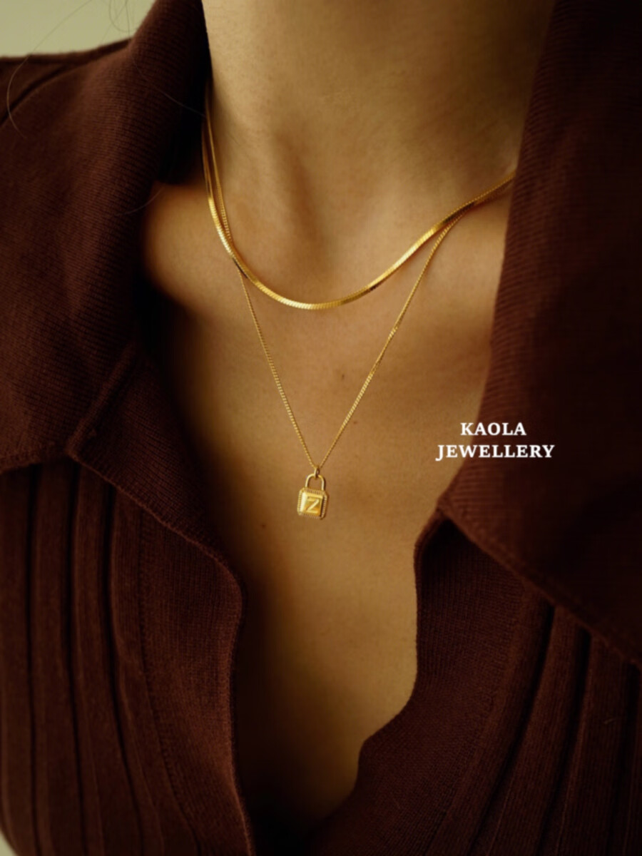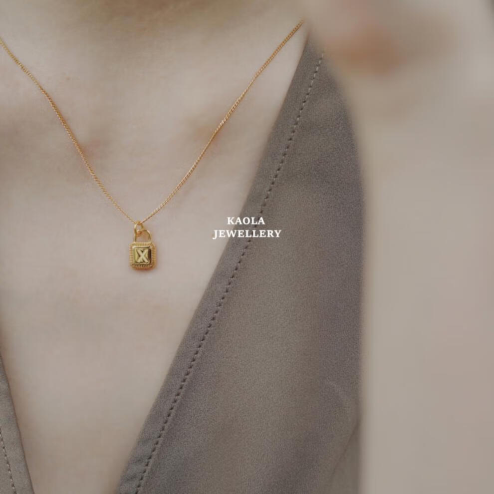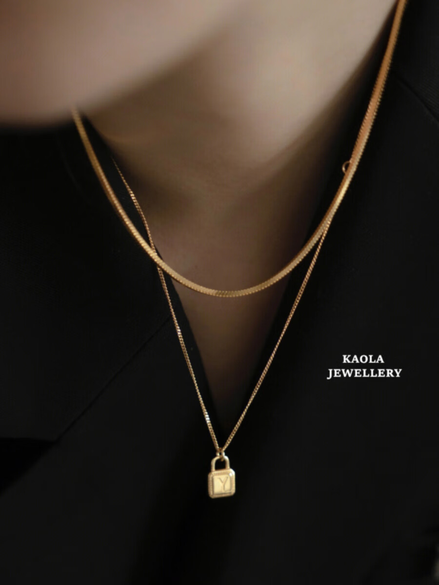Yadige 18K gold pendant lock letter necklace for women retro gold 26 English customized clavicle chain gift personalized 18K gold
