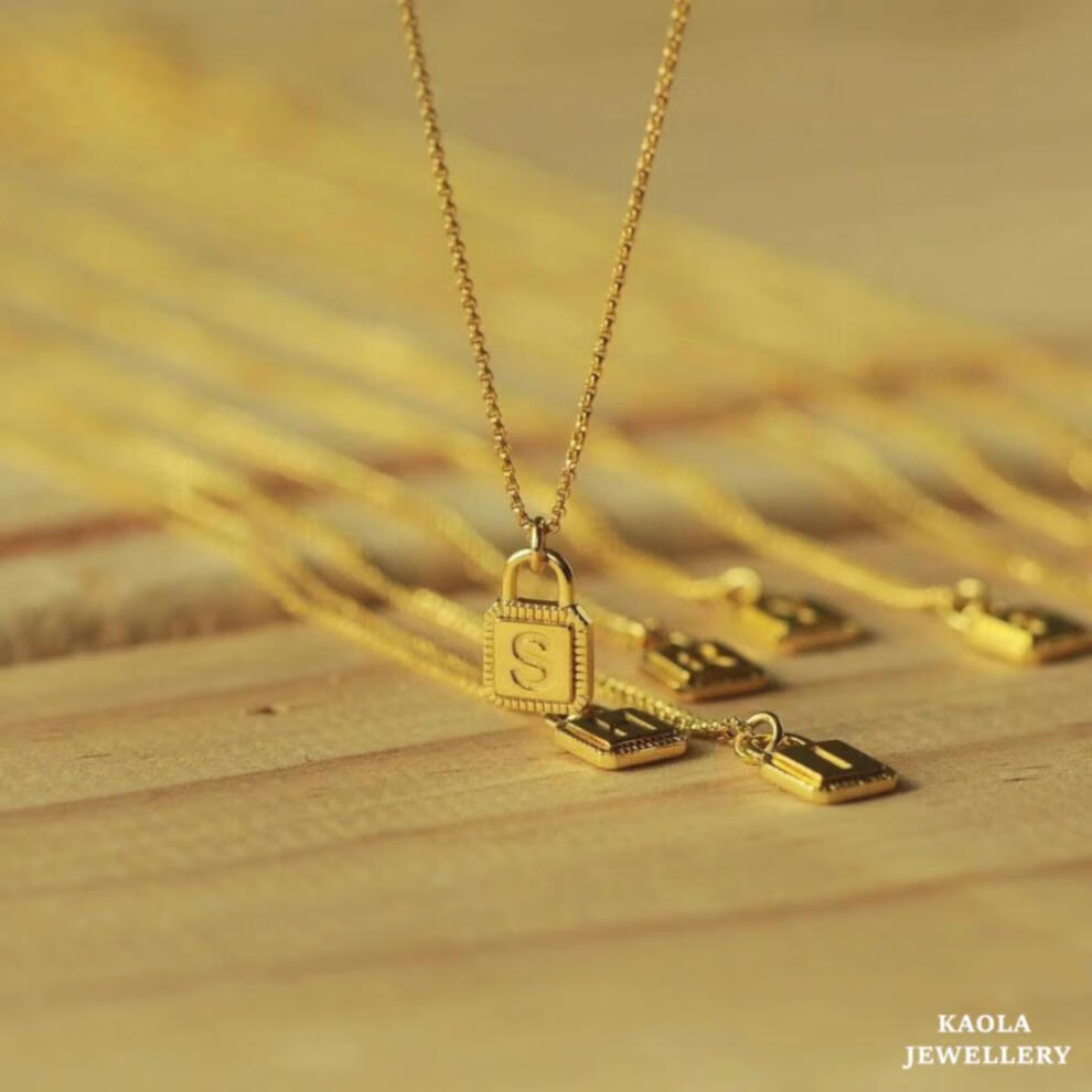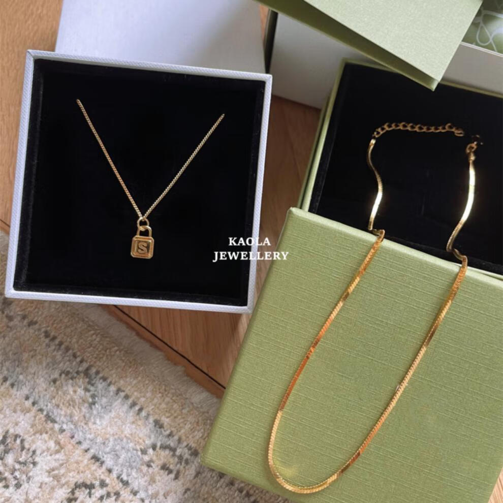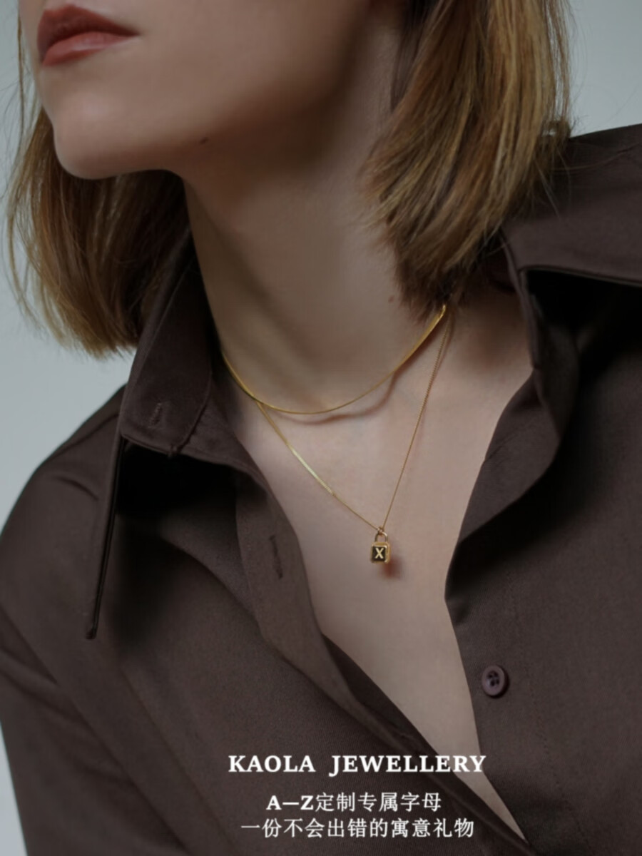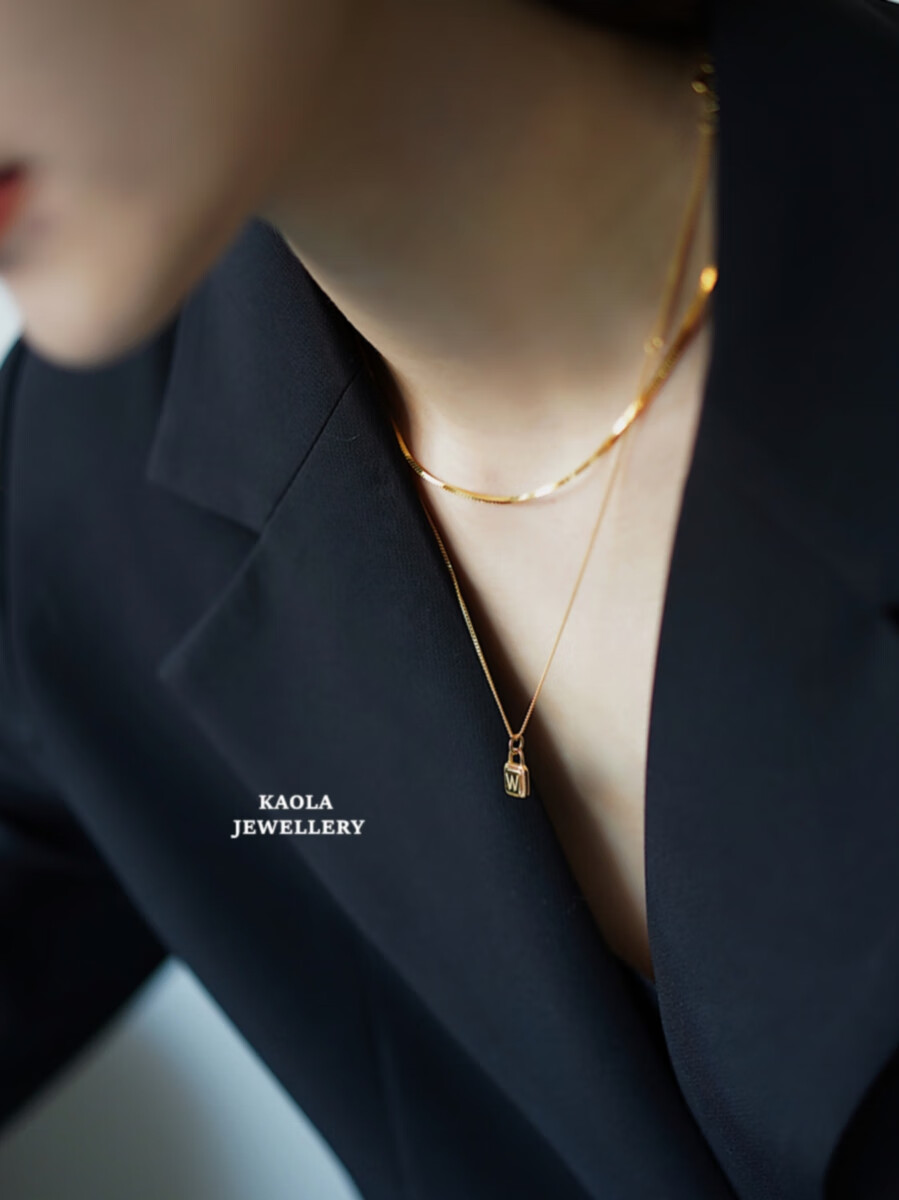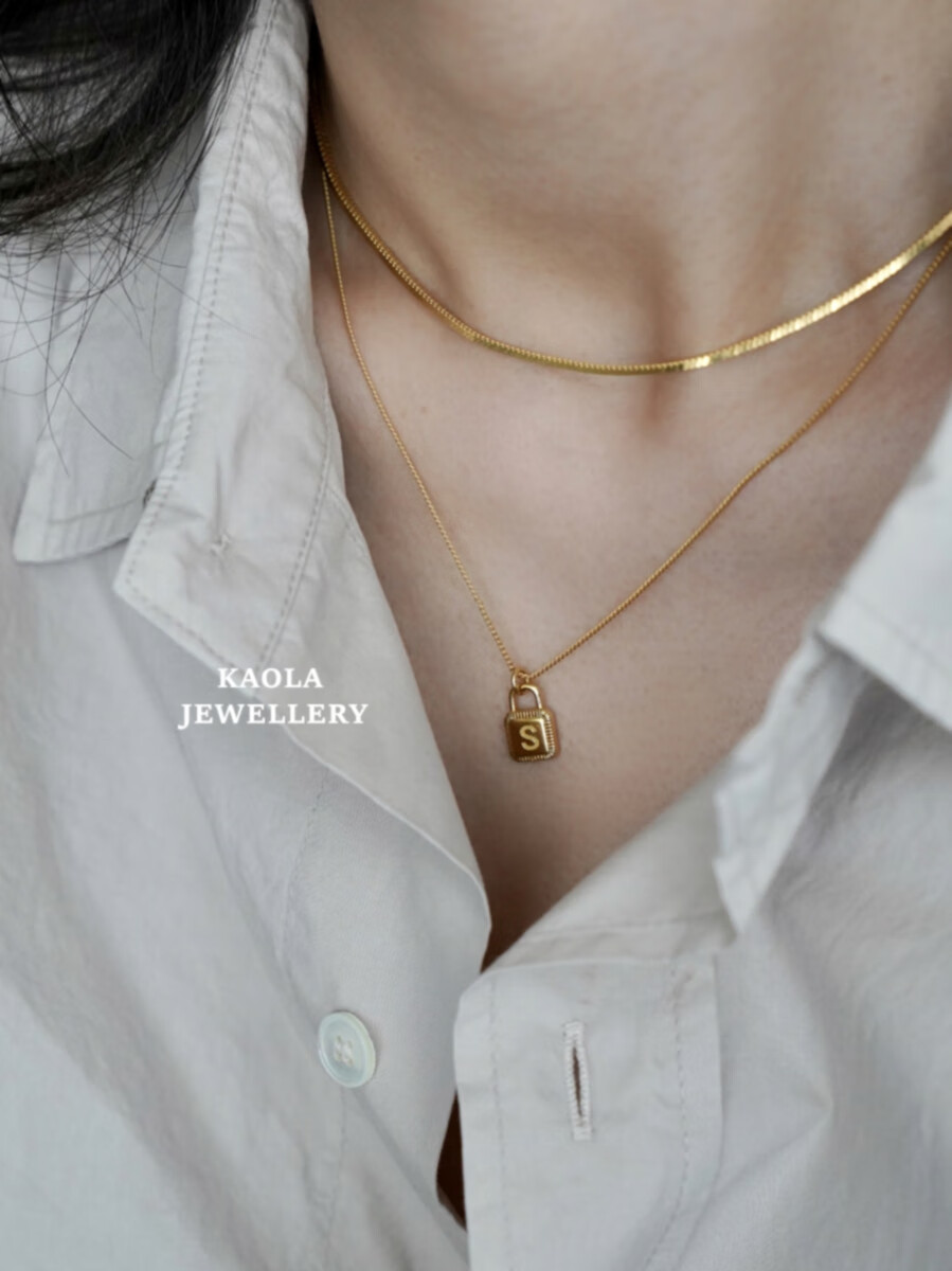 Yadige 18K gold pendant lock letter necklace for women retro gold 26 English customized clavicle chain gift personalized 18K gold